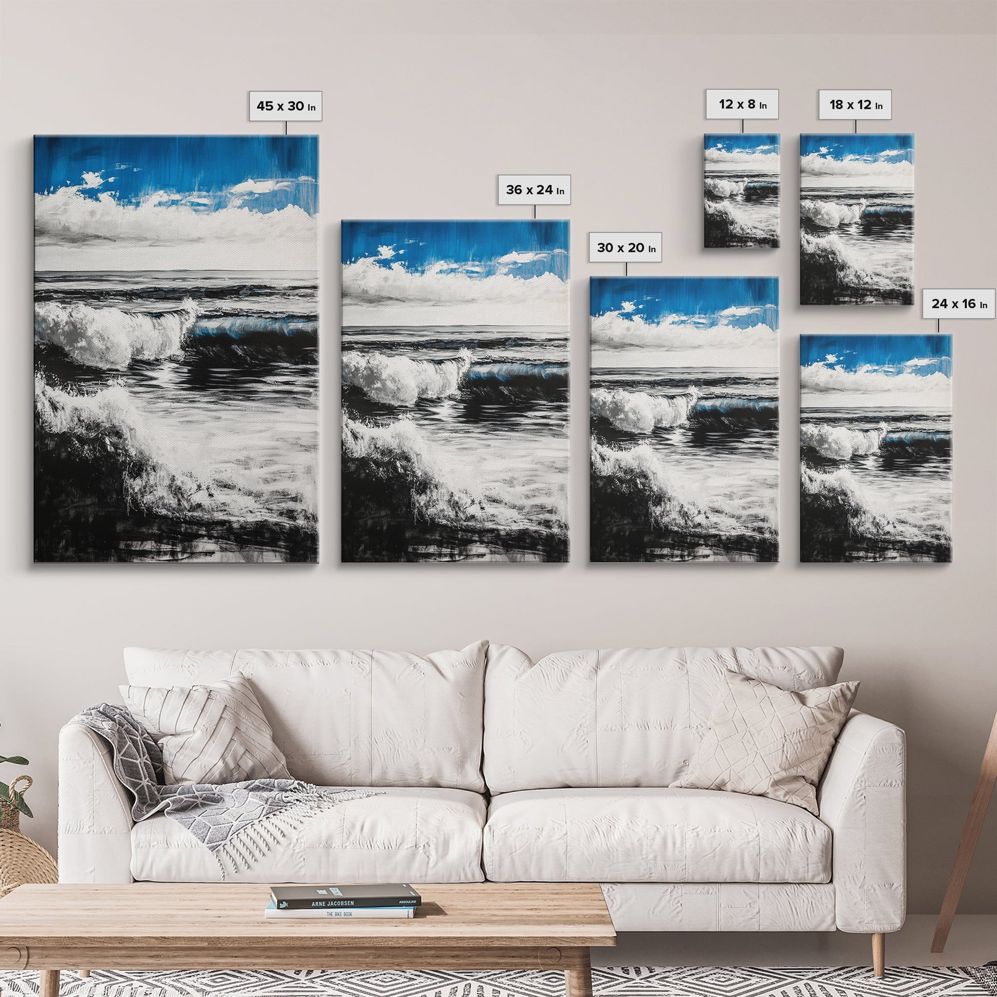 Ocean Horizon, Abstract Painting, Blue Waves, Canvas Print, Modern Seascape, Minimalist Beach Decor, Contemporary Wall Art