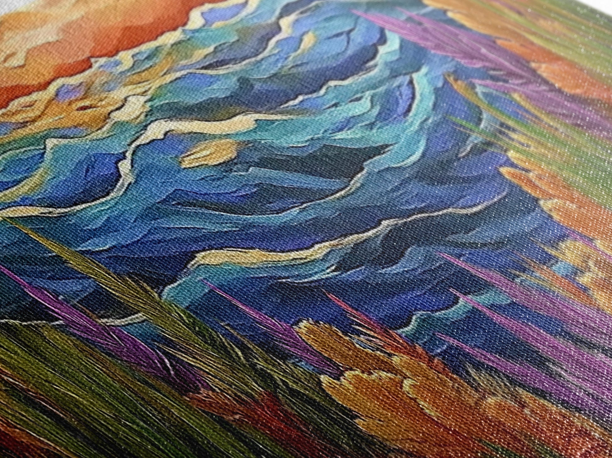 Most of our canvases are made in the USA, with the exception of canvases ordered with the light oak unstained frames, and any large canvases (24x48, 30x60, 16x48 and 20x60) ordered WITH a frame. These are temporarily made in and shipped from Europe, while we try to find a more consistent supplier in the USA.
