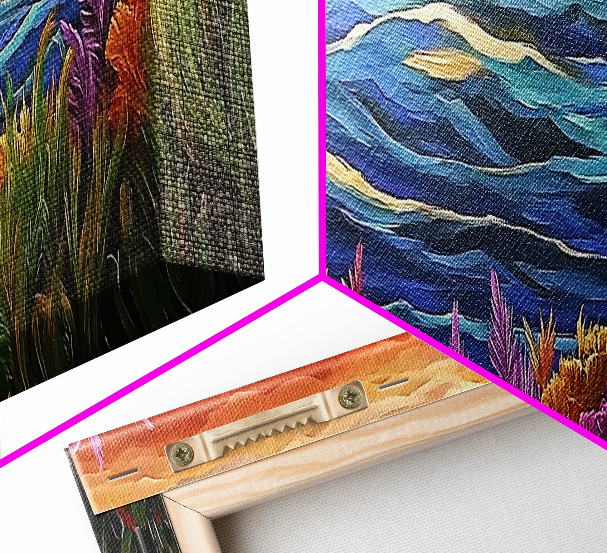 *SHIPPING: Every canvas is carefully wrapped in bubble wrap and foam corner protectors, and shipped fully assembled and ready to hang with sawtooth hangers in a flat box. All you need is a hammer!