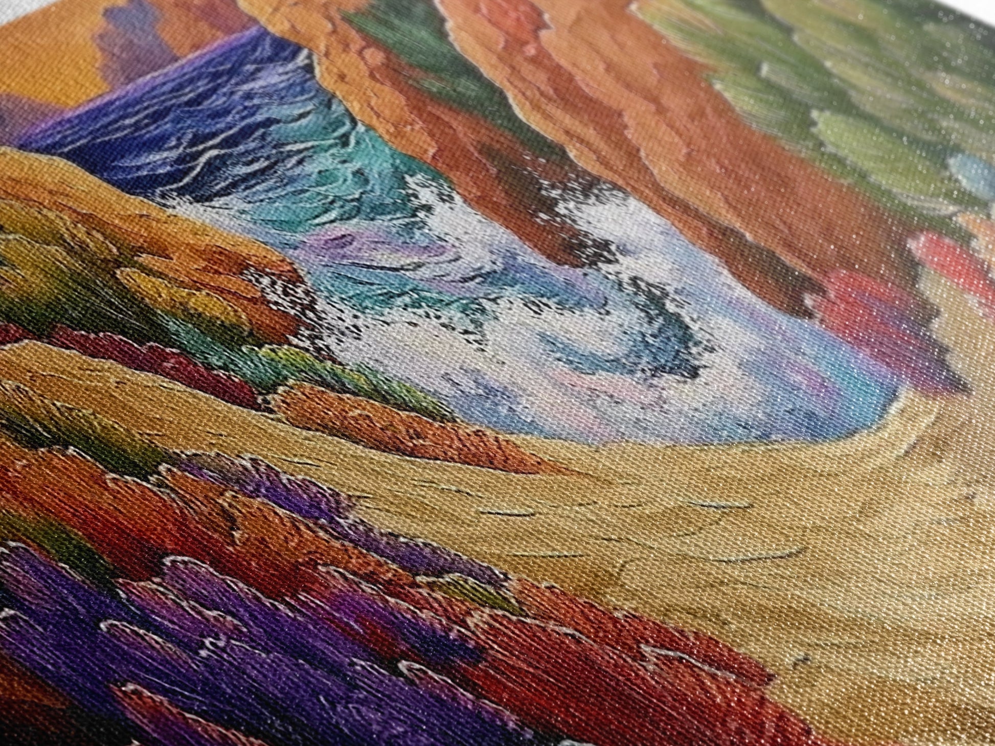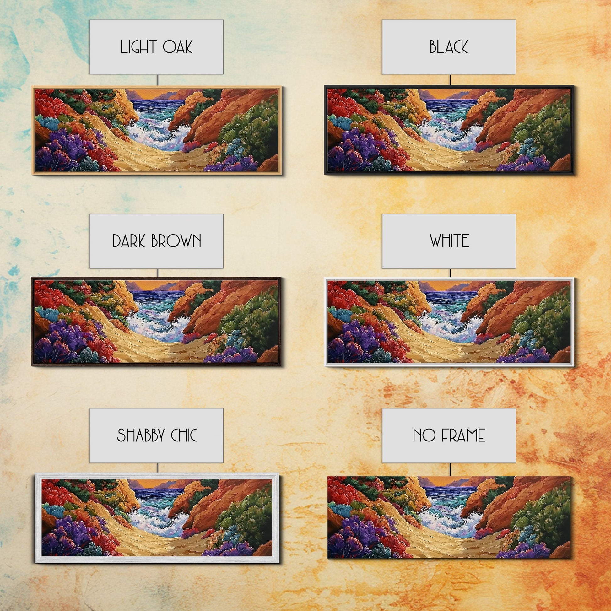 Ocean Path, Colorful Cliffs, Bright Beach, Nature Trail, Framed Canvas Print, Coastal Wall Art, Hallway Decor, Vibrant Seaside Painting
