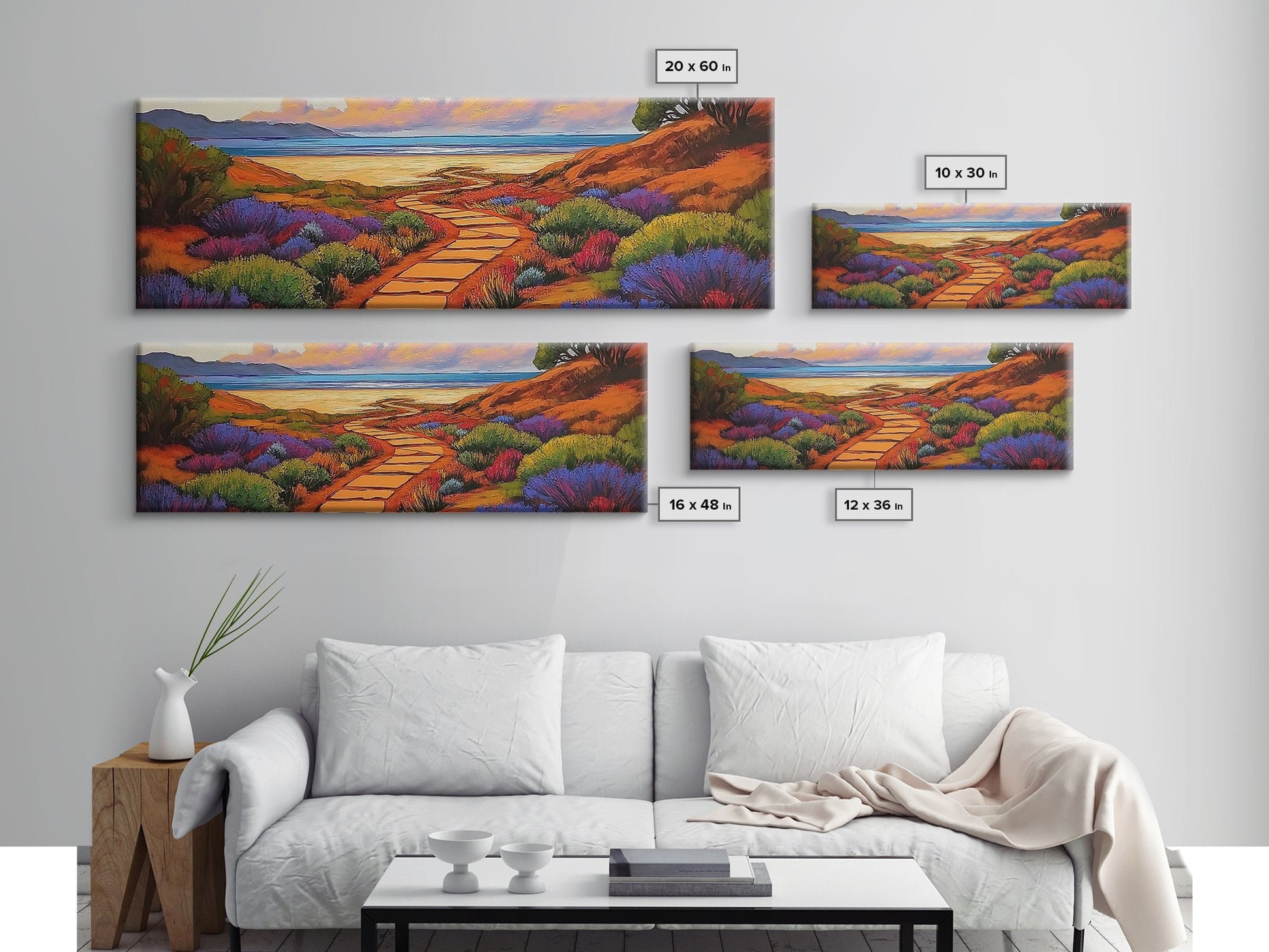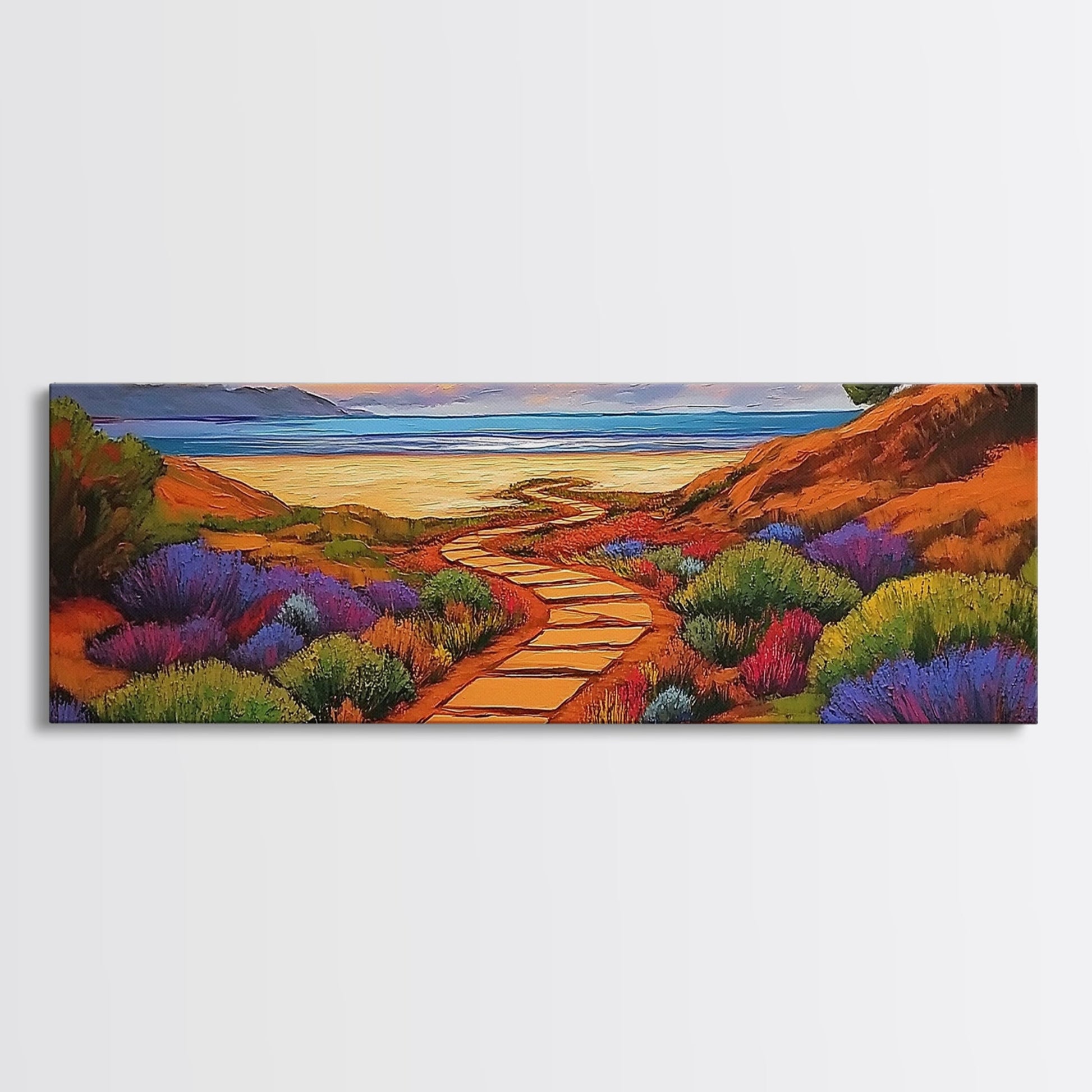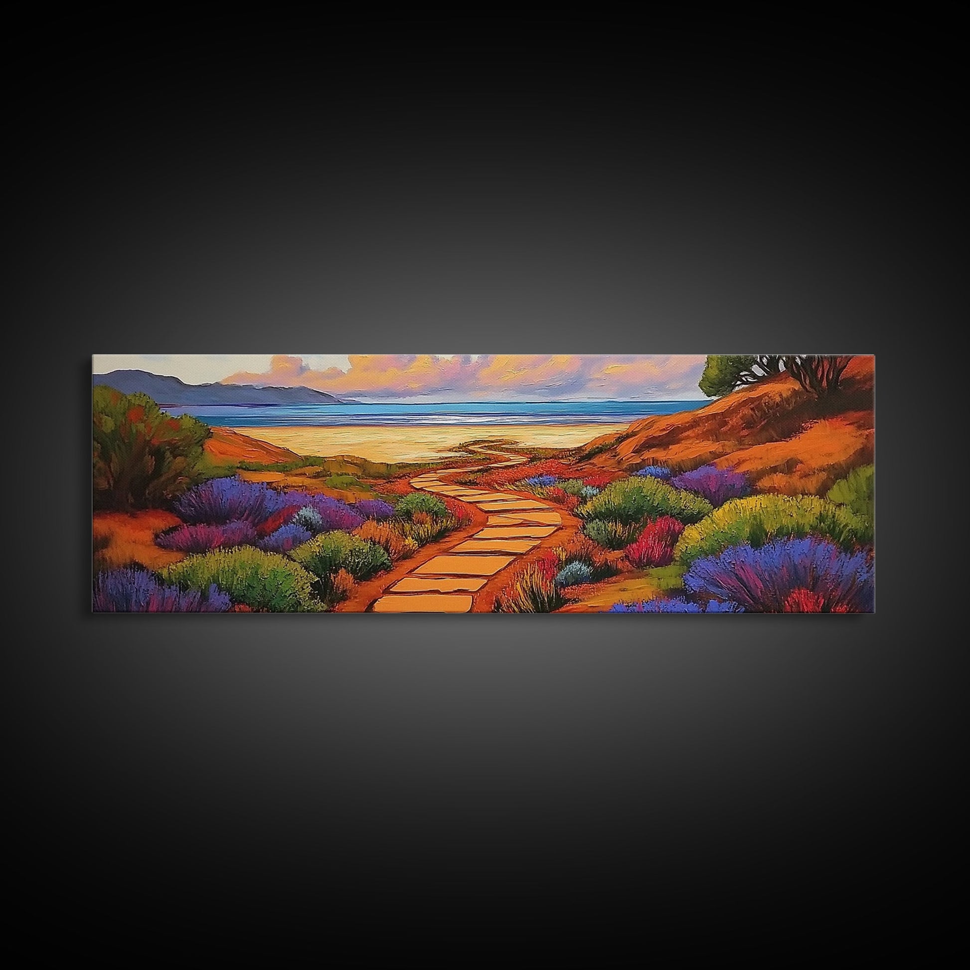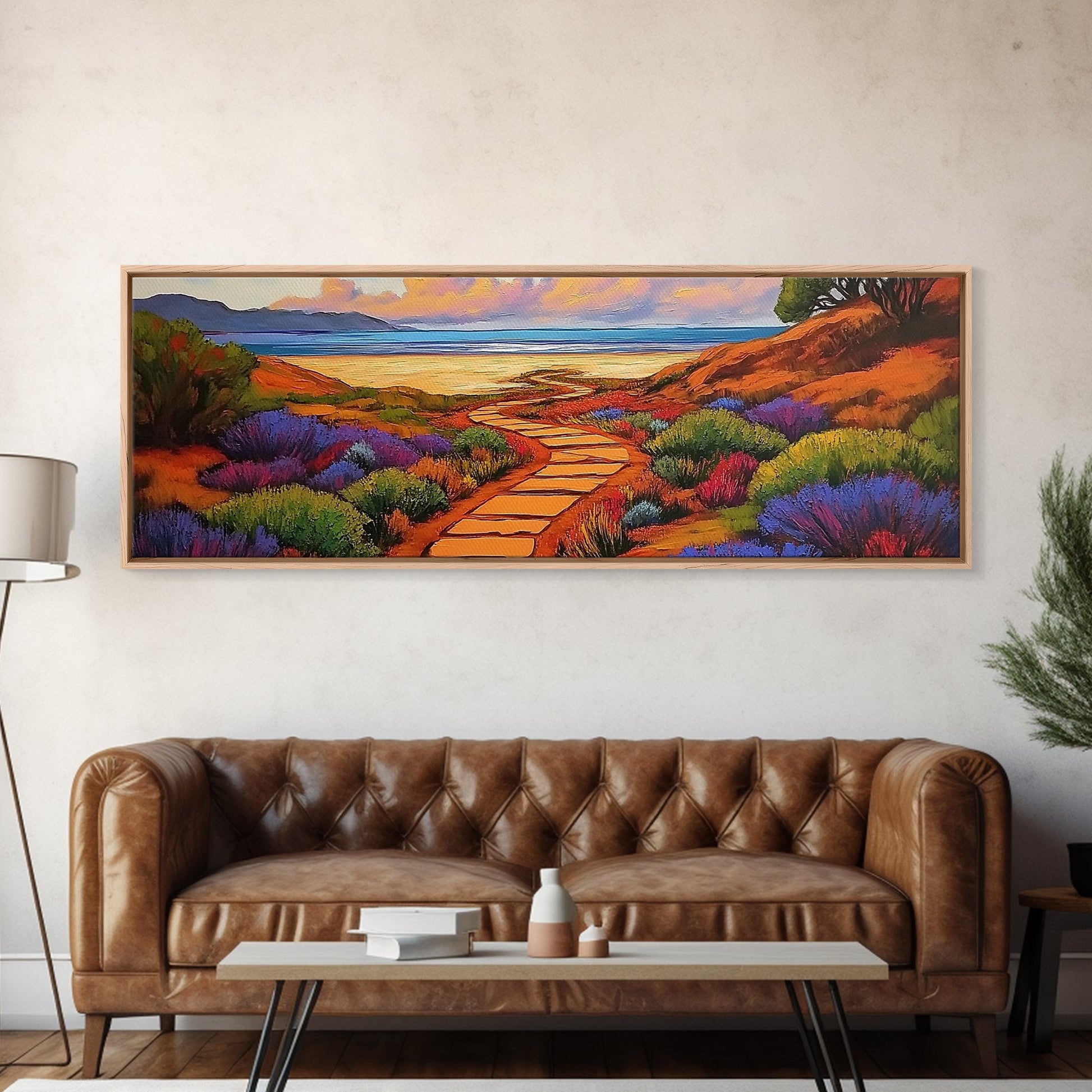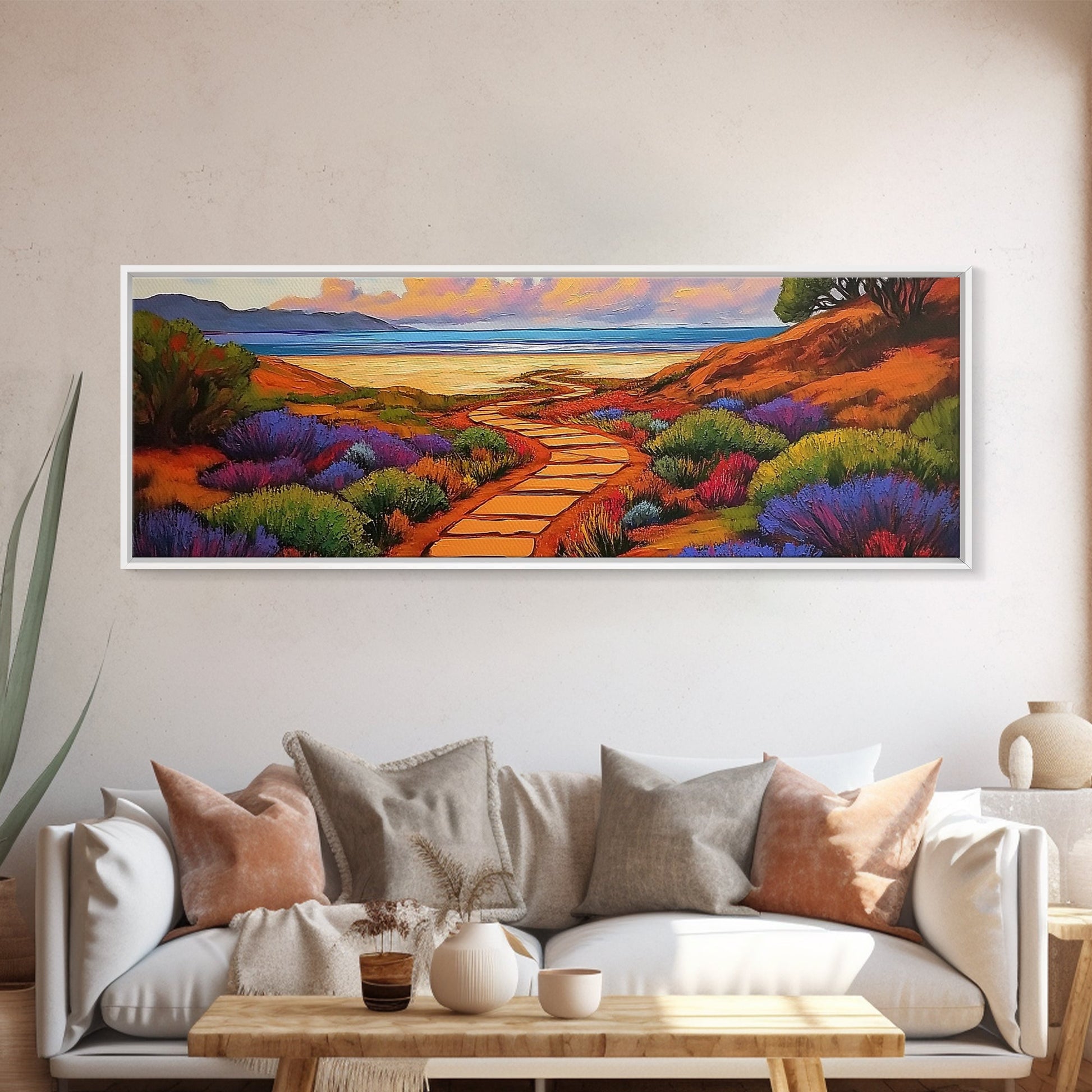 Ocean Pathway, Coastal Garden, Beach Vibes, Framed Canvas Print, Tropical Wall Art, Seaside Landscape, Boho Living Room Decor