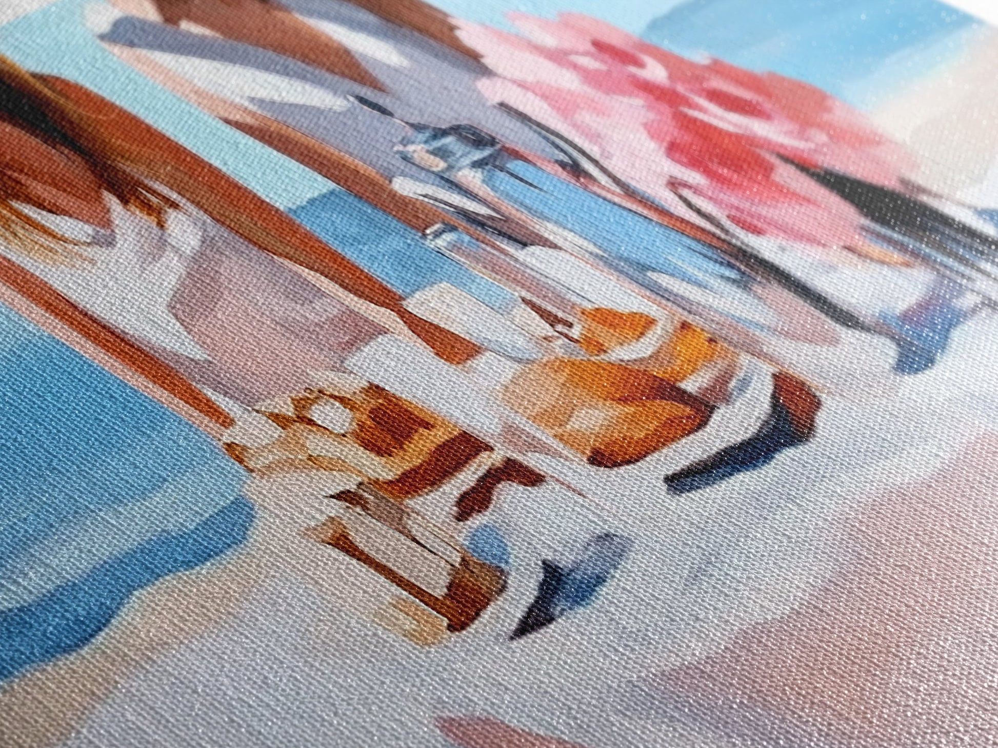 Most of our canvases are made in the USA, with the exception of canvases ordered with the light oak unstained frames, and any large canvases (24x48, 30x60, 16x48 and 20x60) ordered WITH a frame. These are temporarily made in and shipped from Europe, while we try to find a more consistent supplier in the USA.