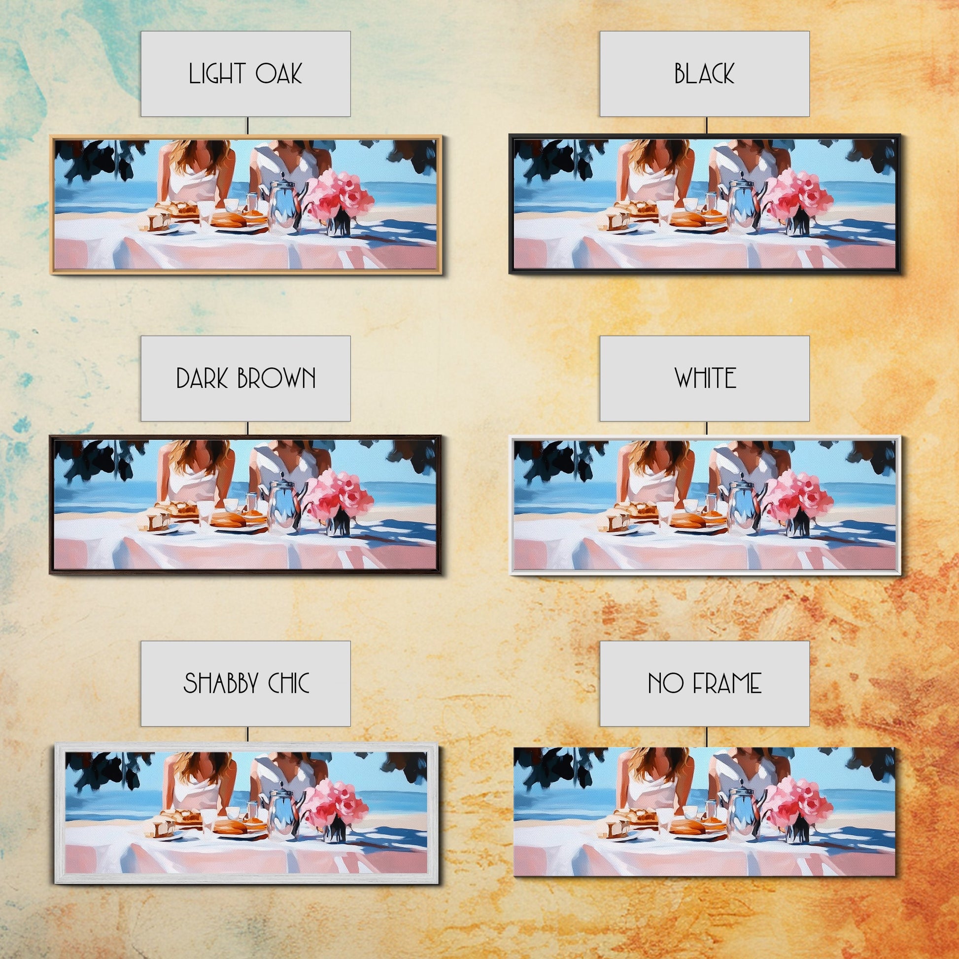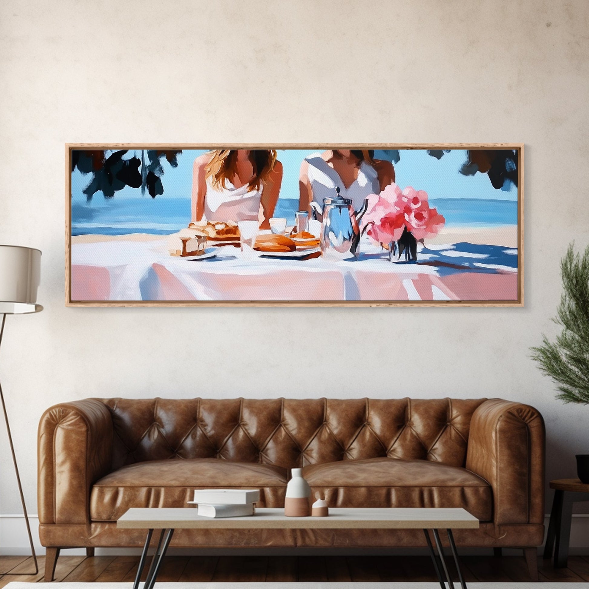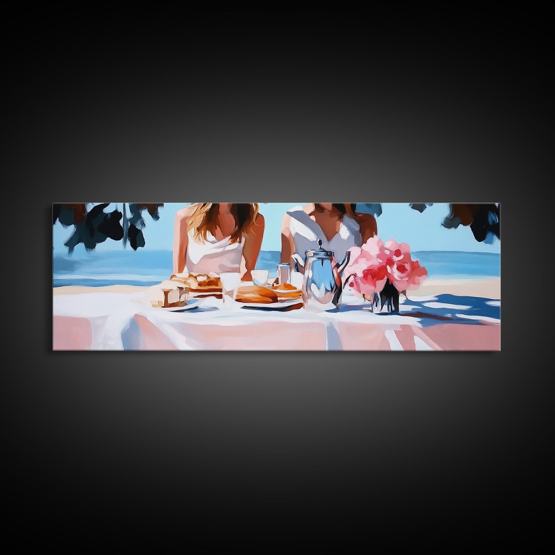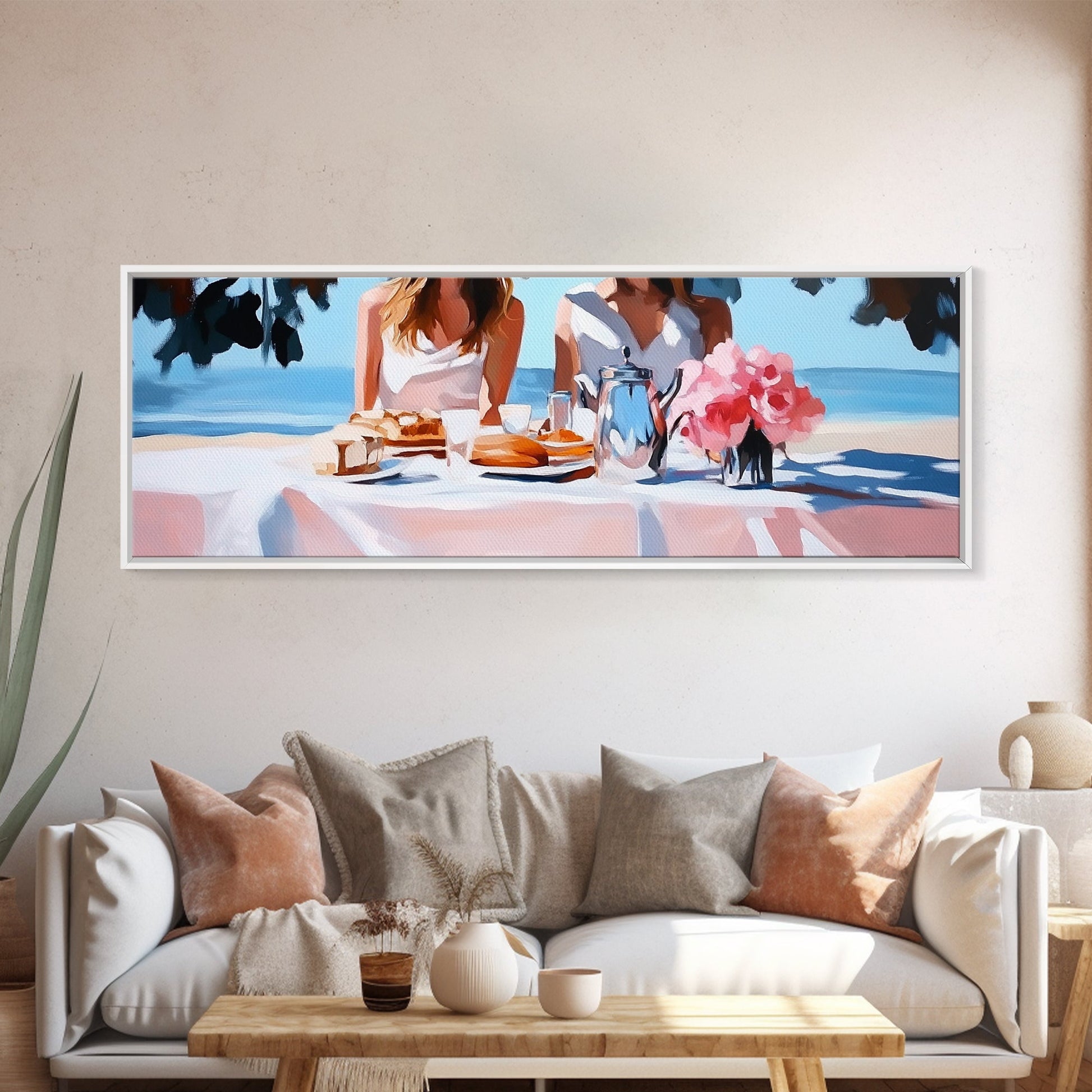 Ocean Picnic, Coastal Dining, Elegant Beach Scene, Pastel Seascape, Canvas Print, Living Room Art, Modern Nautical, Kitchen Wall Art