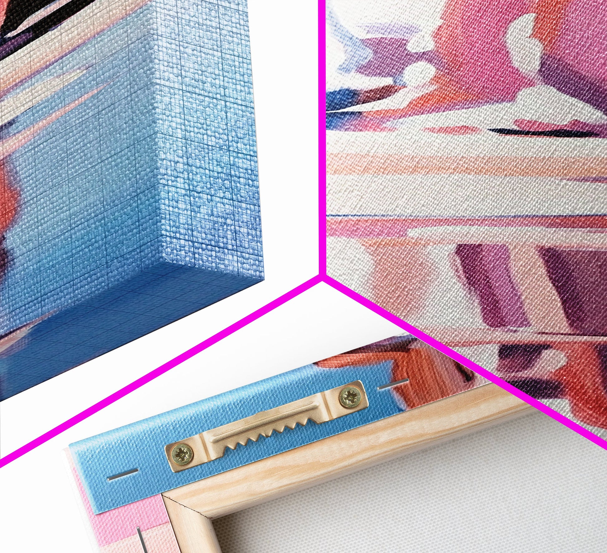 Hello and thank you for taking the time to view our modern high quality giclée artwork! We offer both posters and stretched canvas prints. Our posters are printed on Ultra Matte 60 lb / 230 GSM high quality photo paper, with a thickness of 10 mil. Our canvases are printed on museum grade 350 GSM canvas material with ECO friendly archival grade ink, then hand stretched and stapled over premium, FSC certified and shrink resistant frames. Designed and built to last a lifetime.