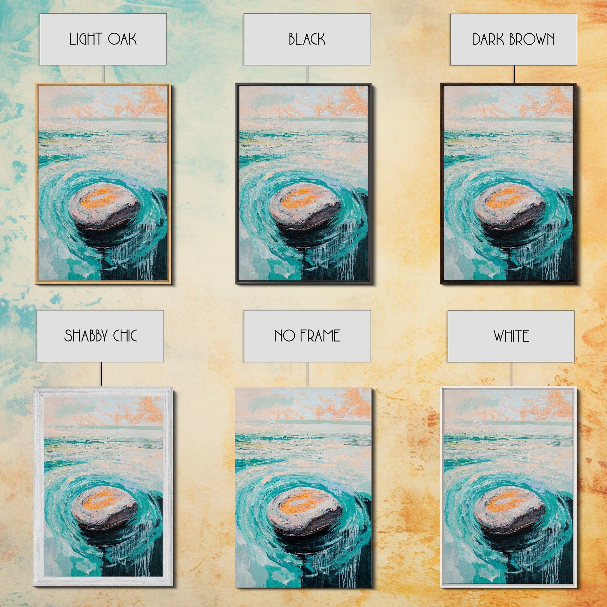 Ocean Rock Waves Canvas Print Coastal Wall Art, Beach House Decor, Abstract Seascape Painting, Nautical Art, Modern Minimalist Art
