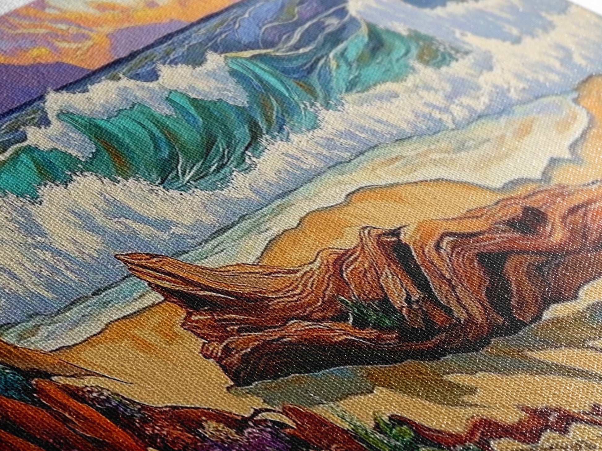 Most of our canvases are made in the USA, with the exception of canvases ordered with the light oak unstained frames, and any large canvases (24x48, 30x60, 16x48 and 20x60) ordered WITH a frame. These are temporarily made in and shipped from Europe, while we try to find a more consistent supplier in the USA.