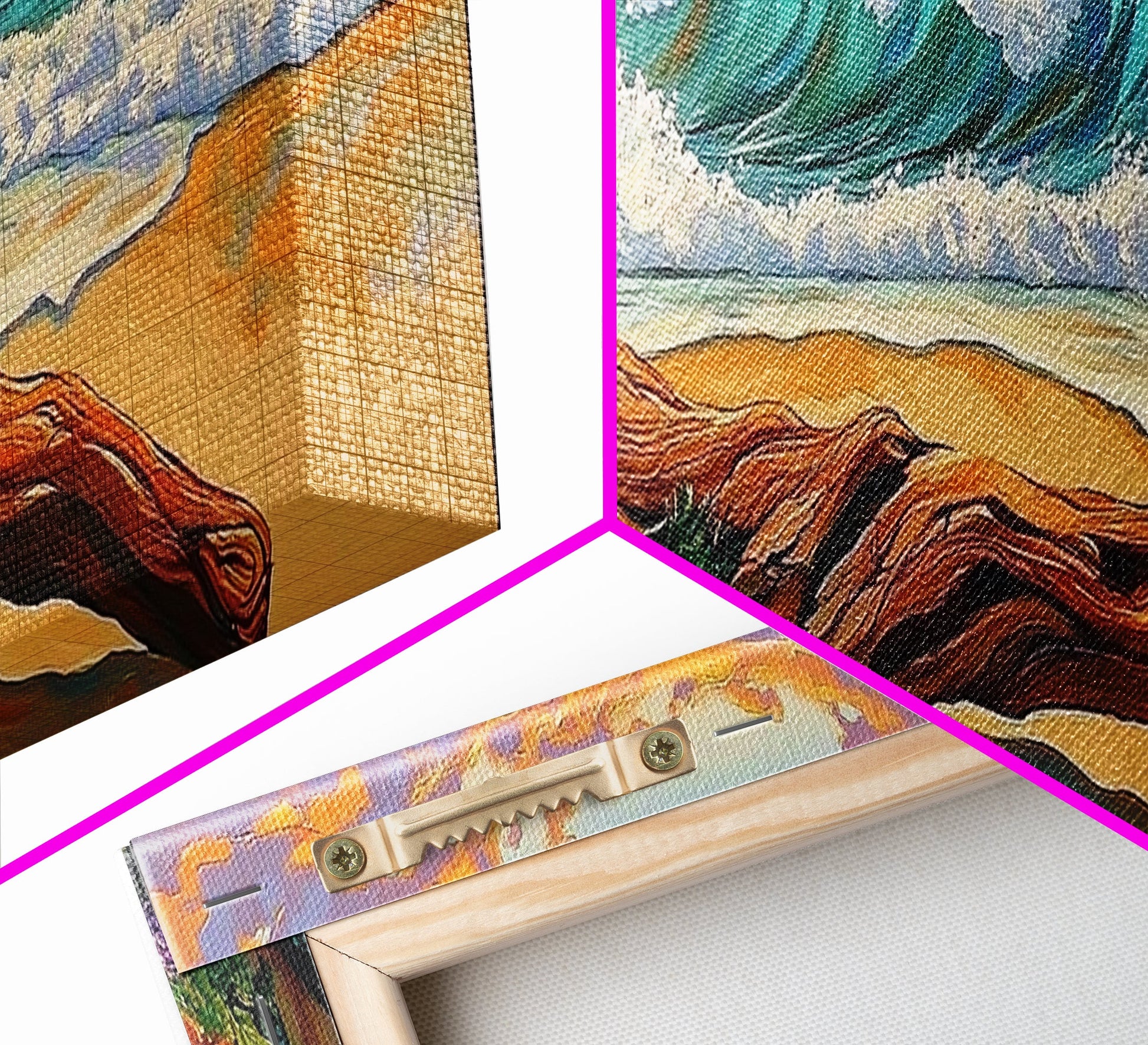 *SHIPPING: Every canvas is carefully wrapped in bubble wrap and foam corner protectors, and shipped fully assembled and ready to hang with sawtooth hangers in a flat box. All you need is a hammer!