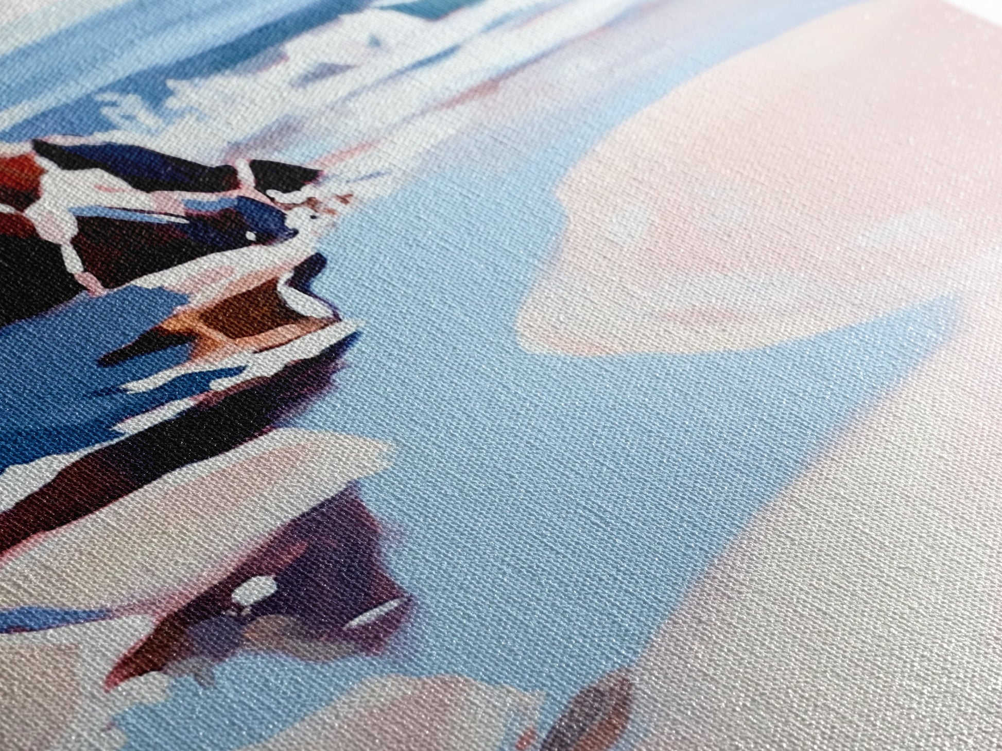 Most of our canvases are made in the USA, with the exception of canvases ordered with the light oak unstained frames, and any large canvases (24x48, 30x60, 16x48 and 20x60) ordered WITH a frame. These are temporarily made in and shipped from Europe, while we try to find a more consistent supplier in the USA.