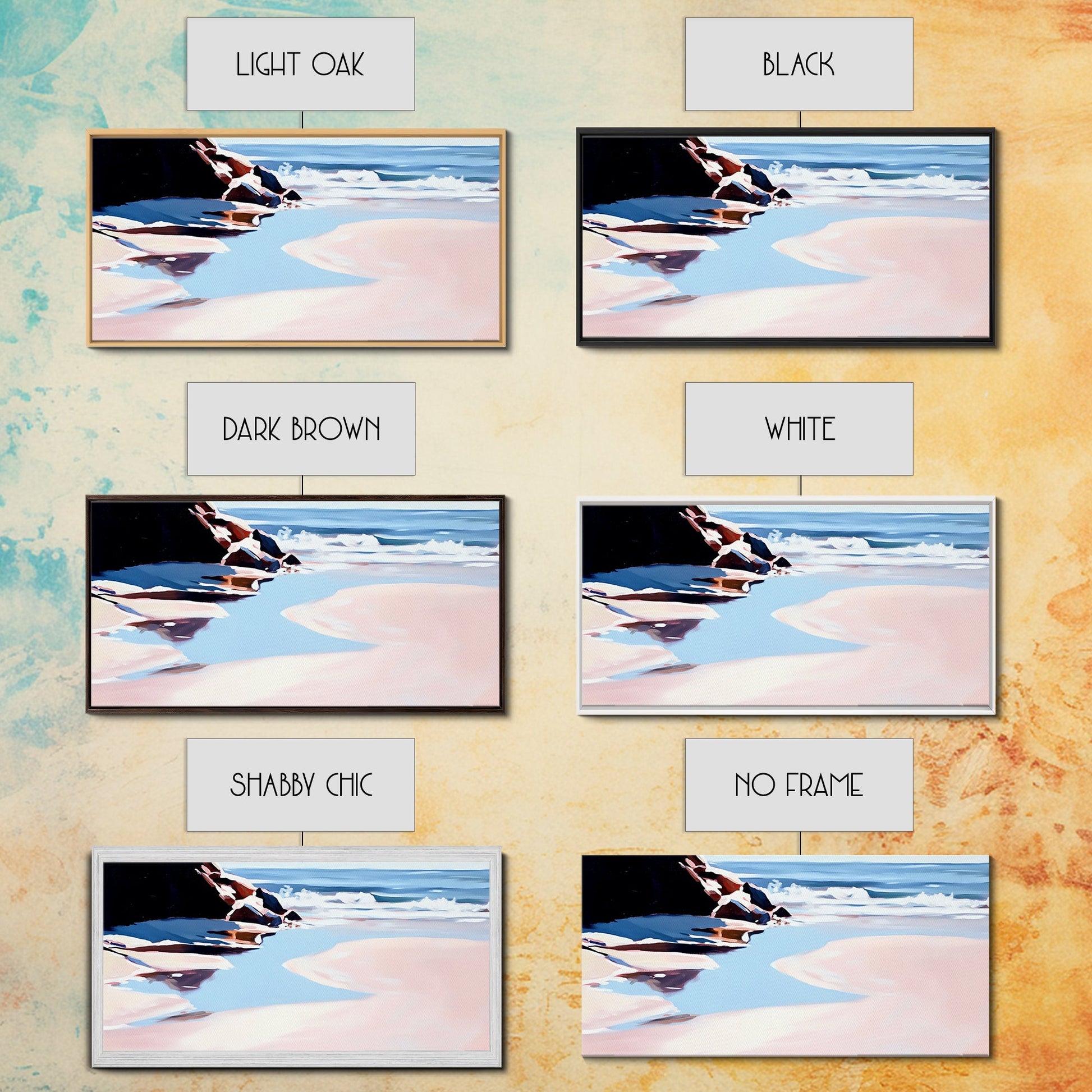 Ocean Shore, Tranquil Seascape Art, Pink Blue Horizon, Serene Beach Wall Decor, Relaxing Coastal Aesthetic, Canvas Print