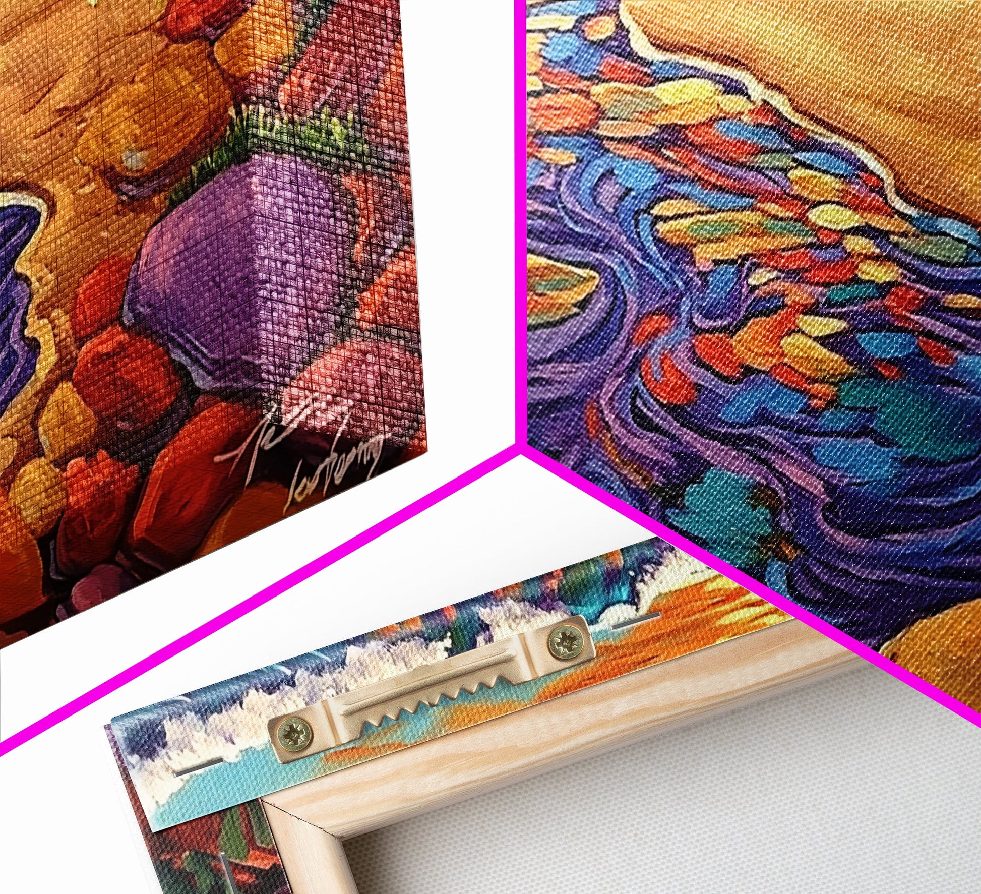 *Optional frames add a total of 1.5 inches to each dimension, for example a 10x20 canvas with a frame will be 11.5 by 21.5 inches total. All framed canvas are 1.5" total depth.
