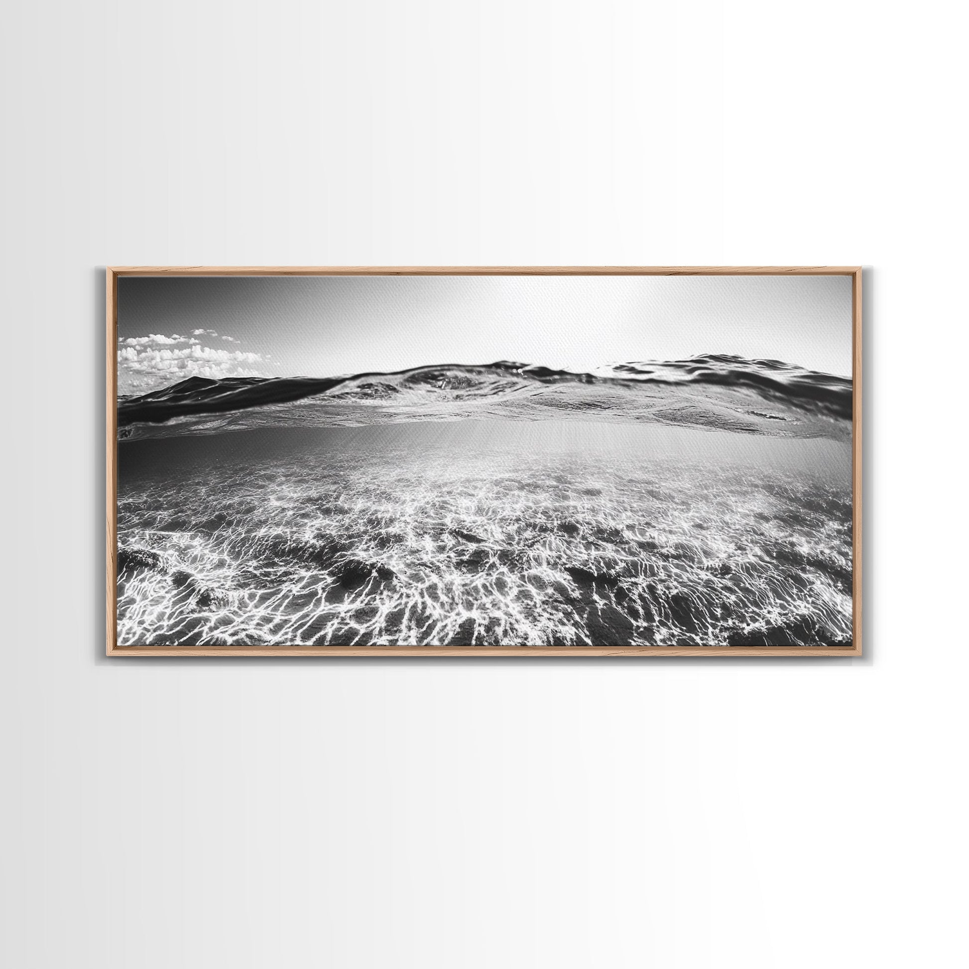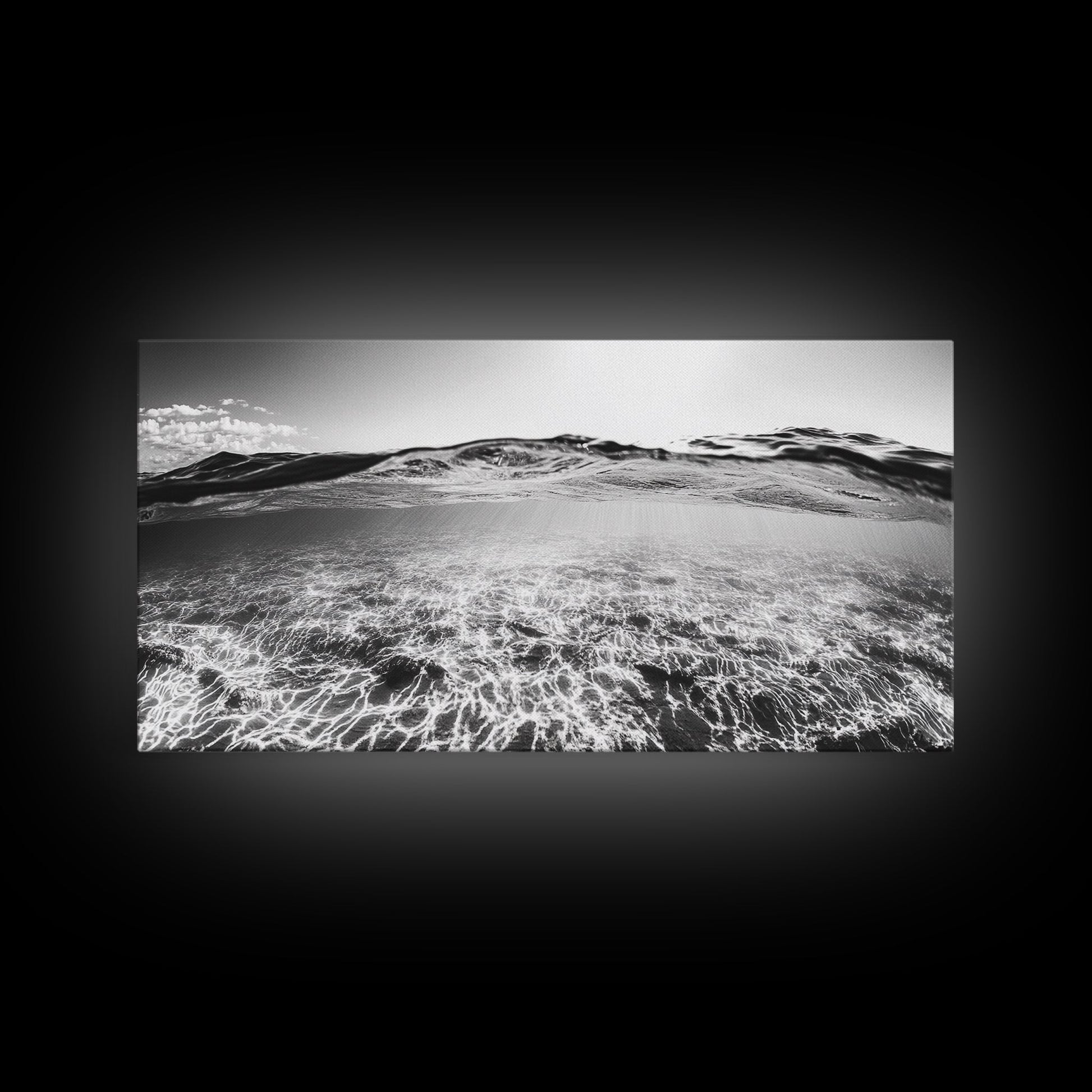 Ocean Surface, Sunlit Water, Sea Ripple, Underwater Light, Canvas Print, Modern Beach Art, Bathroom Wall Decor, Coastal Vibes