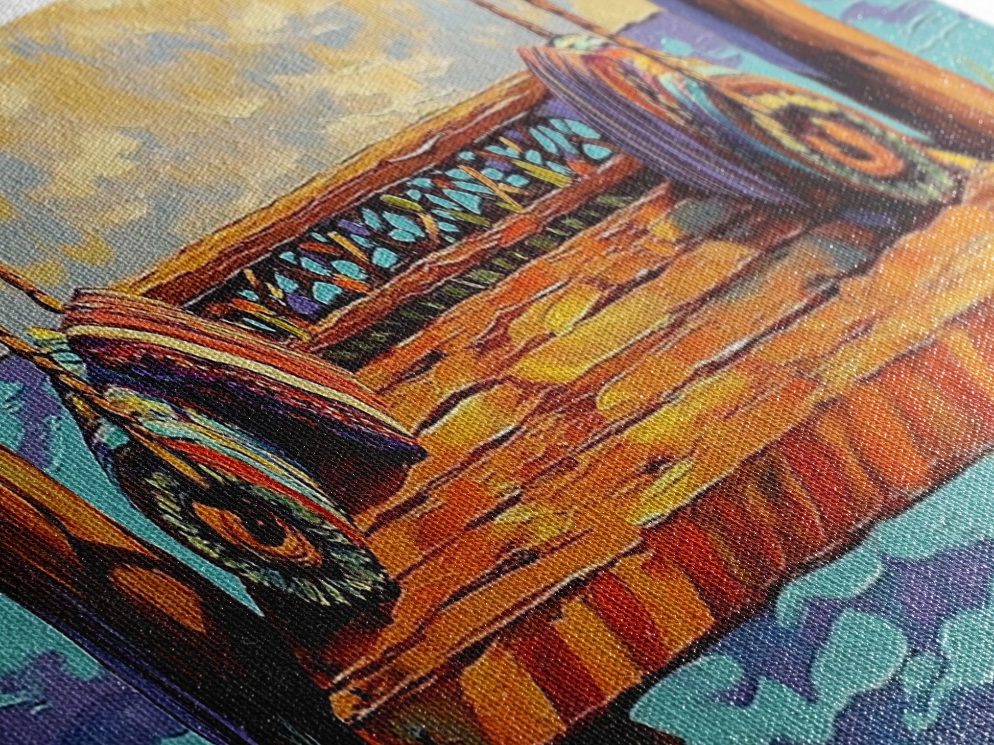 Most of our canvases are made in the USA, with the exception of canvases ordered with the light oak unstained frames, and any large canvases (24x48, 30x60, 16x48 and 20x60) ordered WITH a frame. These are temporarily made in and shipped from Europe, while we try to find a more consistent supplier in the USA.