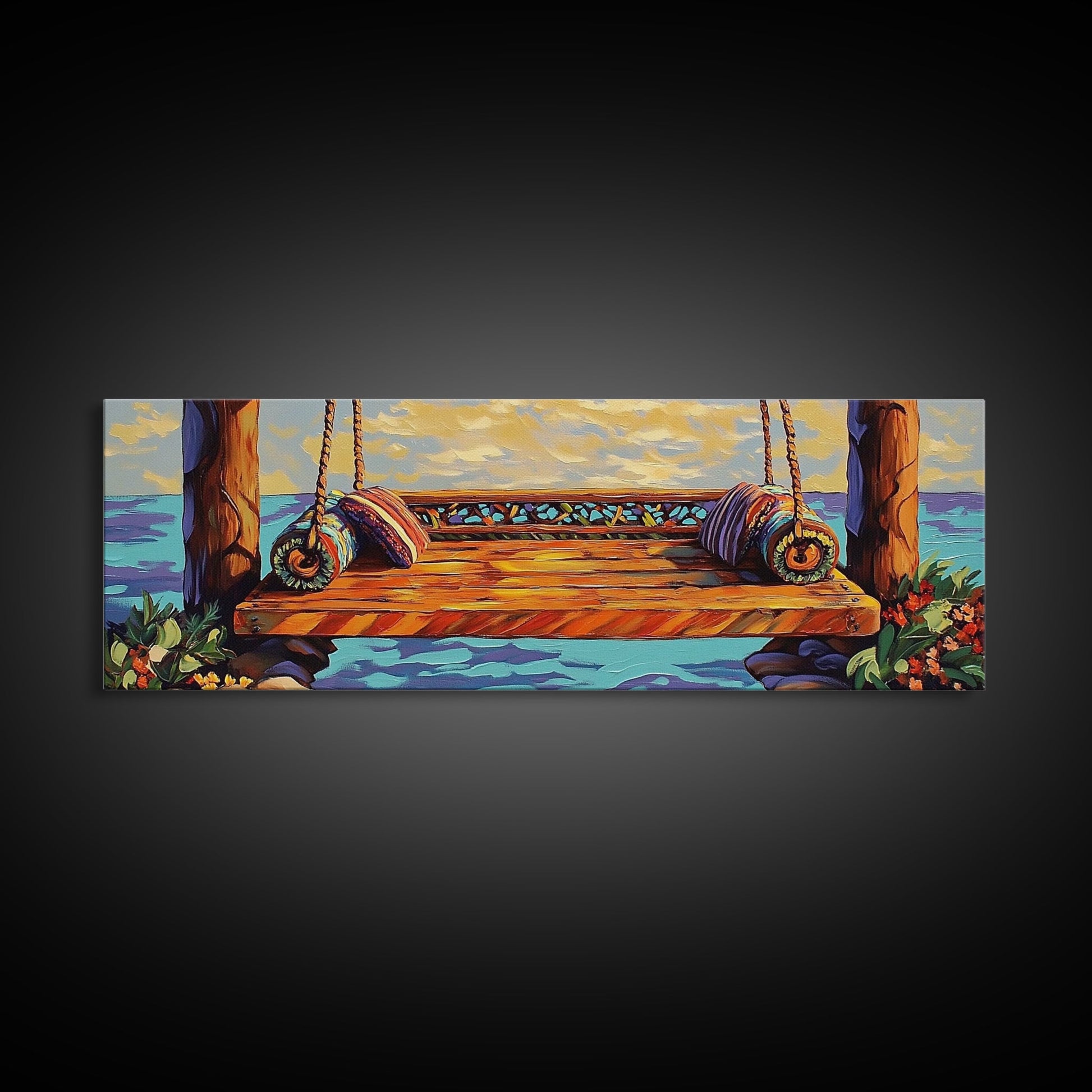 Ocean Swing Scene, Relaxing Seaside Painting, Nautical Coastal Art, Beach House Decor, Peaceful Canvas Print, Hallway Art, Bedroom Art