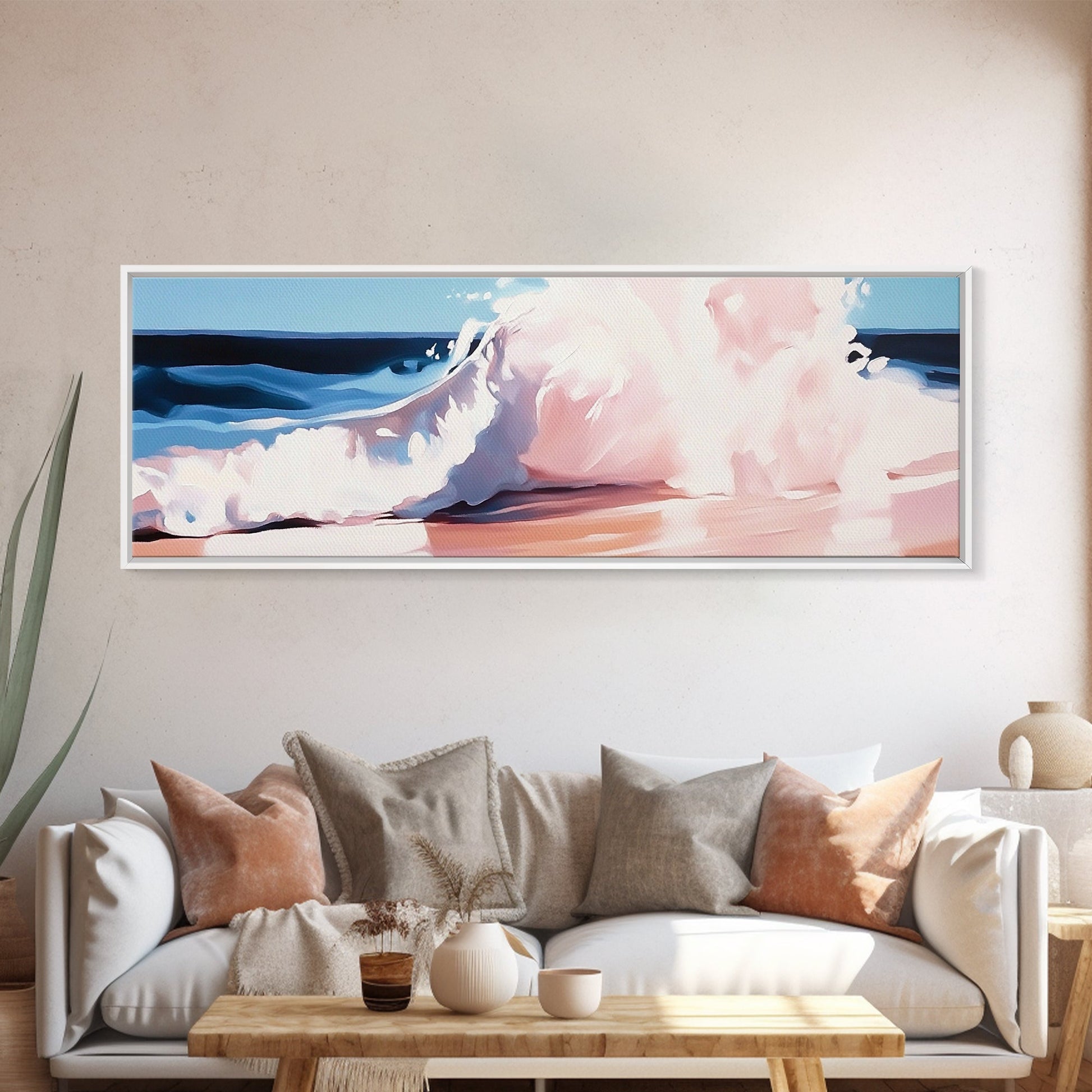 Ocean Wave, Coastal Splash, Beach House Wall Art, Framed Canvas Print, Serene Seascape, Blue Aesthetic, Nautical Home Decor