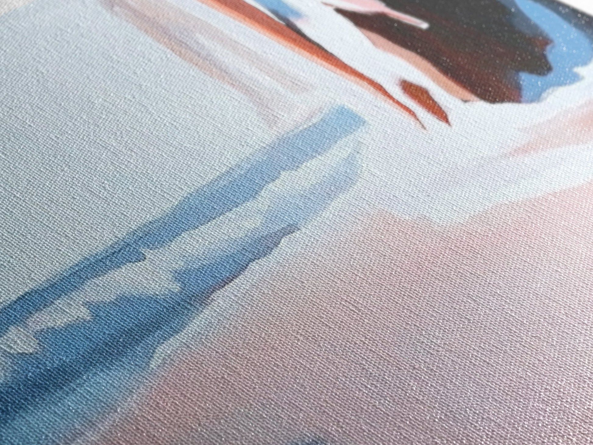 Most of our canvases are made in the USA, with the exception of canvases ordered with the light oak unstained frames, and any large canvases (24x48, 30x60, 16x48 and 20x60) ordered WITH a frame. These are temporarily made in and shipped from Europe, while we try to find a more consistent supplier in the USA.
