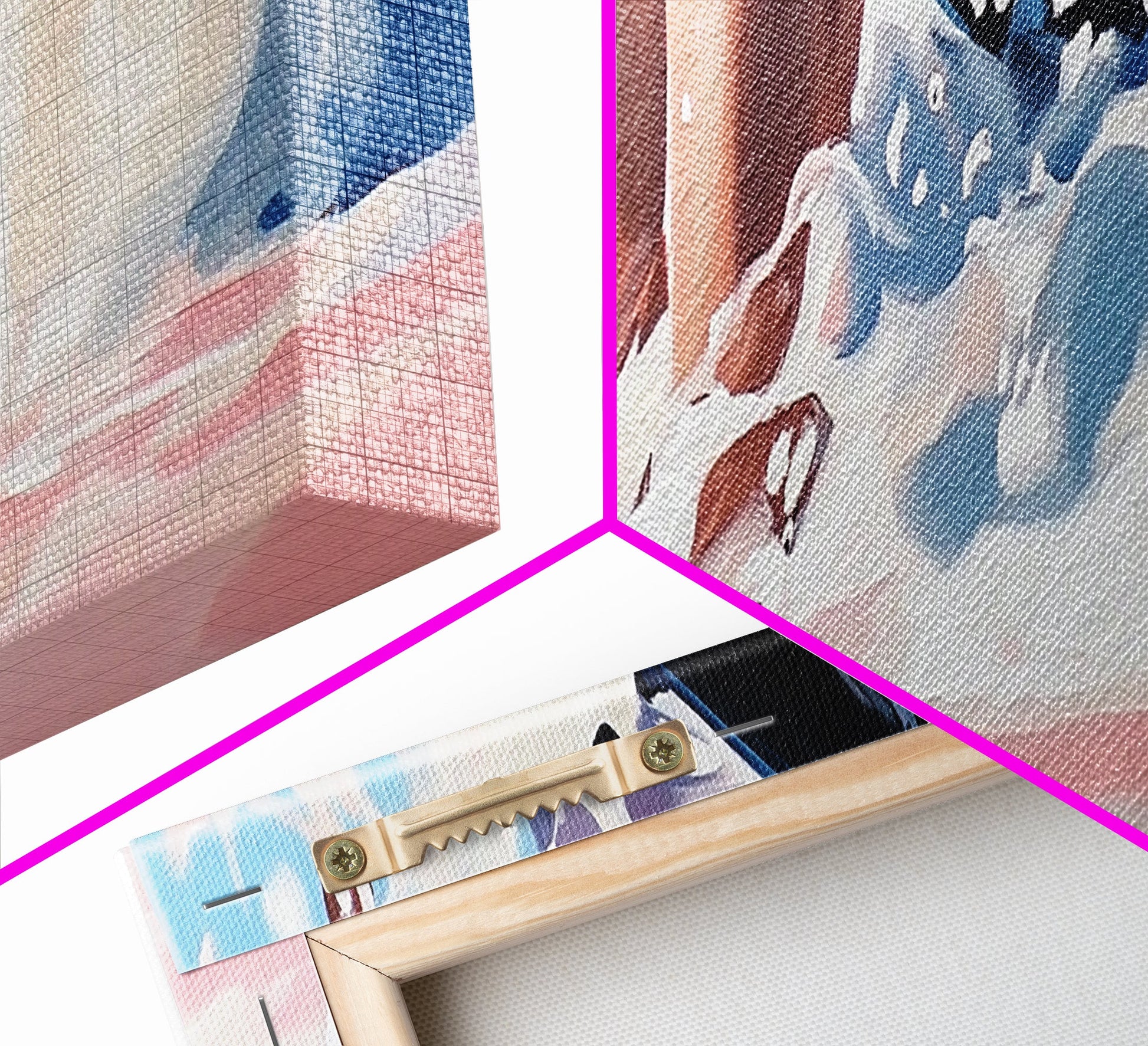 Hello and thank you for taking the time to view our modern high quality giclée artwork! We offer both posters and stretched canvas prints. Our posters are printed on Ultra Matte 60 lb / 230 GSM high quality photo paper, with a thickness of 10 mil. Our canvases are printed on museum grade 350 GSM canvas material with ECO friendly archival grade ink, then hand stretched and stapled over premium, FSC certified and shrink resistant frames. Designed and built to last a lifetime.