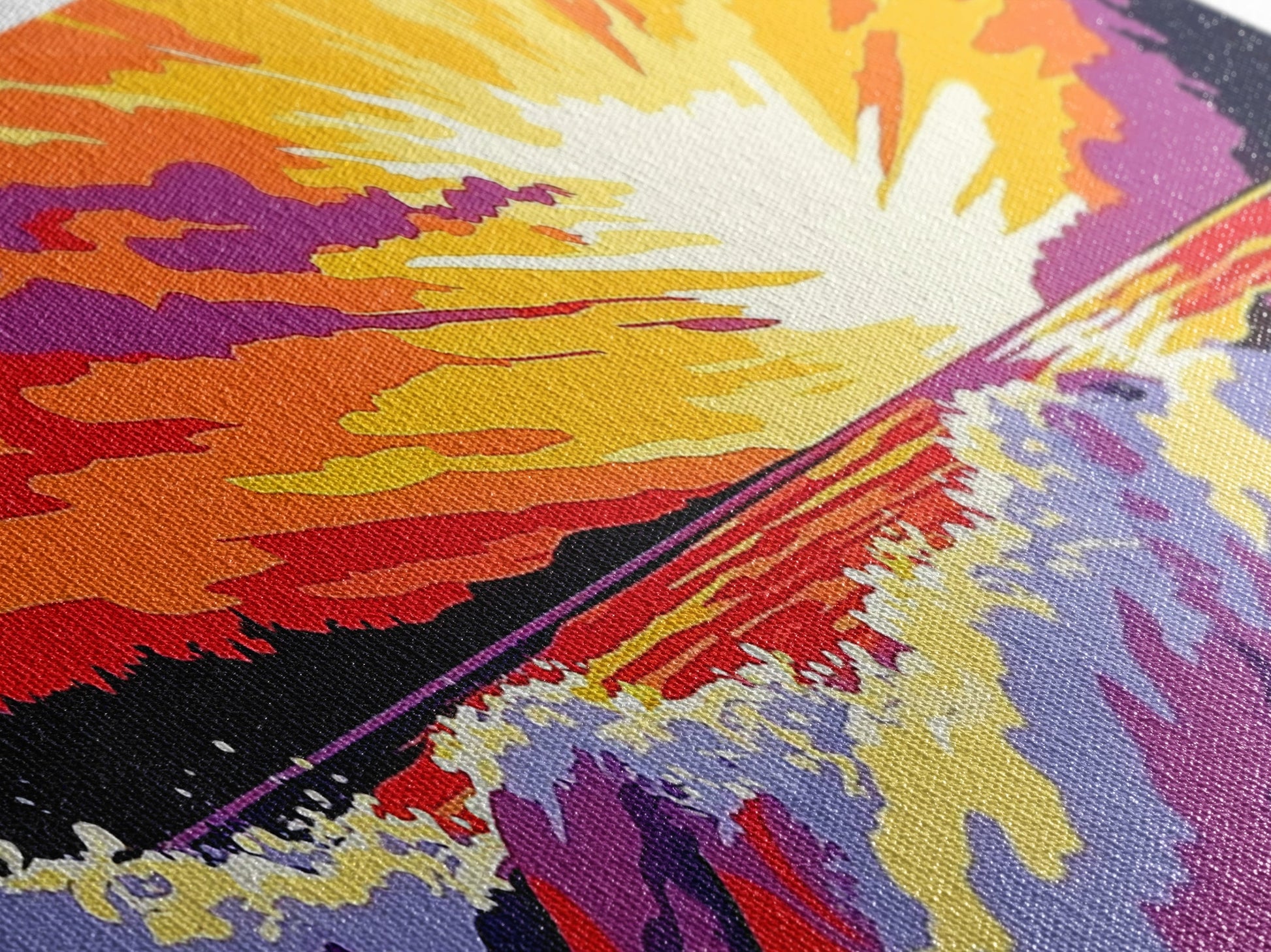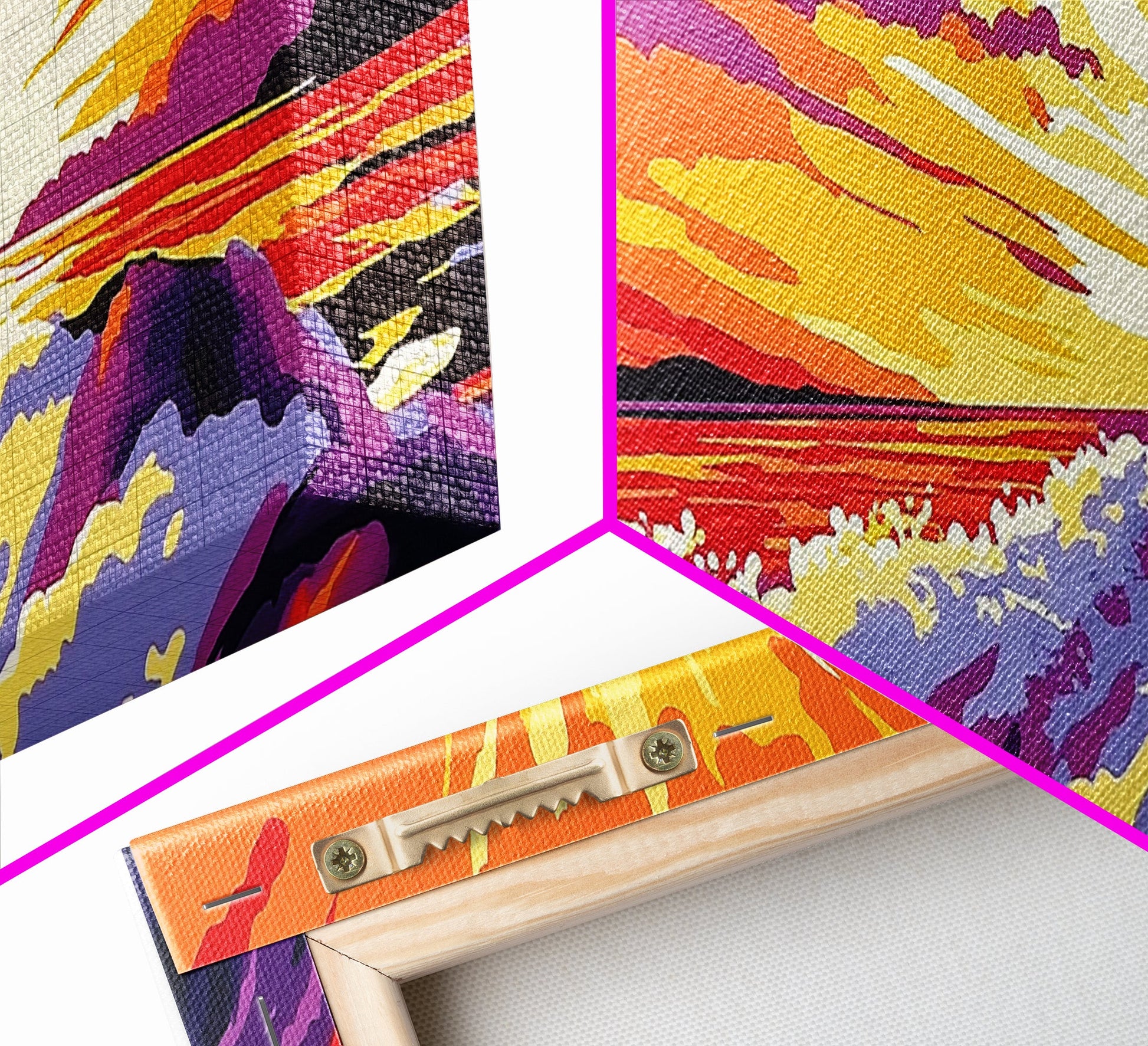 Hello and thank you for taking the time to view our modern high quality giclée artwork! We offer both posters and stretched canvas prints. Our posters are printed on Ultra Matte 60 lb / 230 GSM high quality photo paper, with a thickness of 10 mil. Our canvases are printed on museum grade 350 GSM canvas material with ECO friendly archival grade ink, then hand stretched and stapled over premium, FSC certified and shrink resistant frames. Designed and built to last a lifetime.
