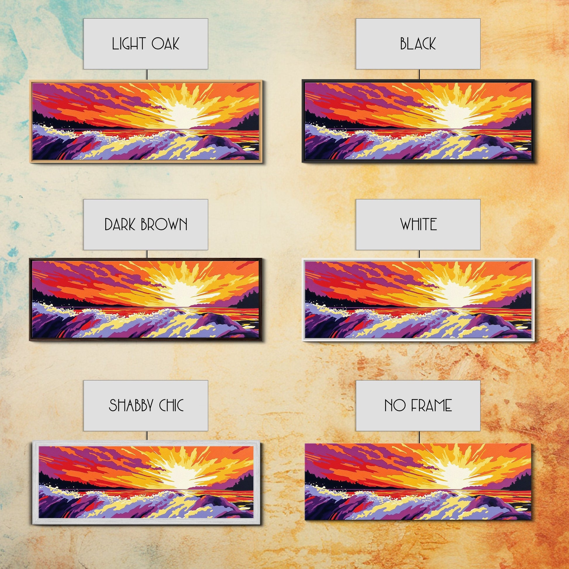 Ocean Waves, Fiery Sunset, Framed Canvas Print, Bold Seascape Art, Nature Scene, Coastal Home Decor, Modern Wall Art, Office Decor