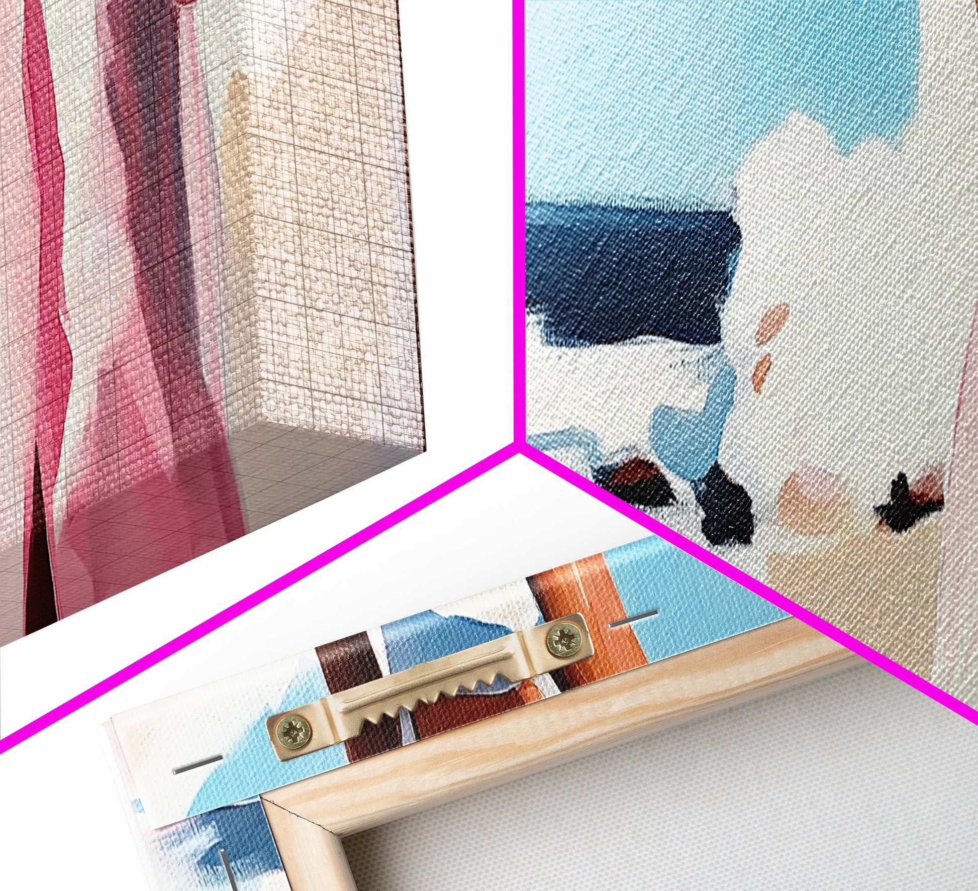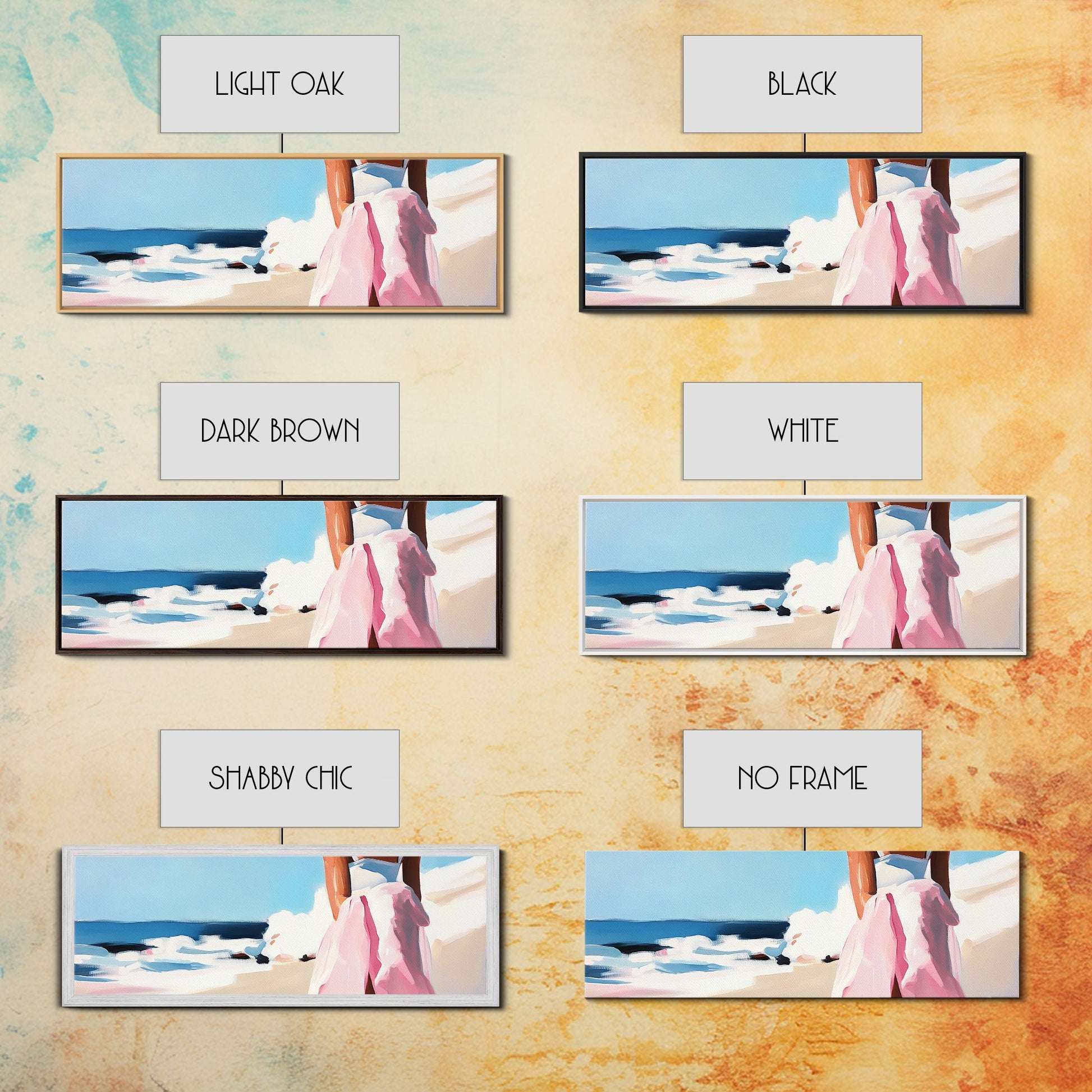 Ocean Waves, Pink Skirt, Windy Shoreline, Framed Canvas Print, Coastal Wall Art, Beach Home Decor, Minimalist Aesthetic, Ocean Scene