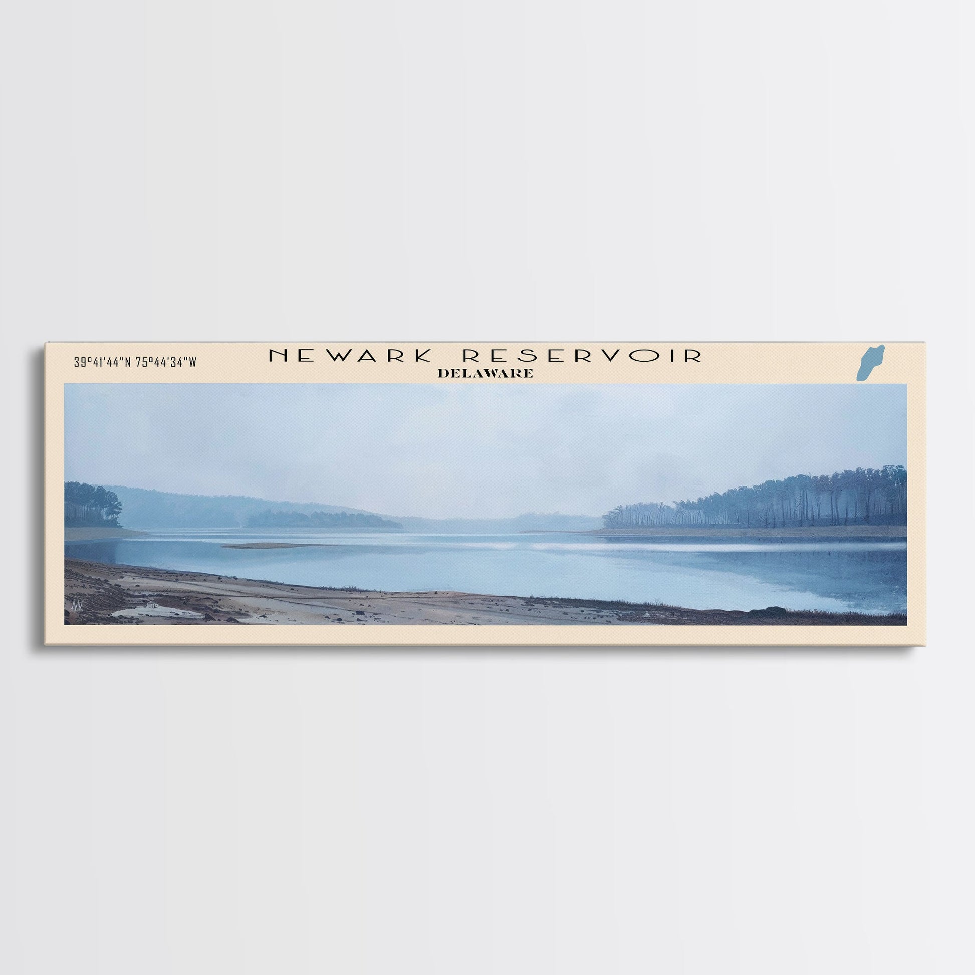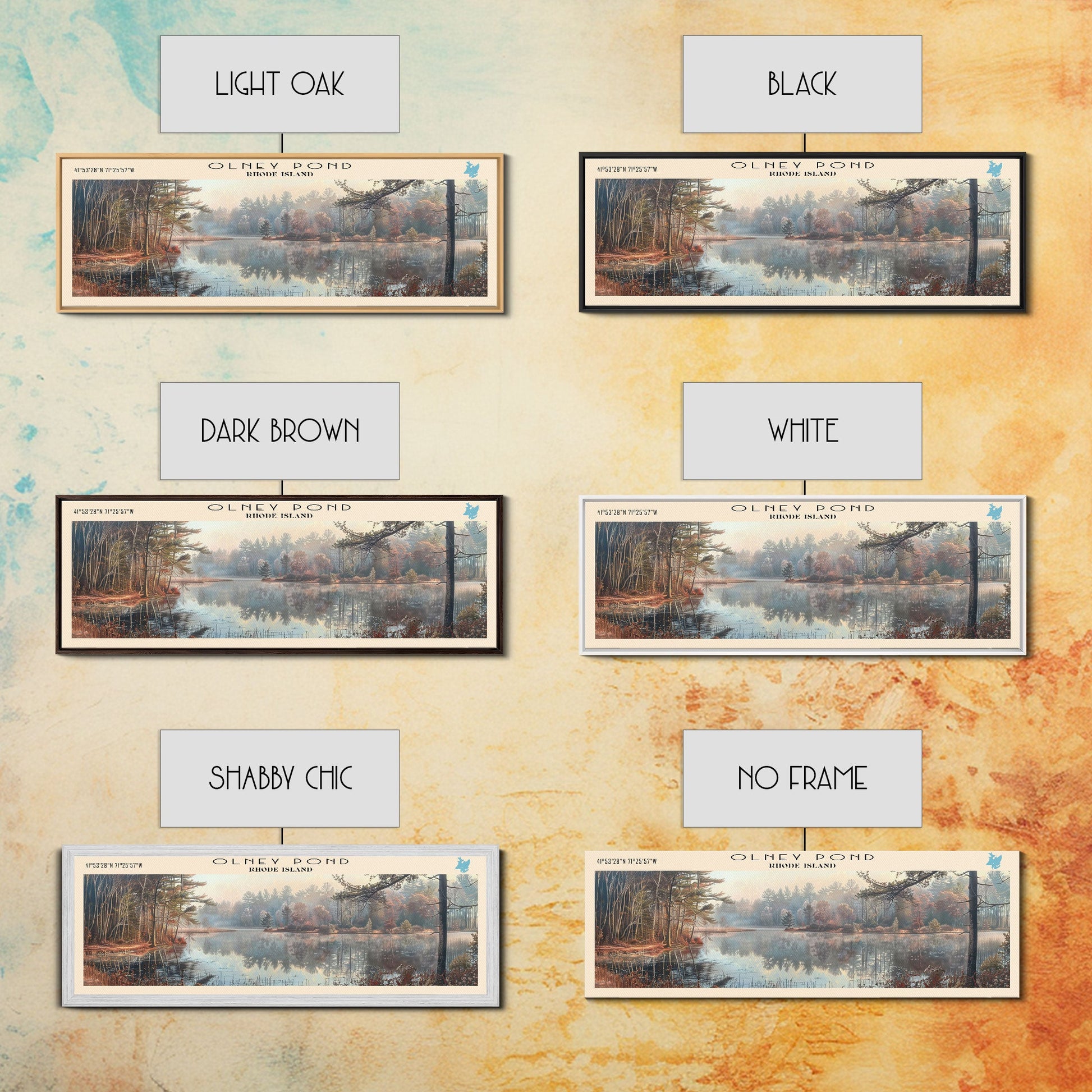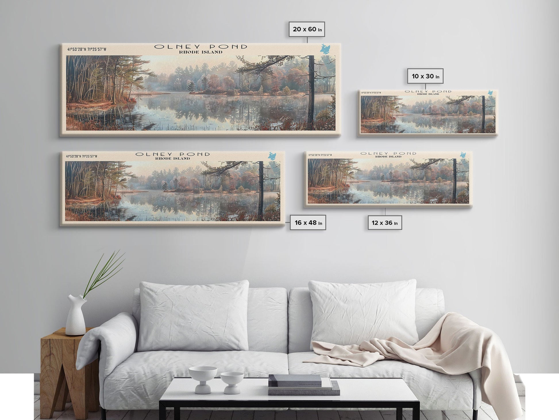 Olney Pond Rhode Island Framed Canvas Print, Lake House Decor, Panoramic Wall Art, Travel Poster, Landscape Painting, Bedroom Decor