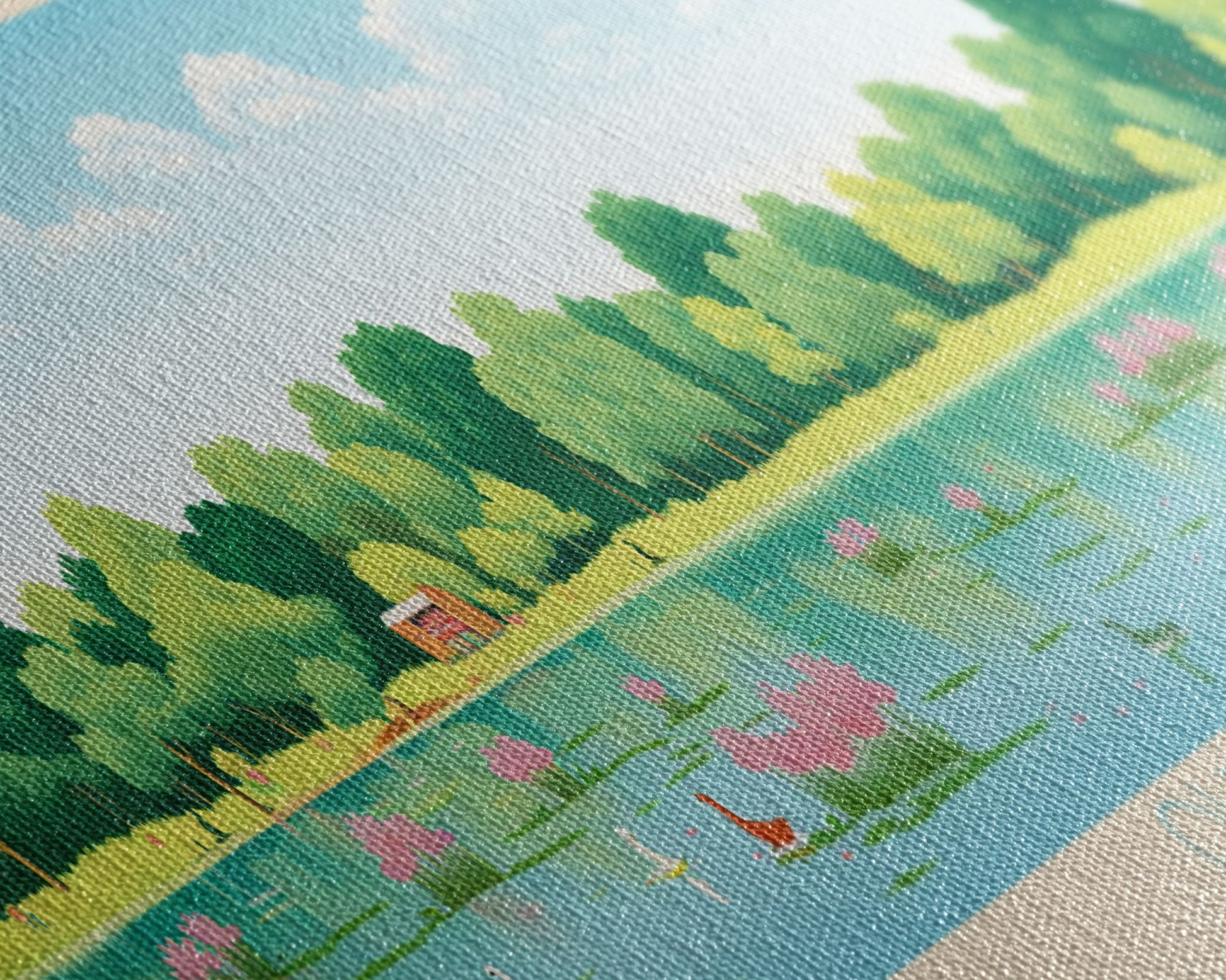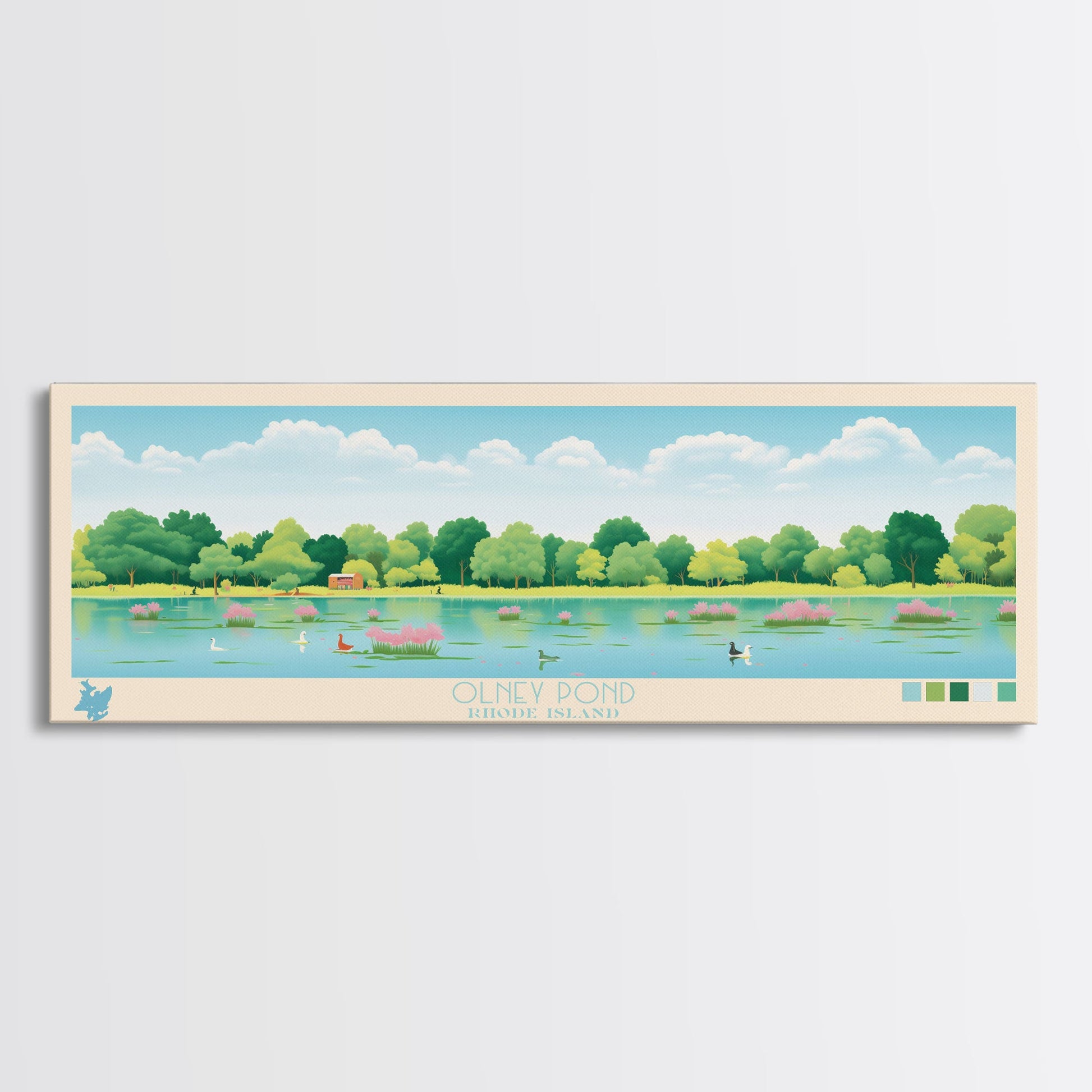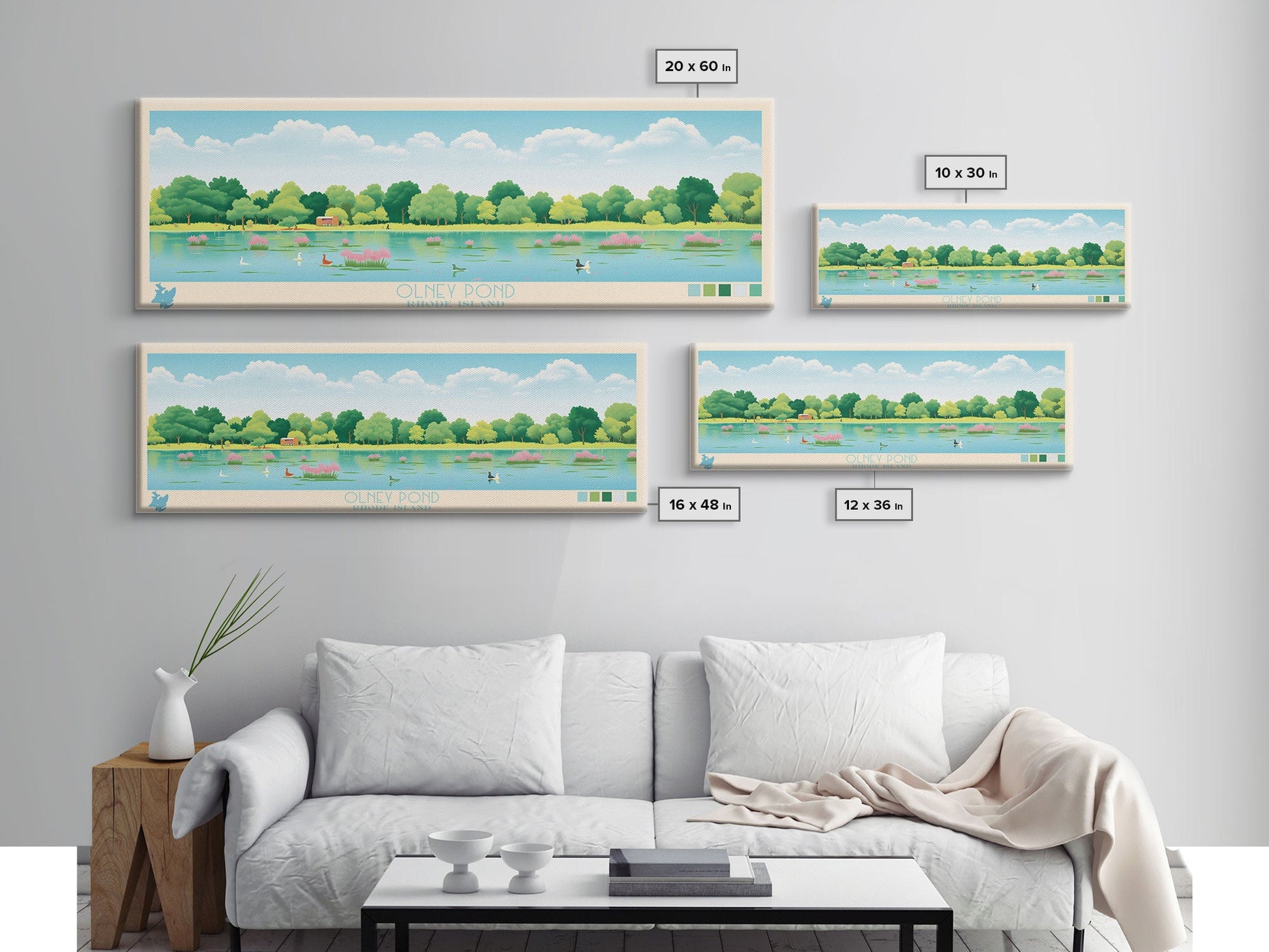 Olney Pond, Rhode Island Framed Canvas Print, Panoramic Wall Art, Midcentury Modern, Pop Art, Home Decor, Travel Poster, Living Room Art