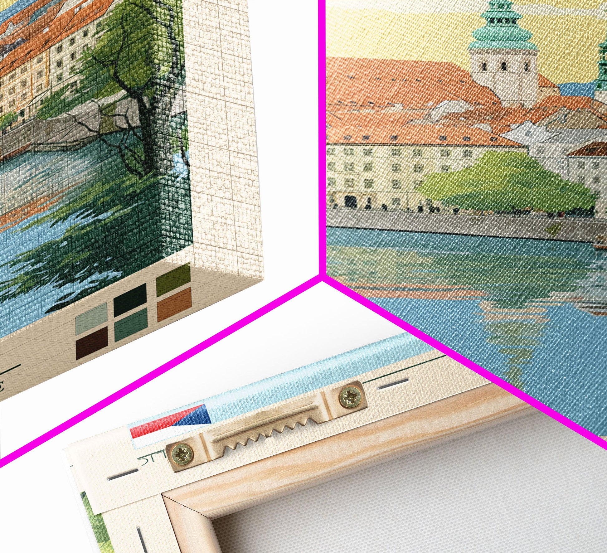 Olomouc Czech Republic Travel Poster Framed Canvas Print, Midcentury Modern Art, Pop Art Wall Decor, Scenic Wall Art, Living Room Decoration, Office Gift