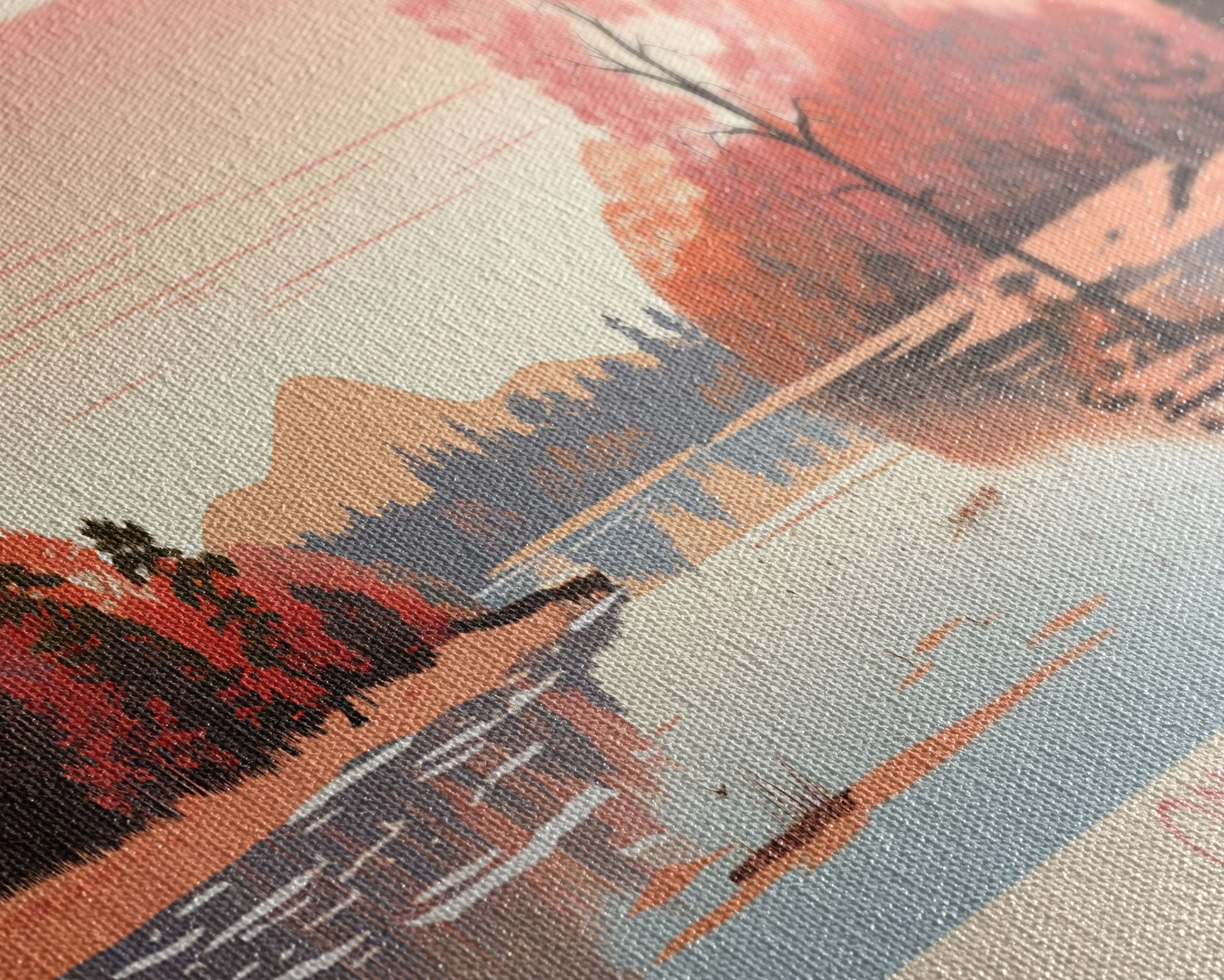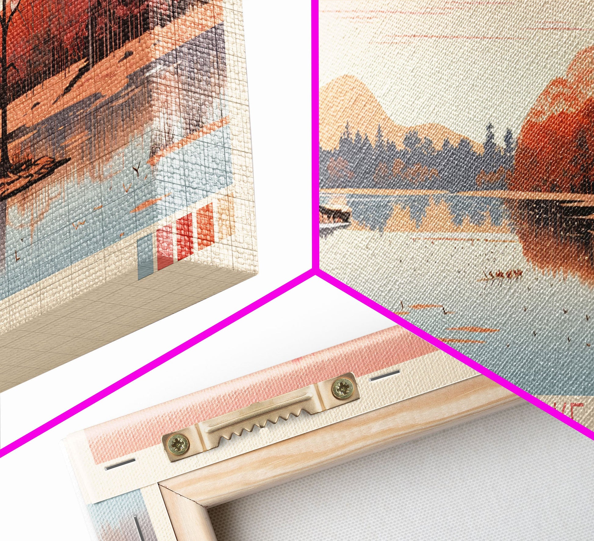 Onota Lake, Massachusetts Framed Canvas Print, Panoramic Wall Art, Midcentury Modern, Pop Art, Home Decor, Travel Poster, Living Room Art