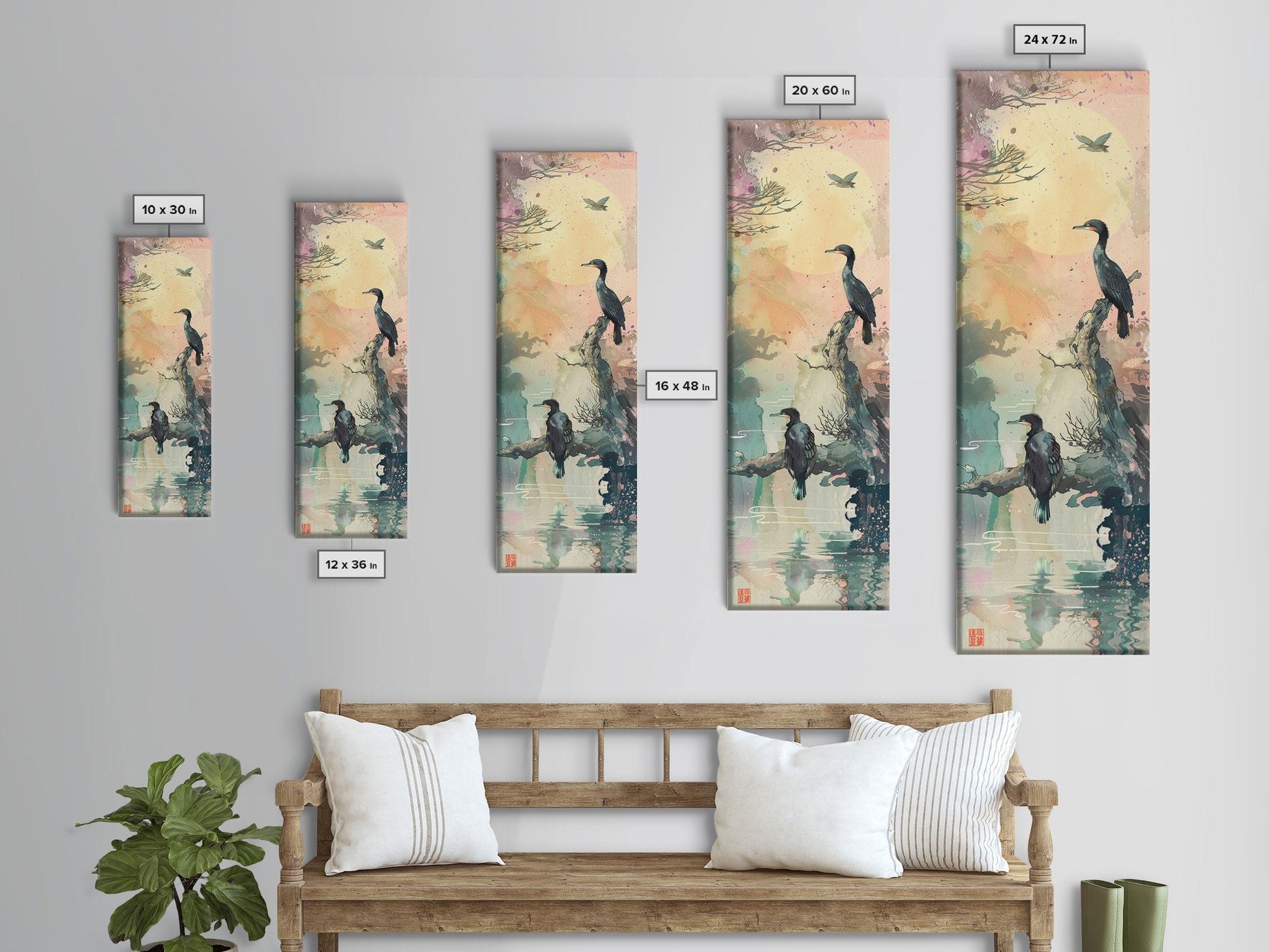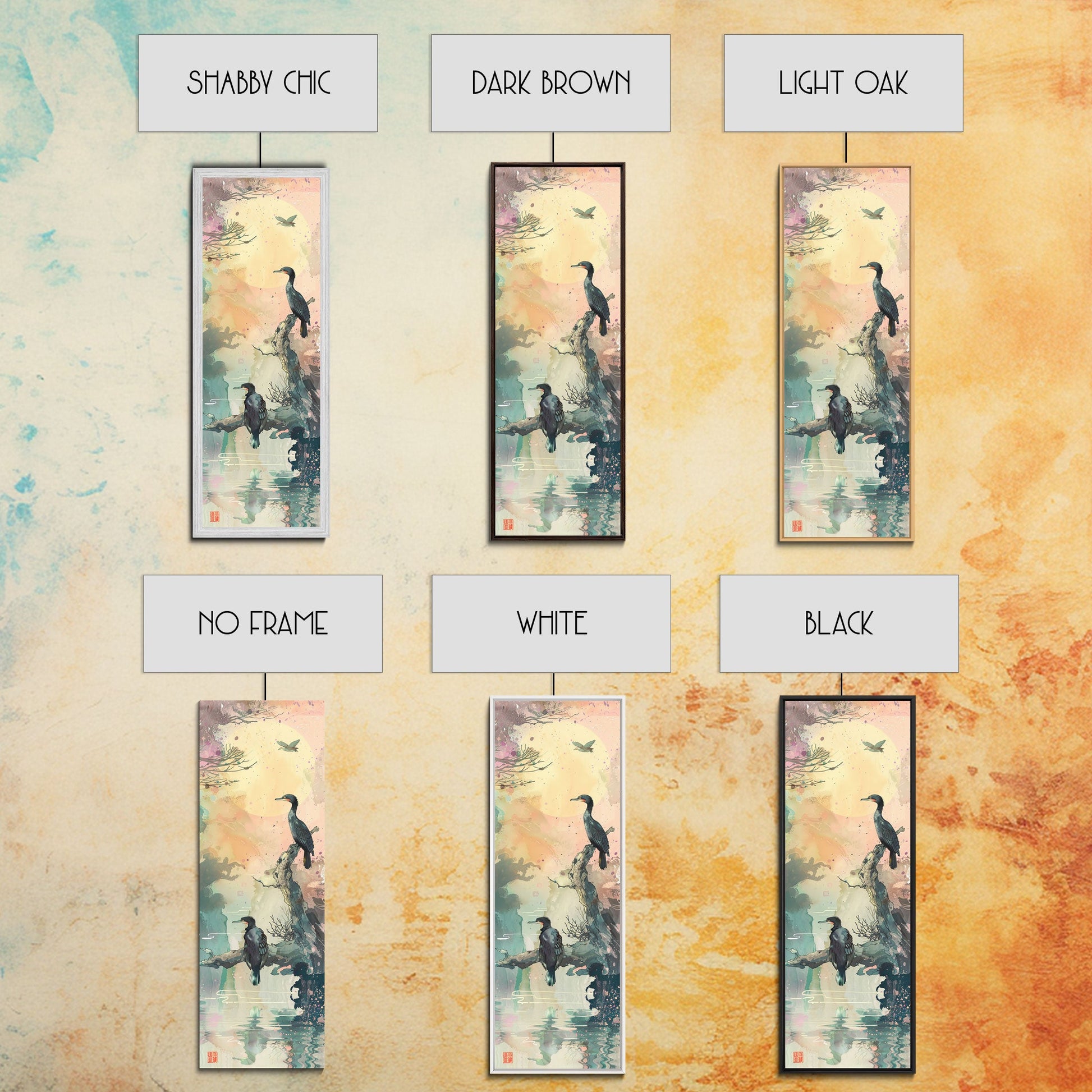 *Optional frames add a total of 1.5 inches to each dimension, for example a 10x20 canvas with a frame will be 11.5 by 21.5 inches total. All framed canvas are 1.5" total depth.