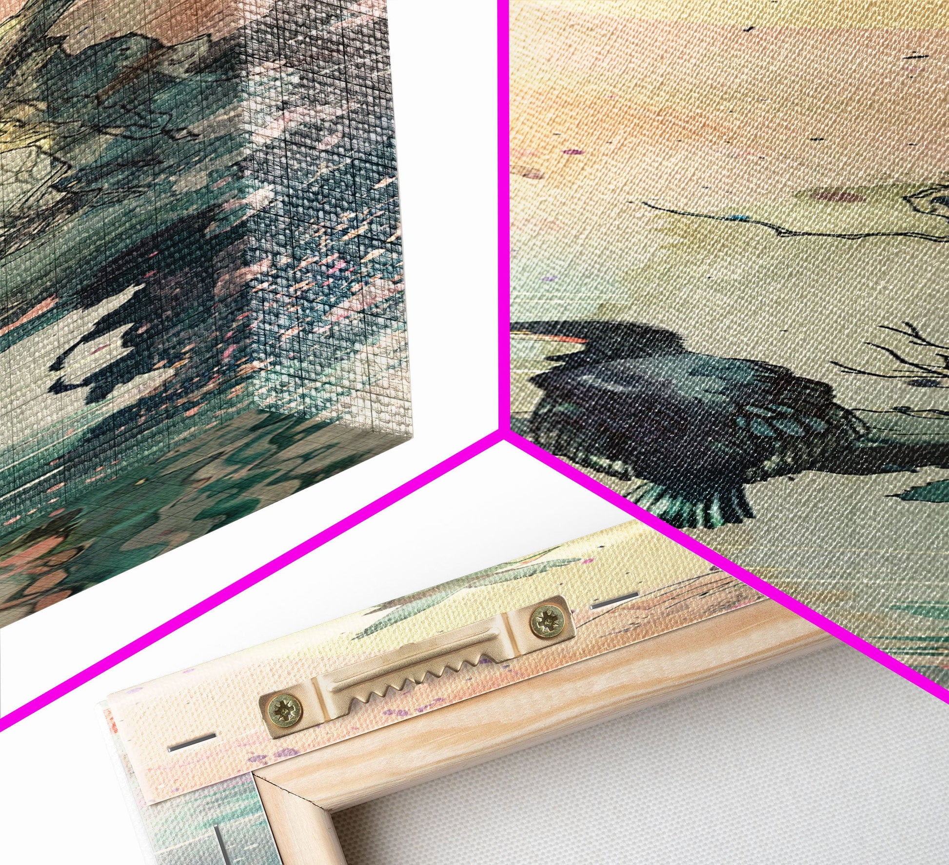 *SHIPPING: Every canvas is carefully wrapped in bubble wrap and foam corner protectors, and shipped fully assembled and ready to hang with sawtooth hangers in a flat box. All you need is a hammer!