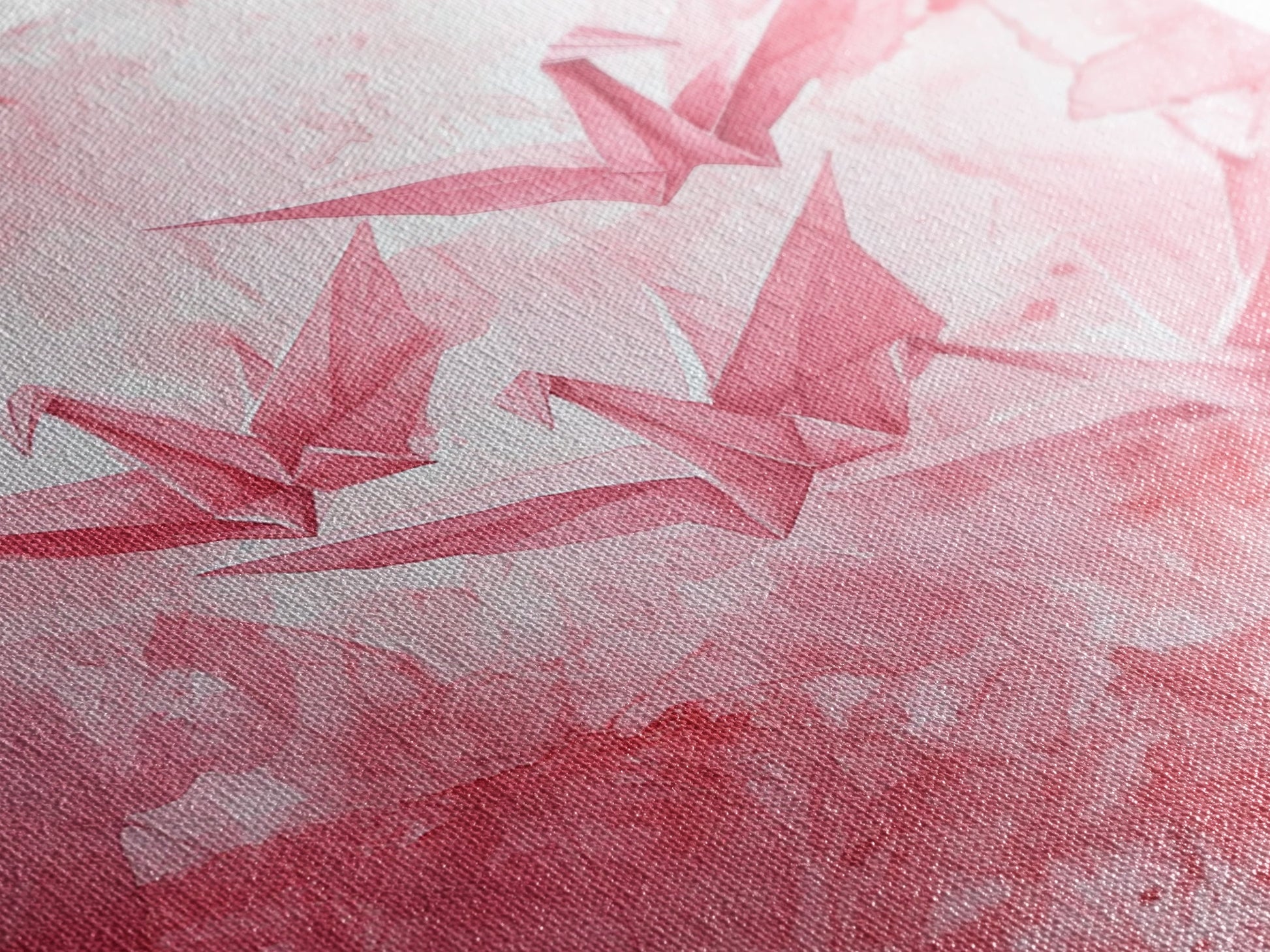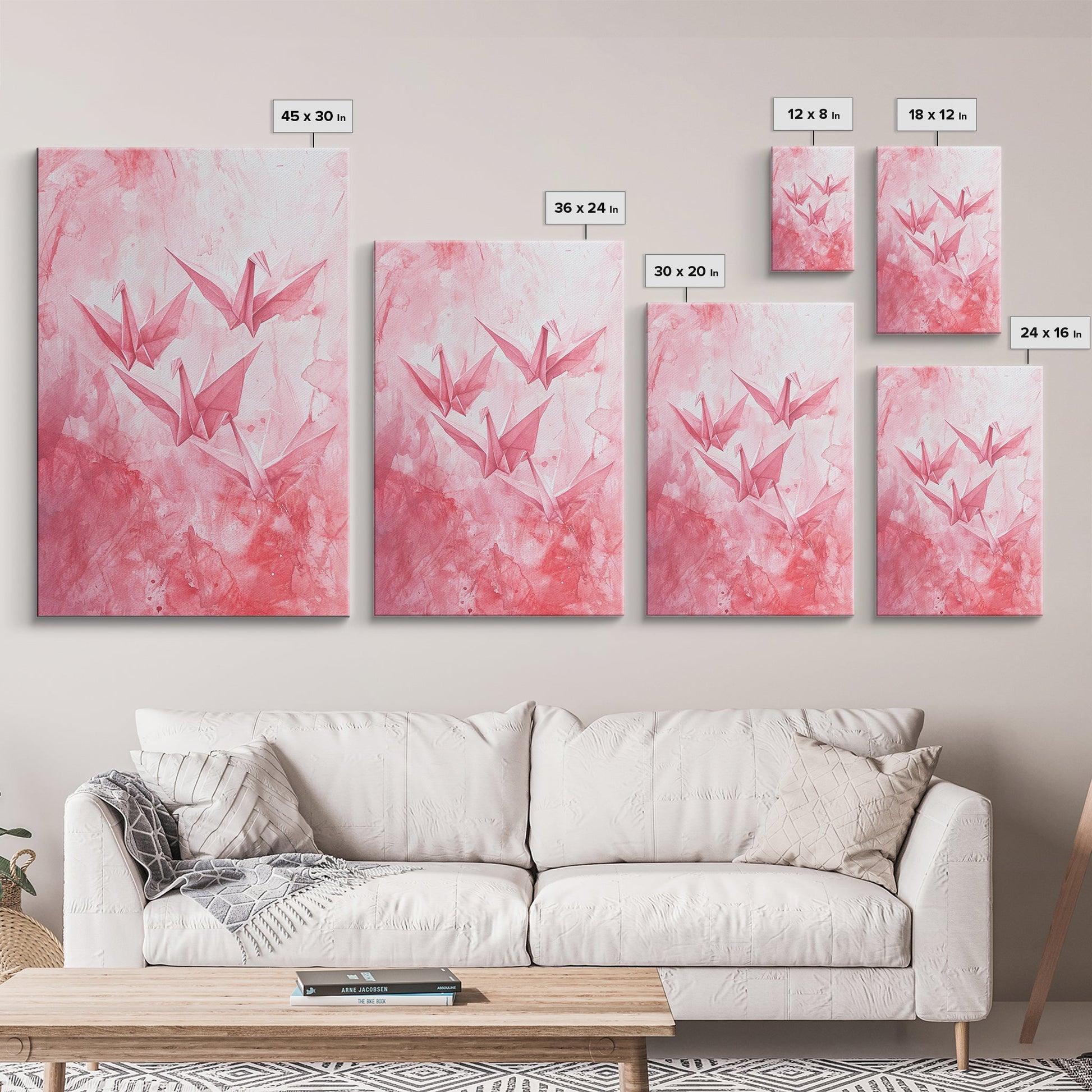 Origami Cranes Canvas Print Japanese Inspired Light Pink Wall Art Whimsical Minimalist Rustic Aesthetic Unique Gift Idea Art