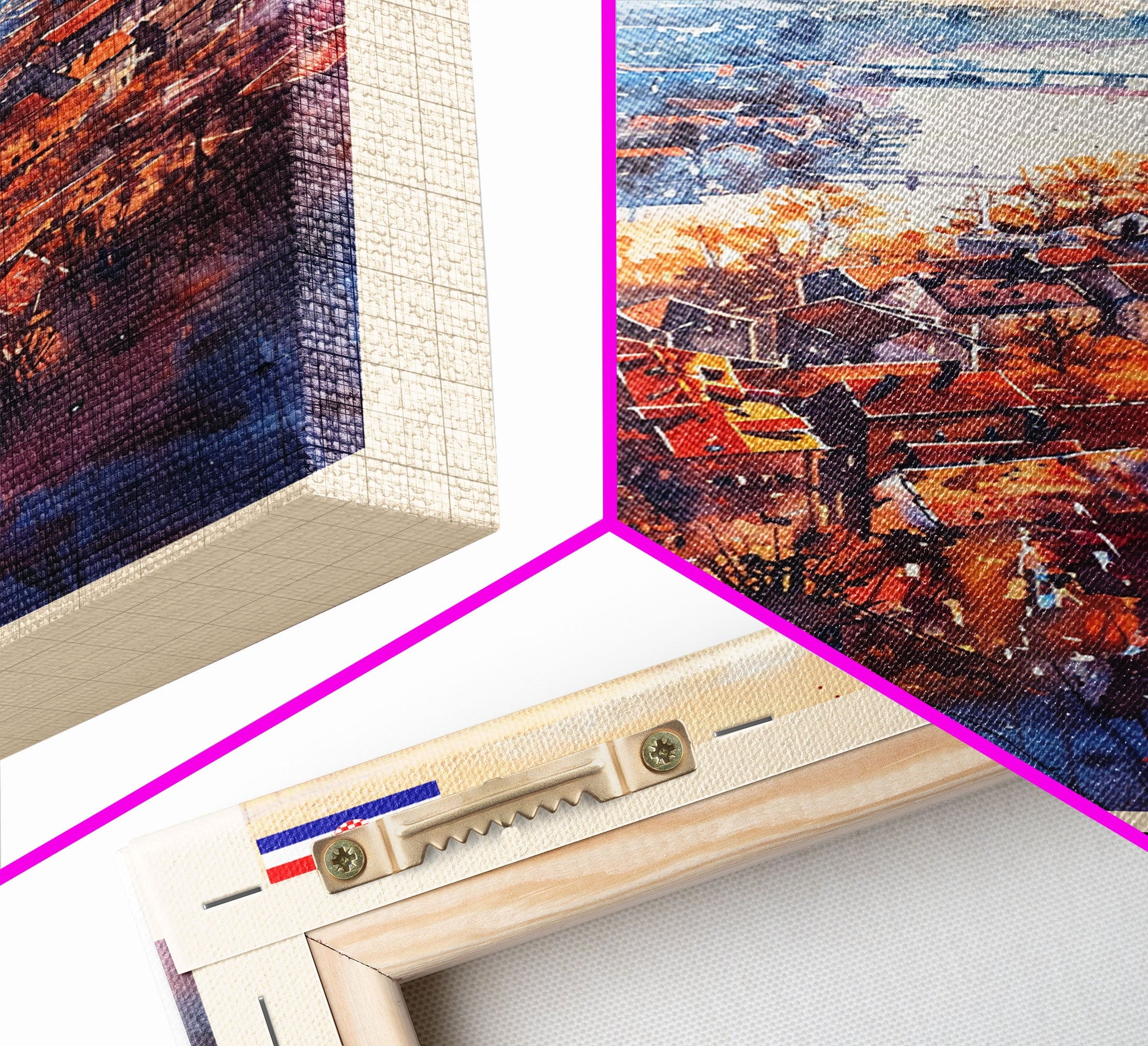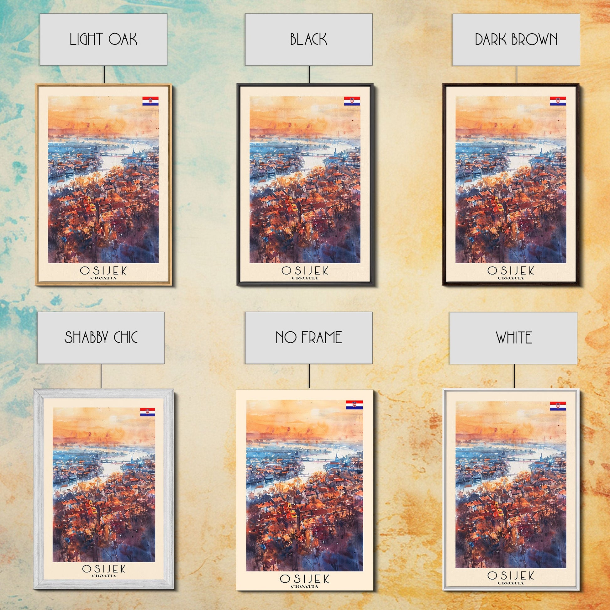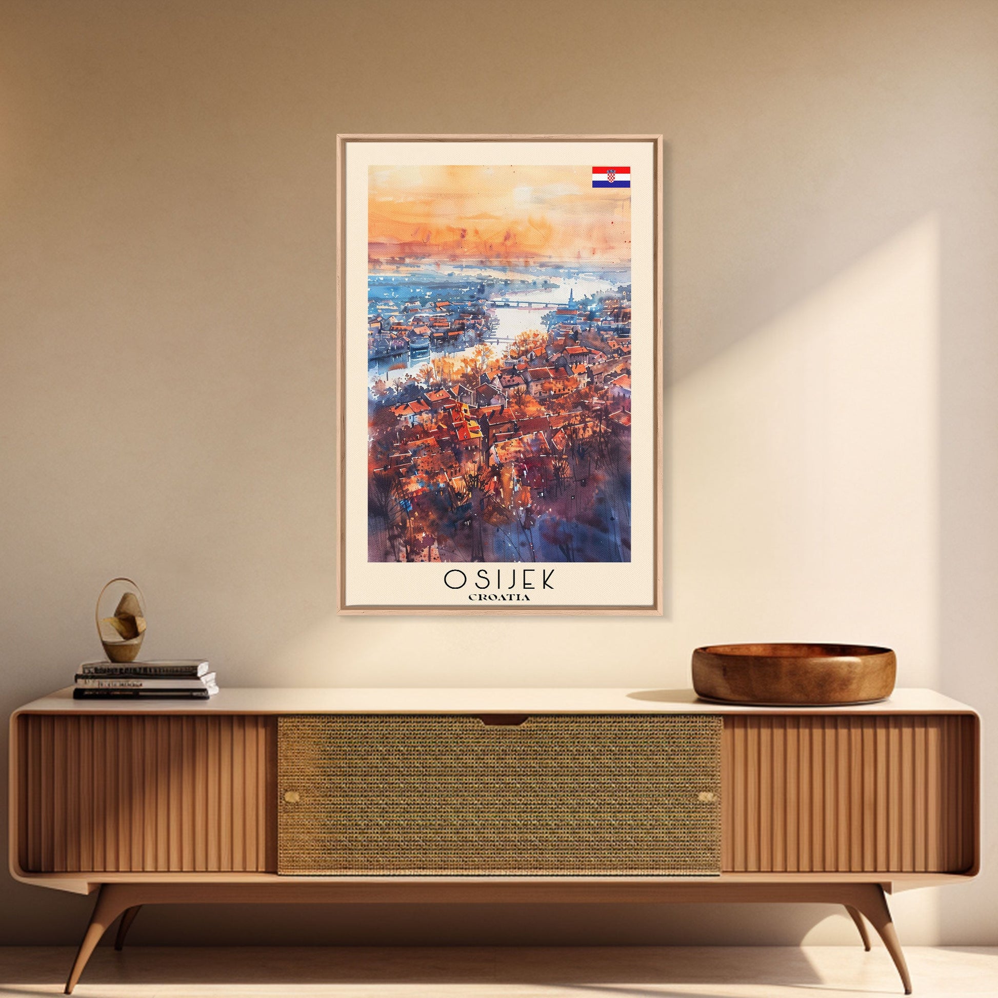 Osijek Croatia Travel Poster Framed Canvas Print, Watercolor Painting, Scenic Wall Art, Home Decor, Croatian Landscape, Rustic Art