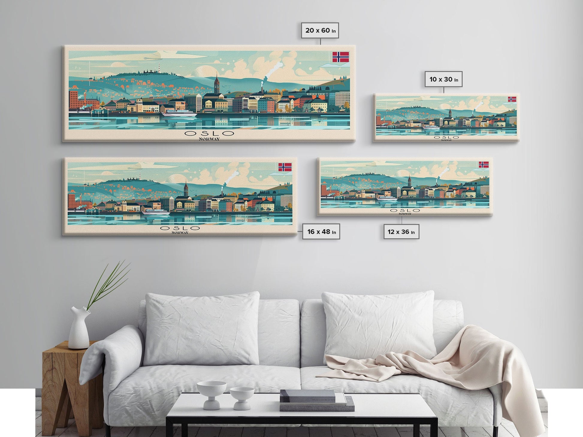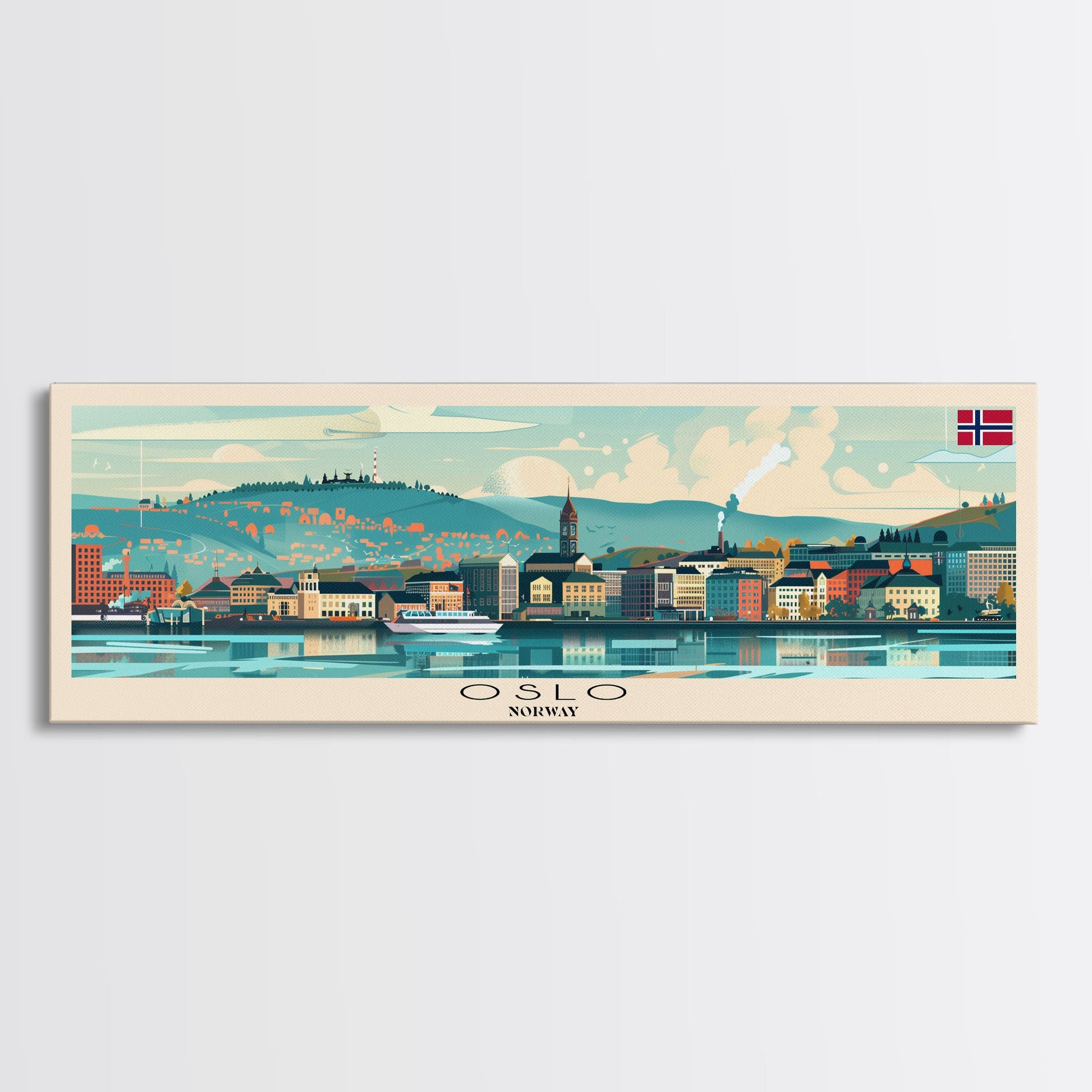 Oslo Norway Travel Art, City Art, Framed Canvas Print or Metal Wall Art, Europe Travel Poster, Panoramic Wall Art, Extra Wide Wall Art
