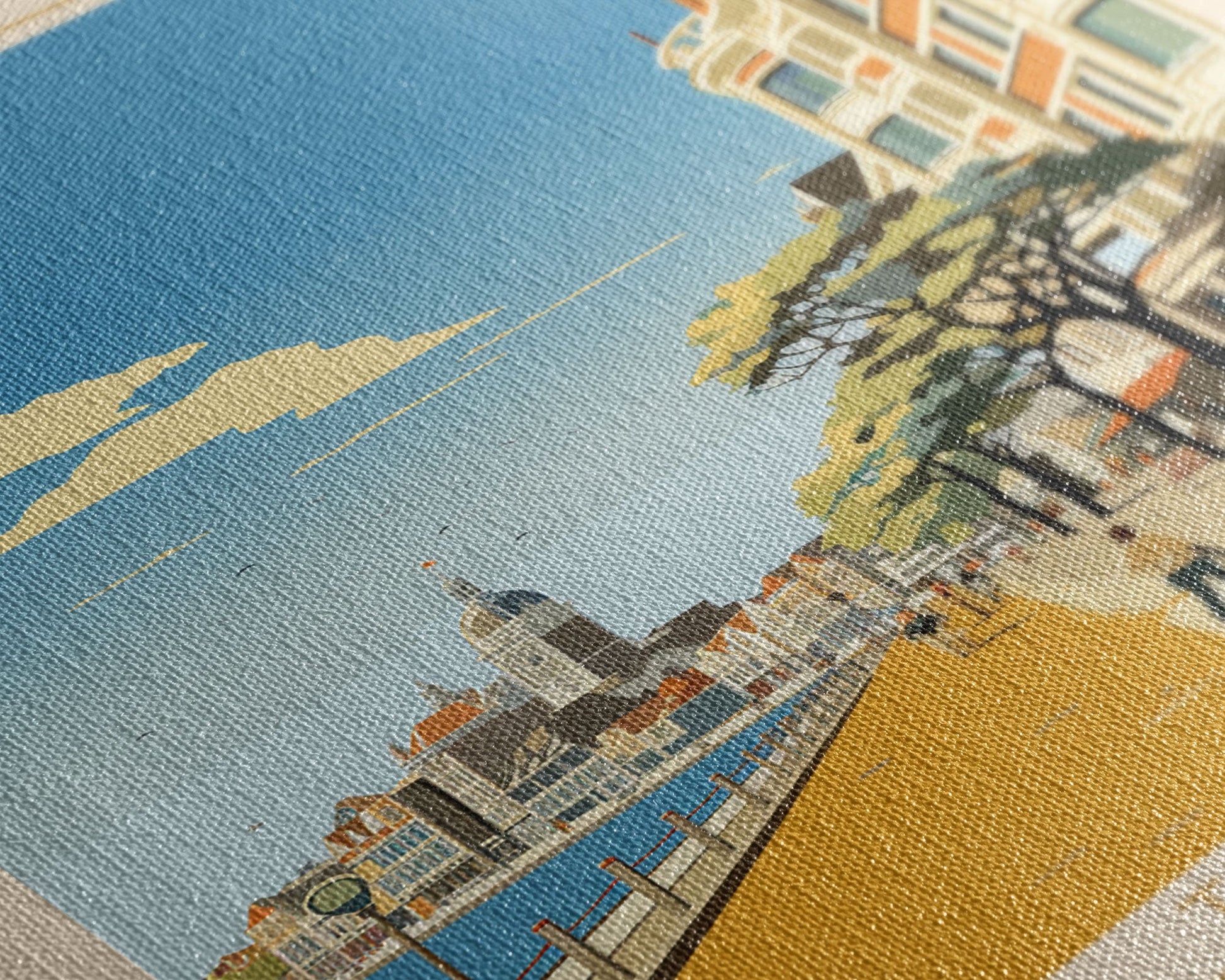 Ostend Belgium Travel Poster Framed Canvas Print, Midcentury Modern Art, Pop Art Wall Decor, Scenic Wall Art, Living Room Decoration, Office Art