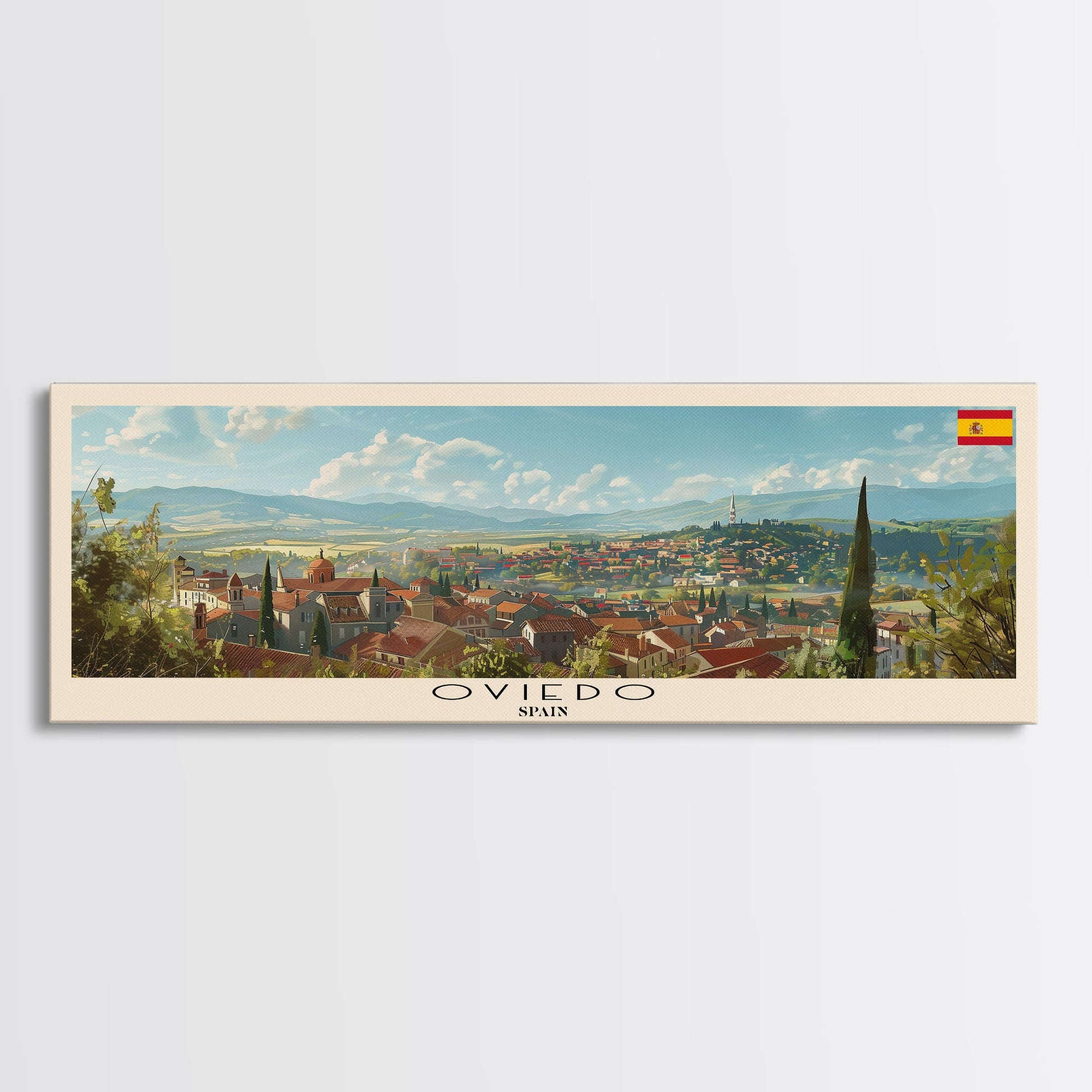 Oviedo Spain Travel Art, City Art, Framed Canvas Print or Metal Wall Art, Europe Travel Poster, Panoramic Wall Art, Extra Wide Wall Art