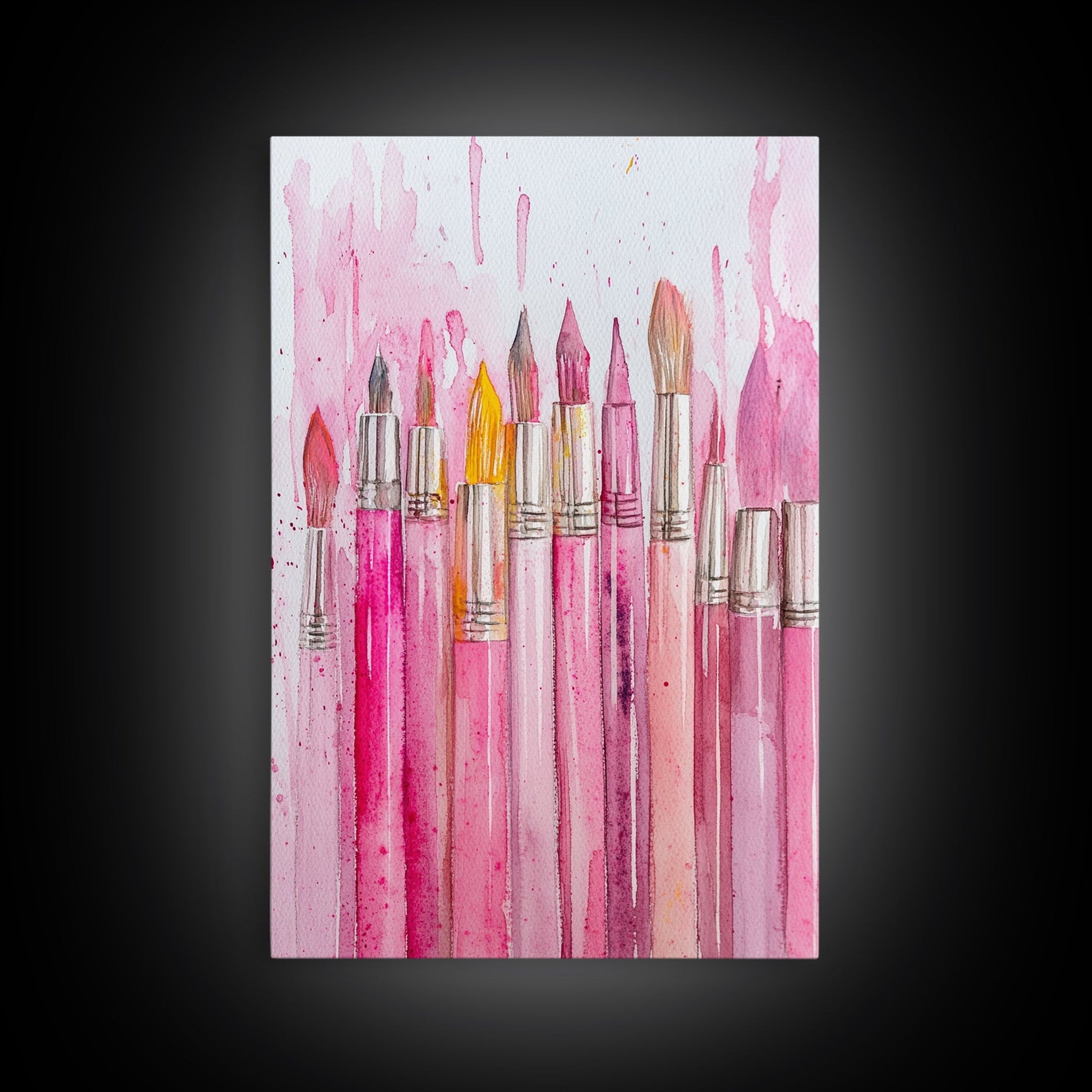 Painterly Brushes Canvas Print Pink Abstract Art Whimsical Art Rustic Decor Minimalist Dorm Wall Art Gift Idea Art Nouveau