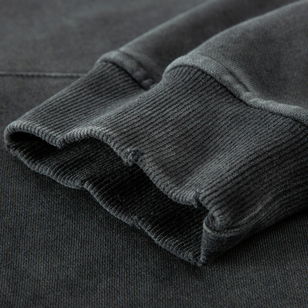 Specially priced for a limited time! This hoodie pays tribute to the destroyed universities in Palestine. Crafted from 100% combed cotton, the hoodie features a wind-resistant snap button collar adorned with a matte metal button, adding a subtle yet striking detail. The faded, distressed fabric offers a laid-back, effortlessly cool streetwear aesthetic. With drop shoulders, ribbed and distressed cuffs and hem, and a loose, oversized fit, it provides both comfort and edge. The pre-shrunk, washed cotton ensures a perfectly worn-in feel, and the 380g/m² fabric weight gives it a substantial, quality finish. The hoodie also includes side-seamed construction, a taped neck and shoulders for durability, and a practical front kangaroo pocket. Care instructions emphasize washing on the reverse side with neutral detergents and avoiding direct sun exposure, soaking, or bleaching to maintain its unique, easy-fade look.