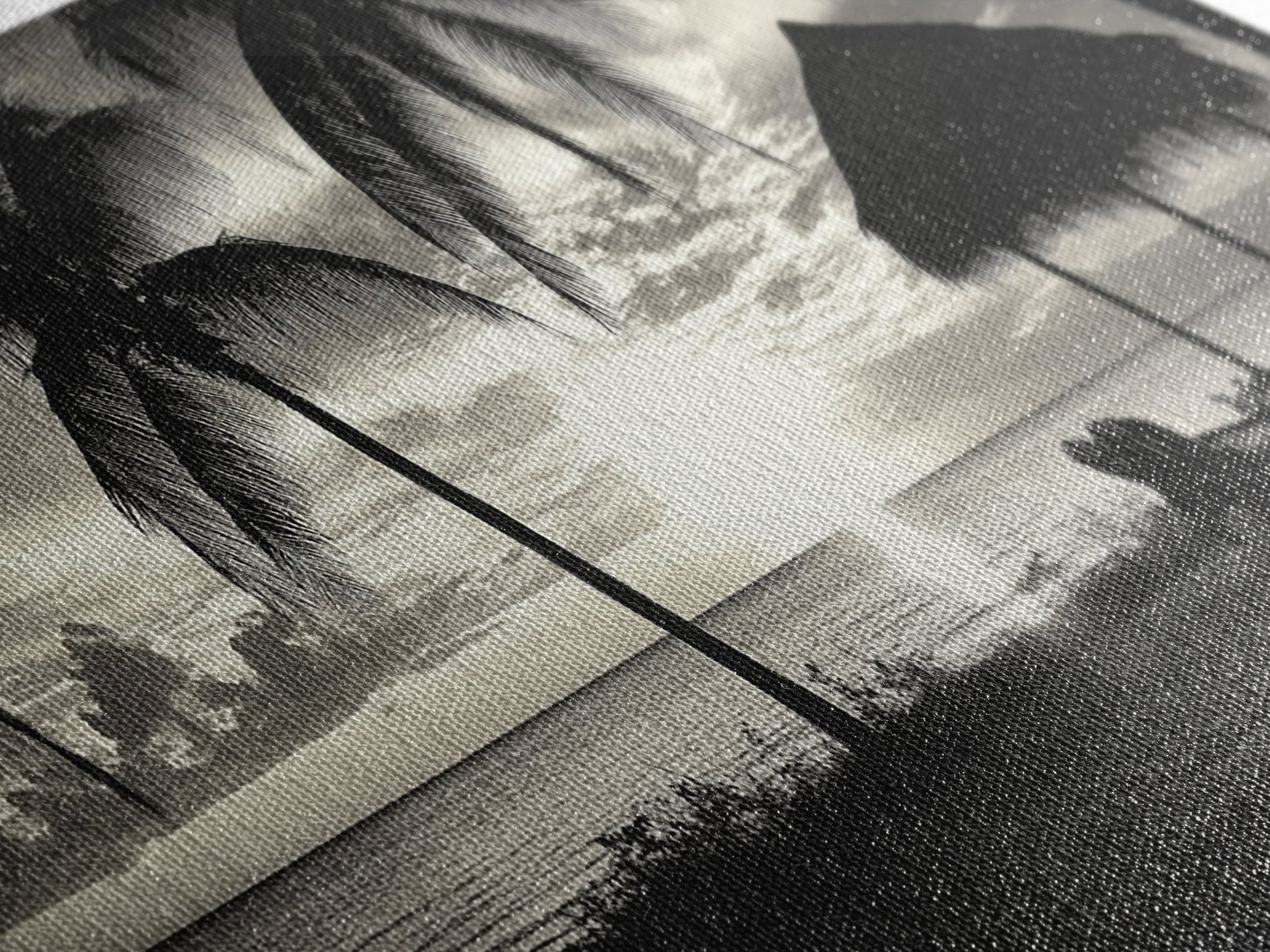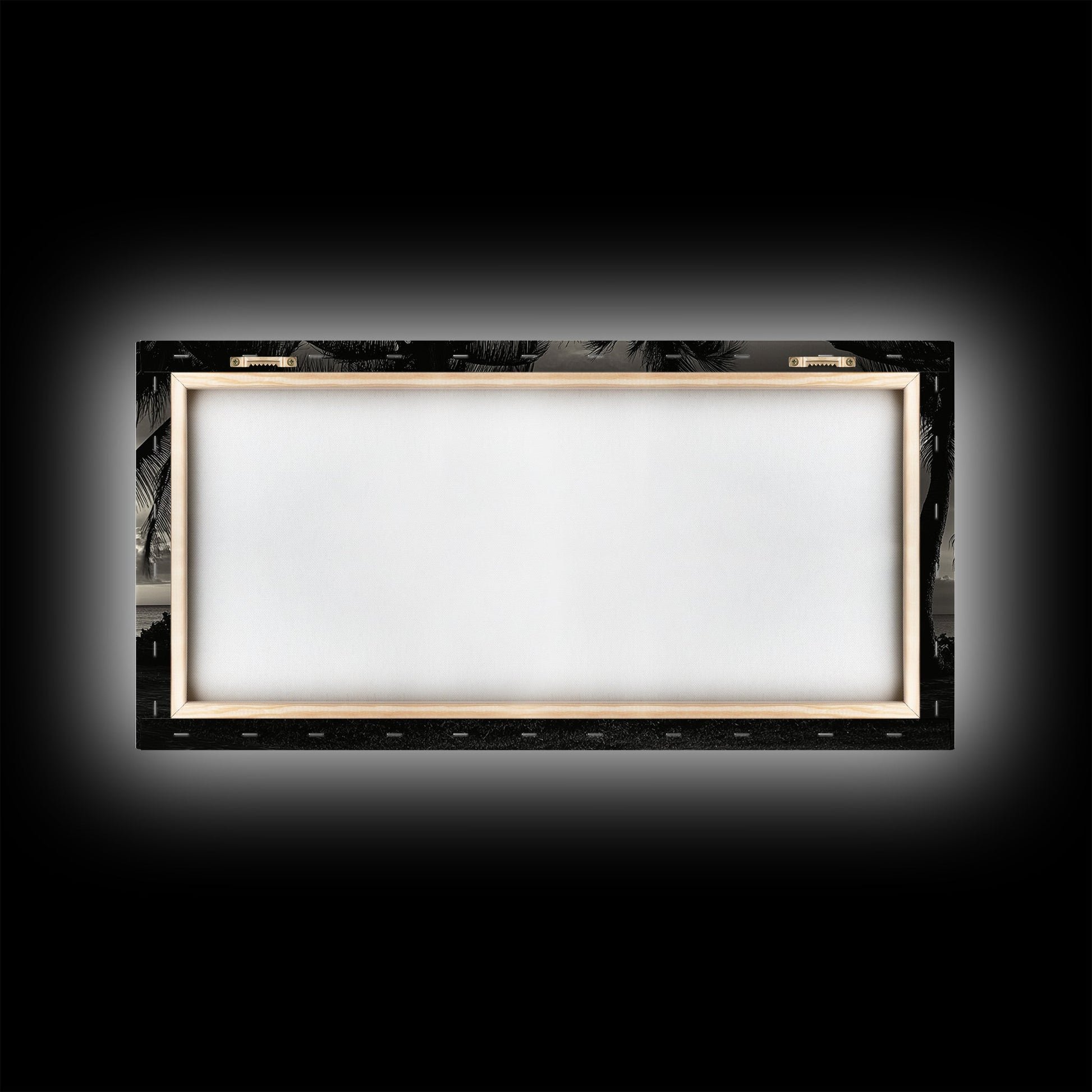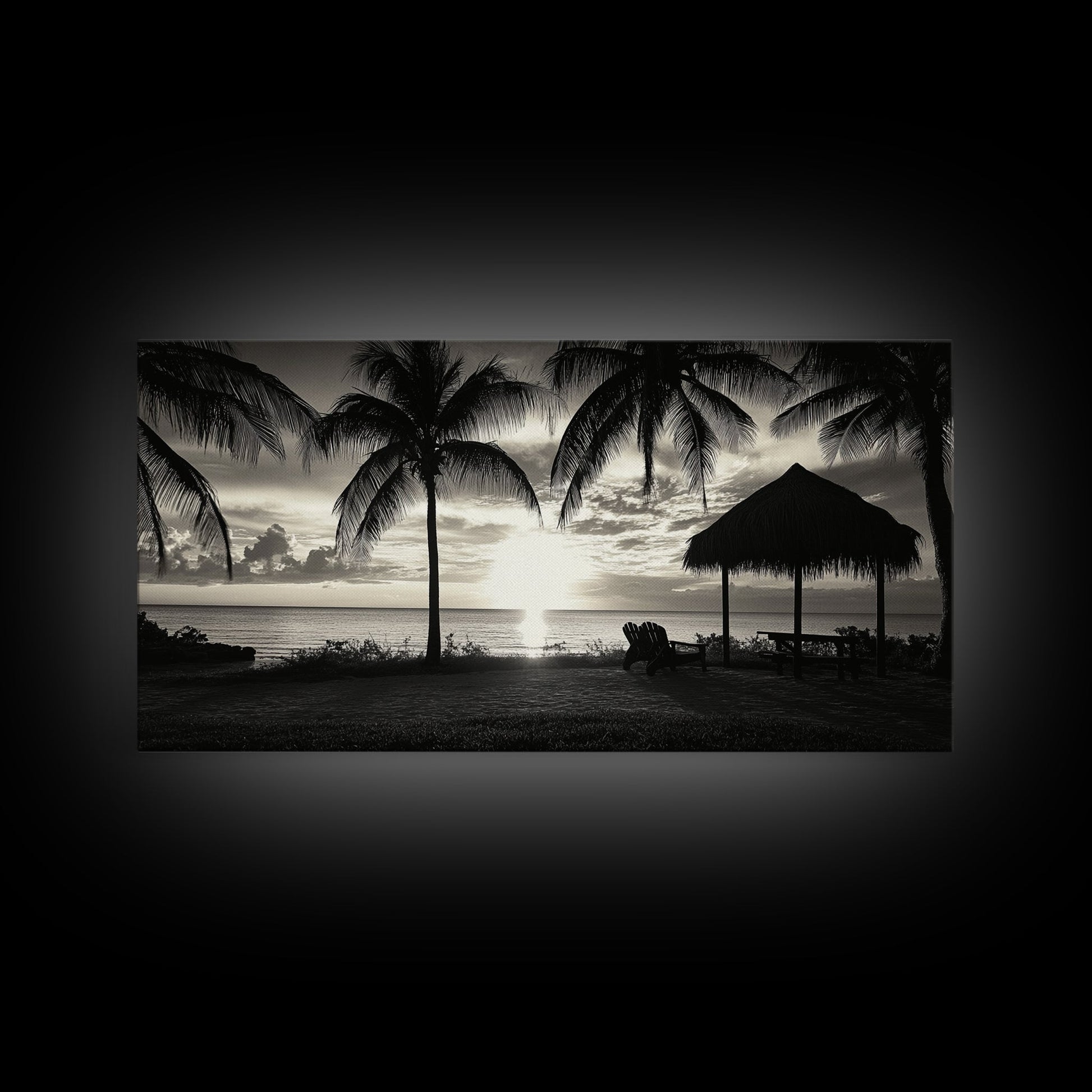 Palm Trees, Beach Sunset, Ocean View, Tiki Hut, Framed Canvas Print, tropical wall art, beach house decor, living room boho art