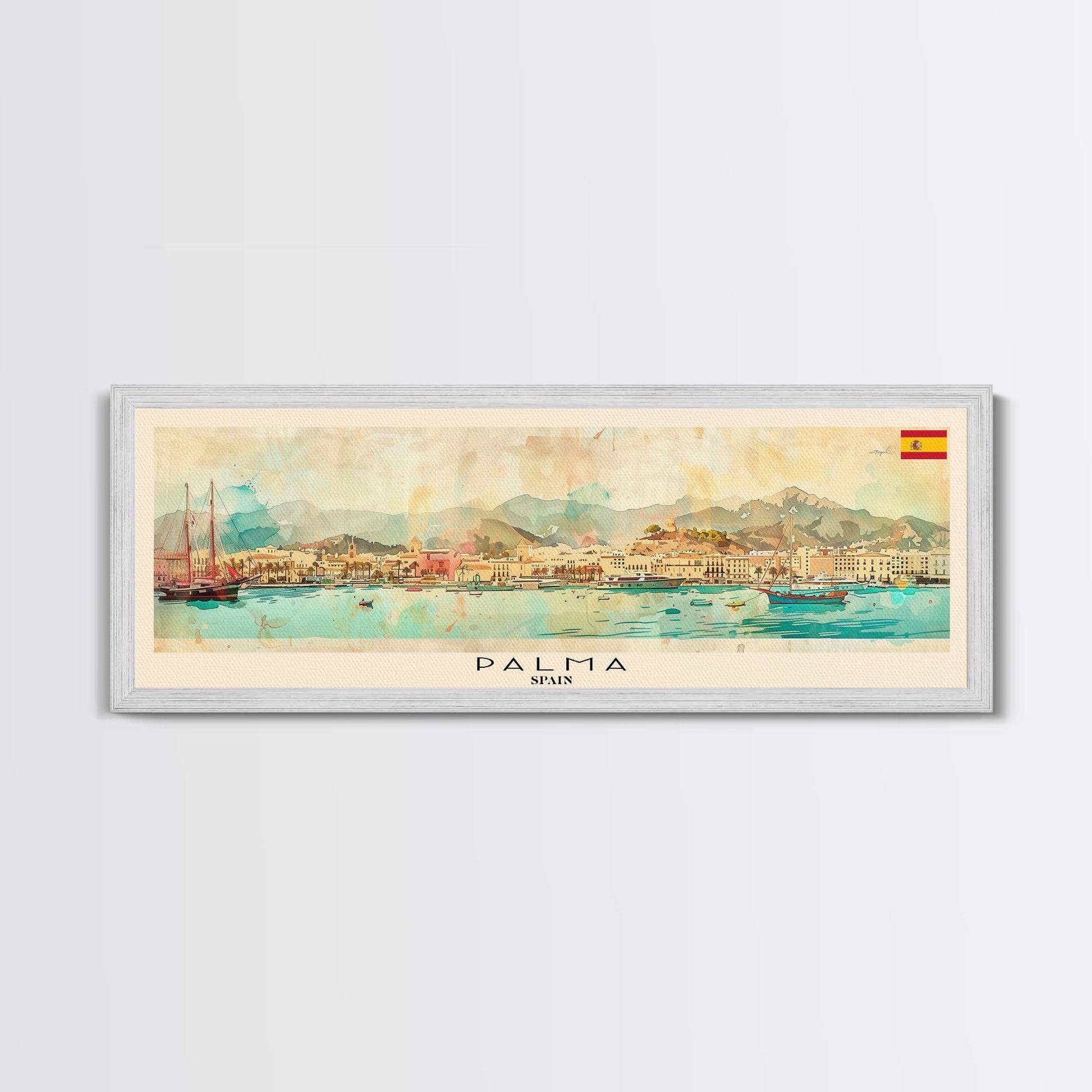 Palma Spain Travel Art, City Art, Framed Canvas Print or Metal Wall Art, Europe Travel Poster, Panoramic Wall Art, Extra Wide Wall Art