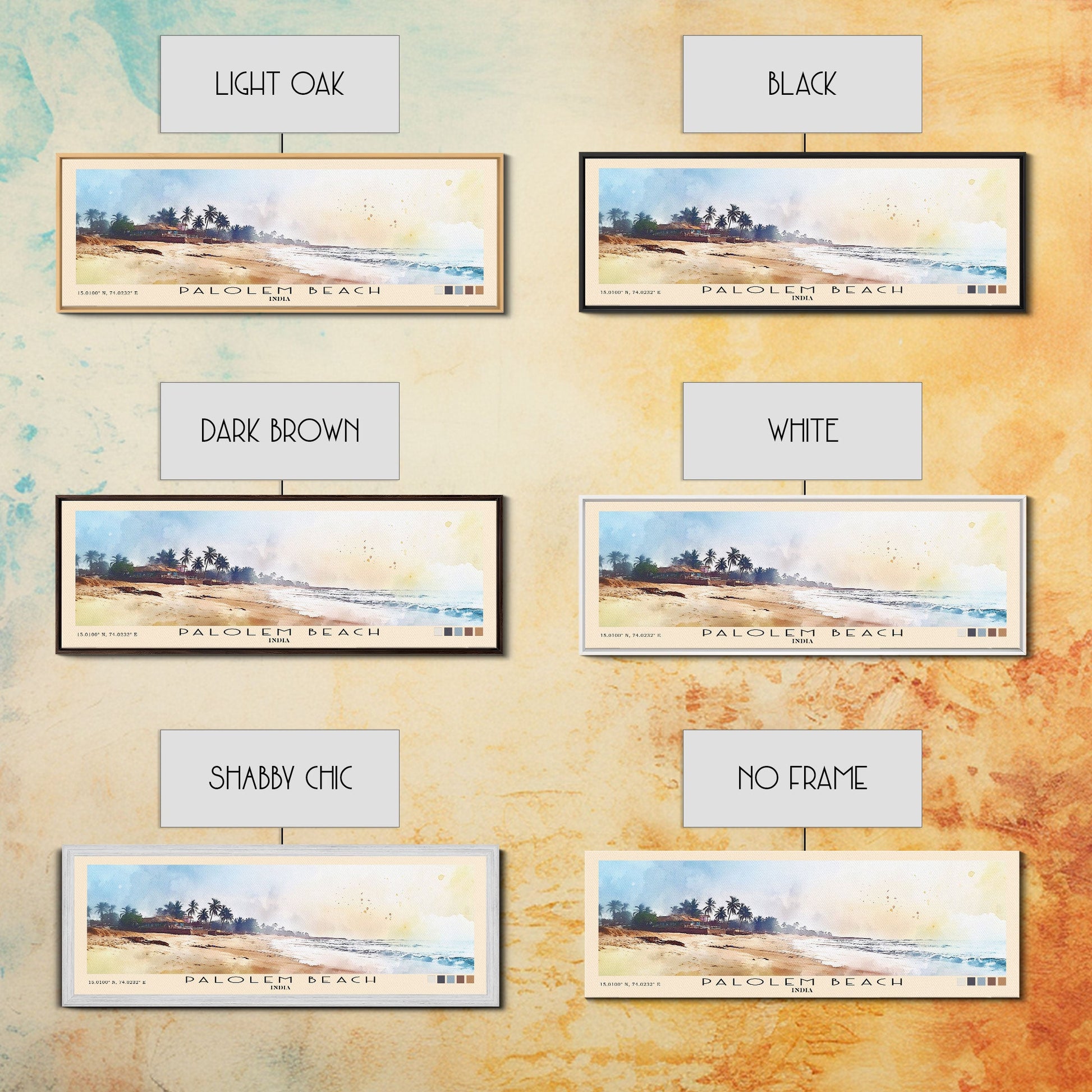 Palolem Beach, India Watercolor Beach Print, Vacation Gift, India Wall Art, Framed Canvas Print, Framed Beach Painting