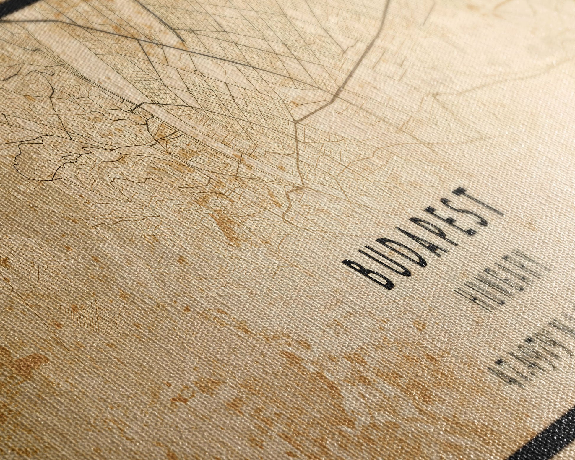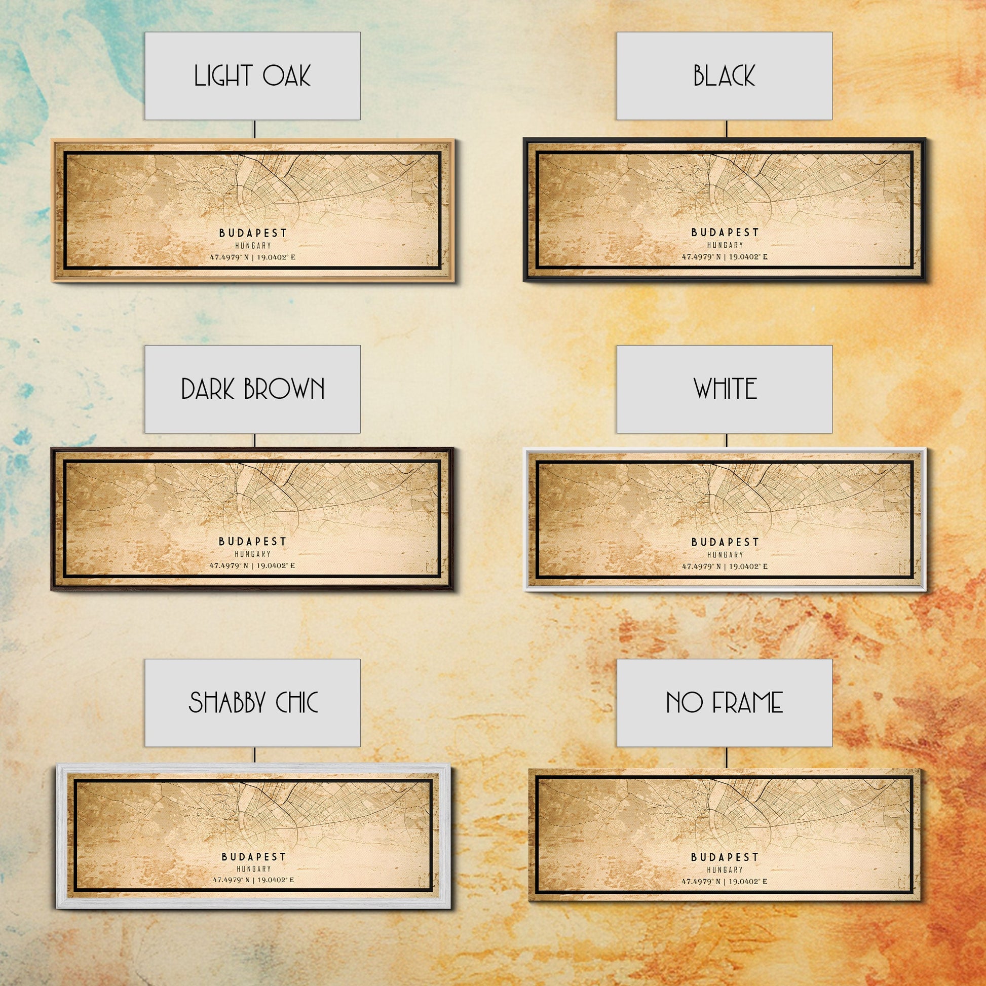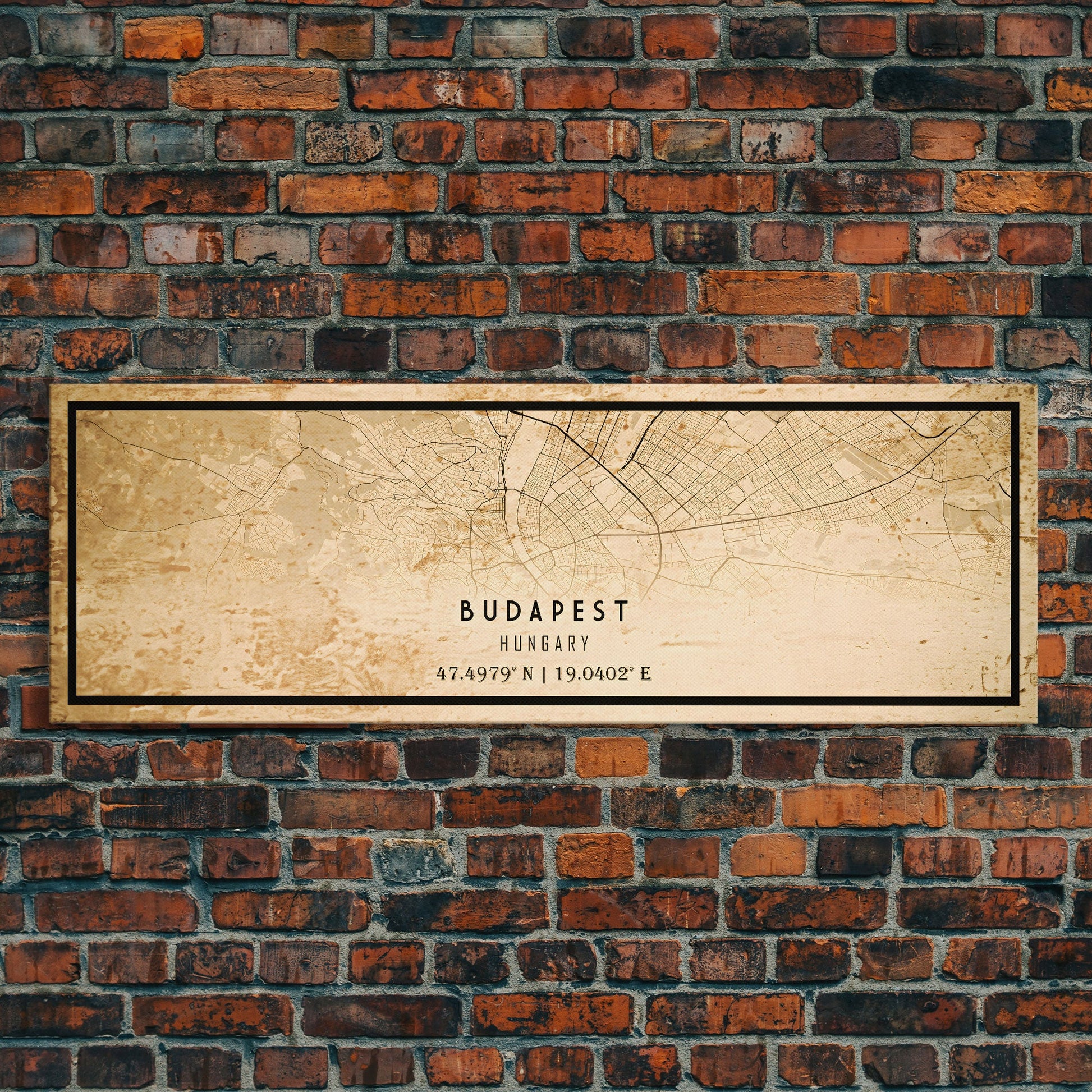 Panoramic Budapest Hungary map print poster or framed canvas, map print poster canvas, Budapest map print poster canvas, Vintage Travel Art