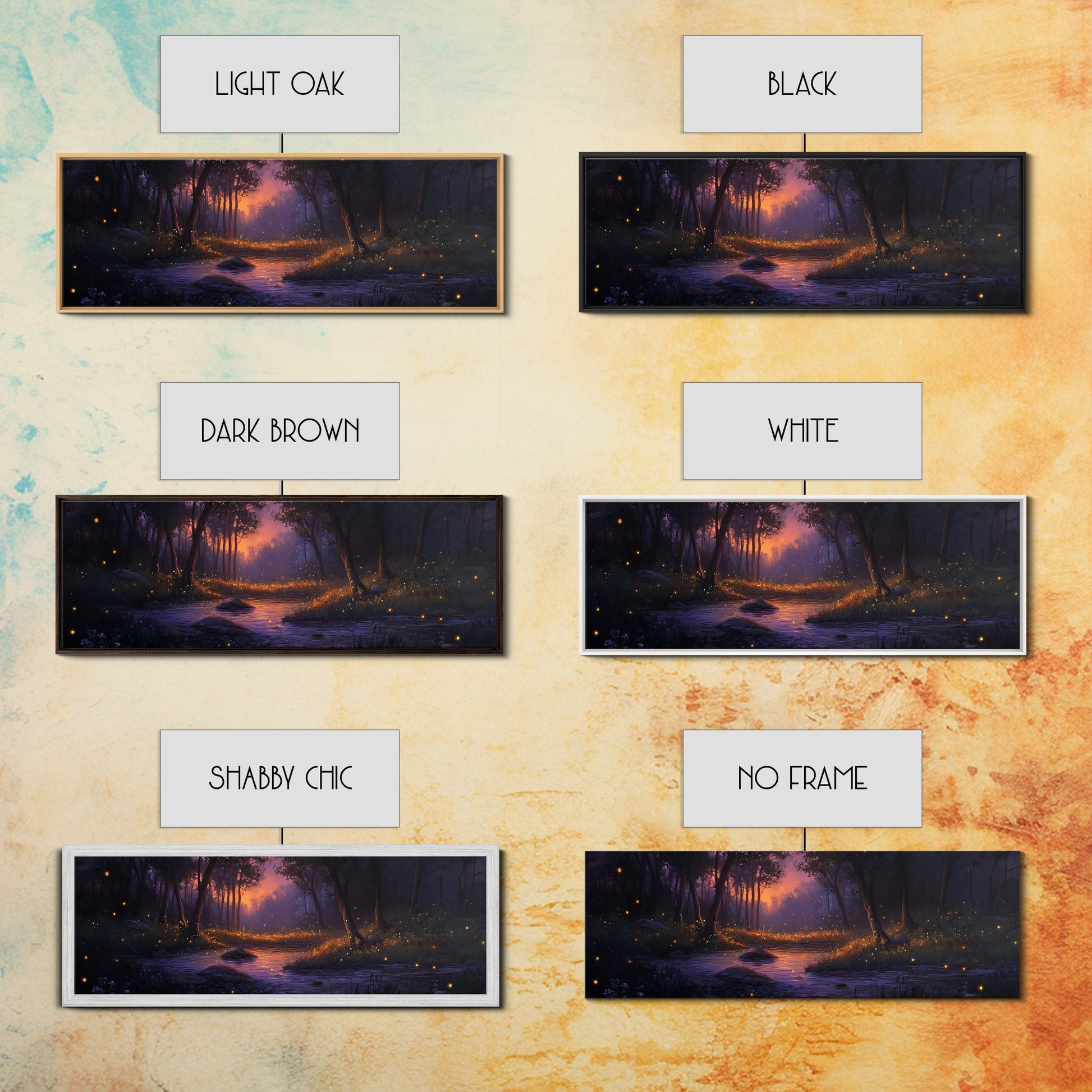 Panoramic Fantasy Forest Canvas Print, Fireflies Light Up The Night Sky in A Fantasy Forest, Fantasy Painting