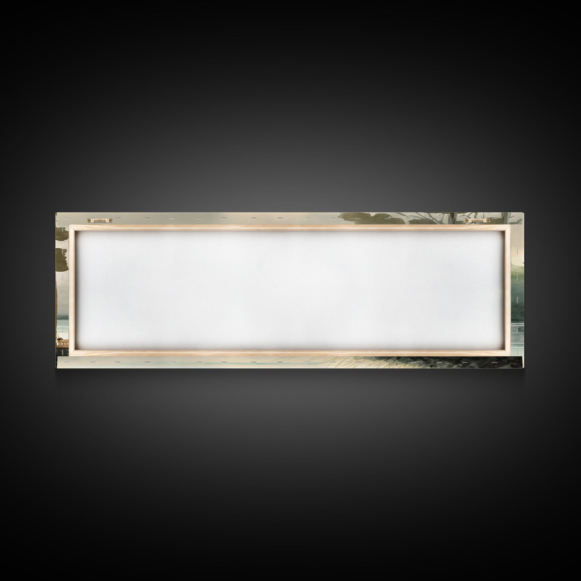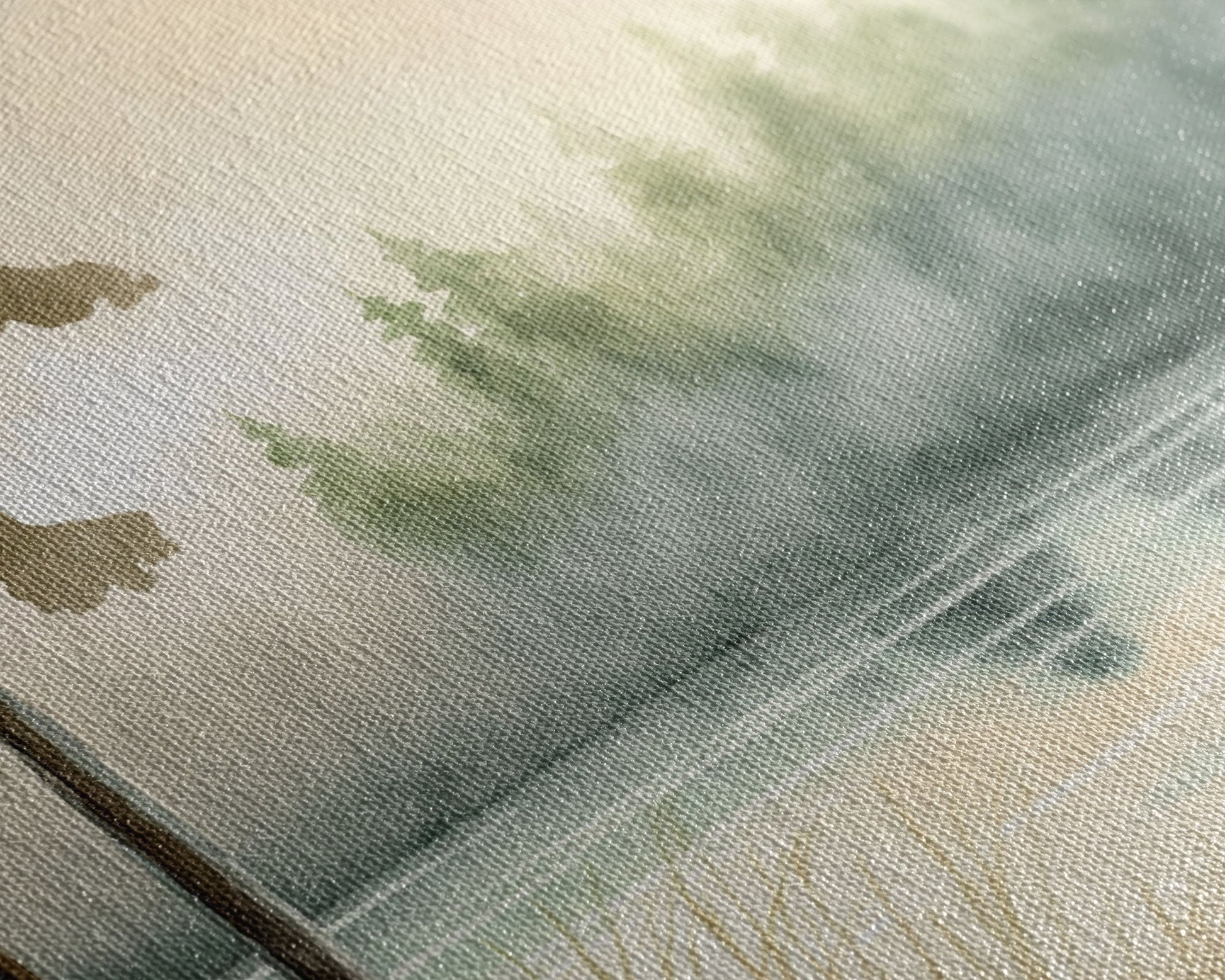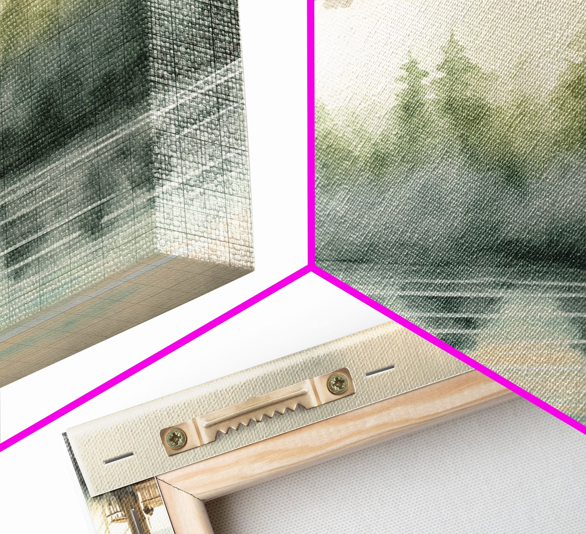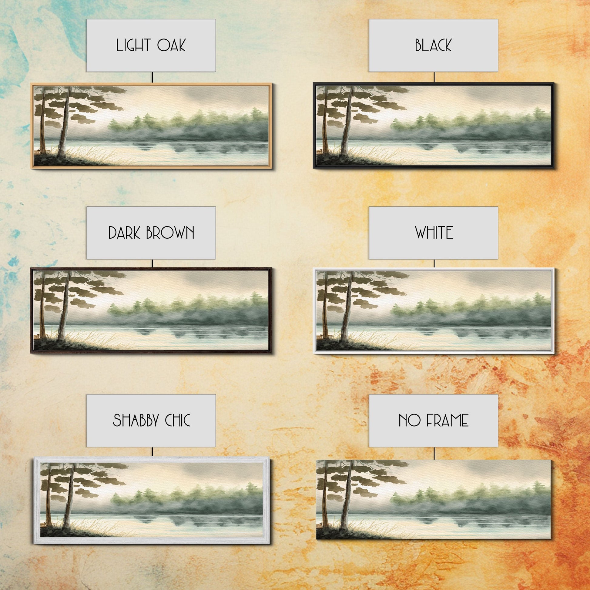 Panoramic Framed Canvas Print of Misty Fog Covered Lake and Pine Tree Forest, Perfect for Living Room, Bedroom