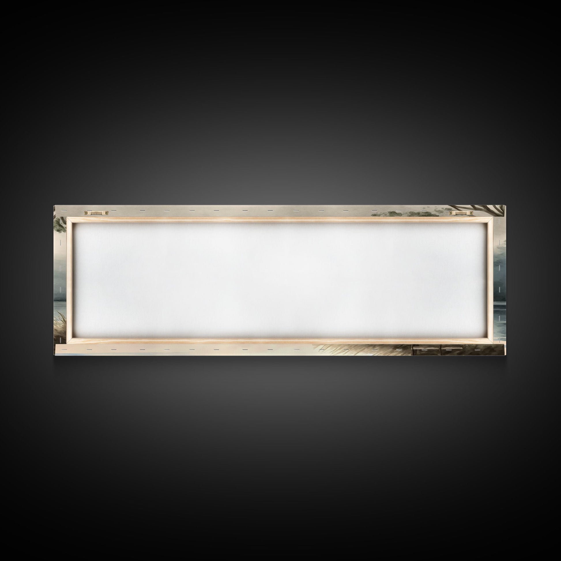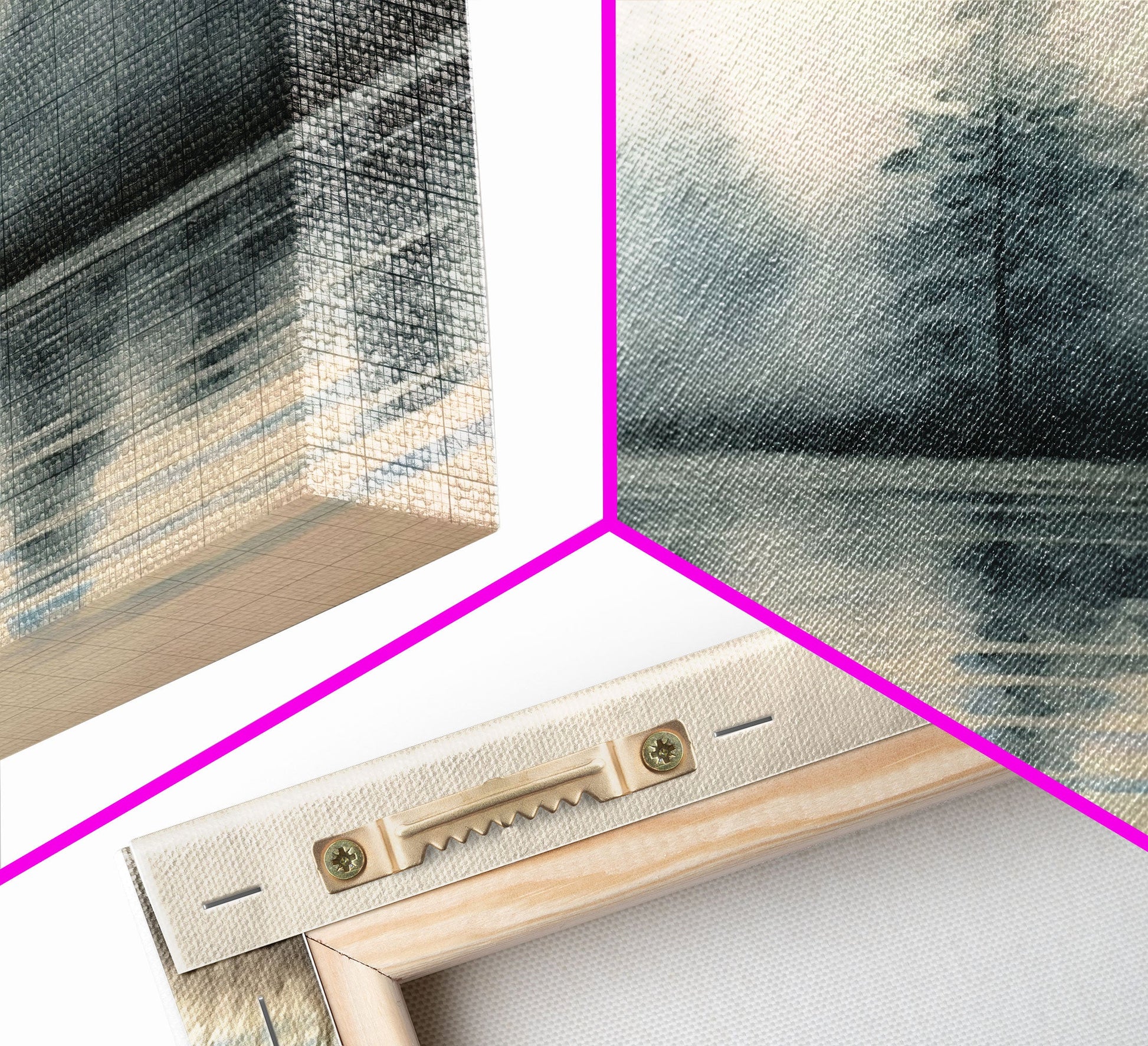 Panoramic Framed Canvas Print of Misty Fog Covered Lake and Pine Tree Forest, Perfect for Living Room, Bedroom, Fog Covered Lake