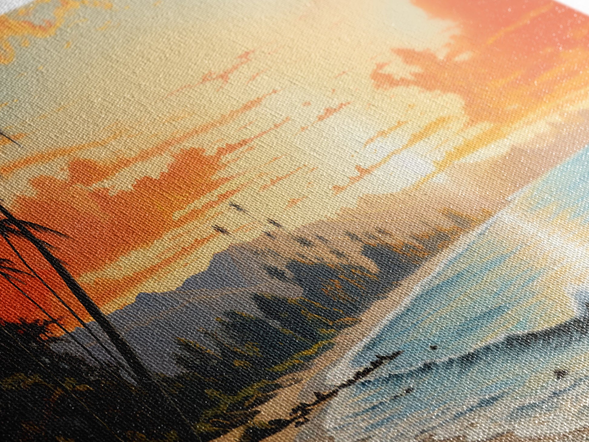 Most of our canvases are made in the USA, with the exception of canvases ordered with the light oak unstained frames, and any large canvases (24x48, 30x60, 16x48 and 20x60) ordered WITH a frame. These are temporarily made in and shipped from Europe, while we try to find a more consistent supplier in the USA.