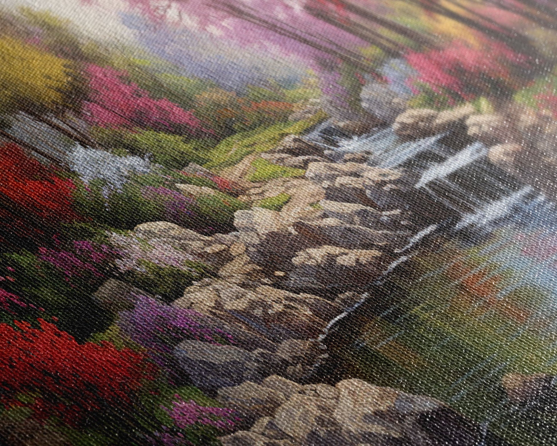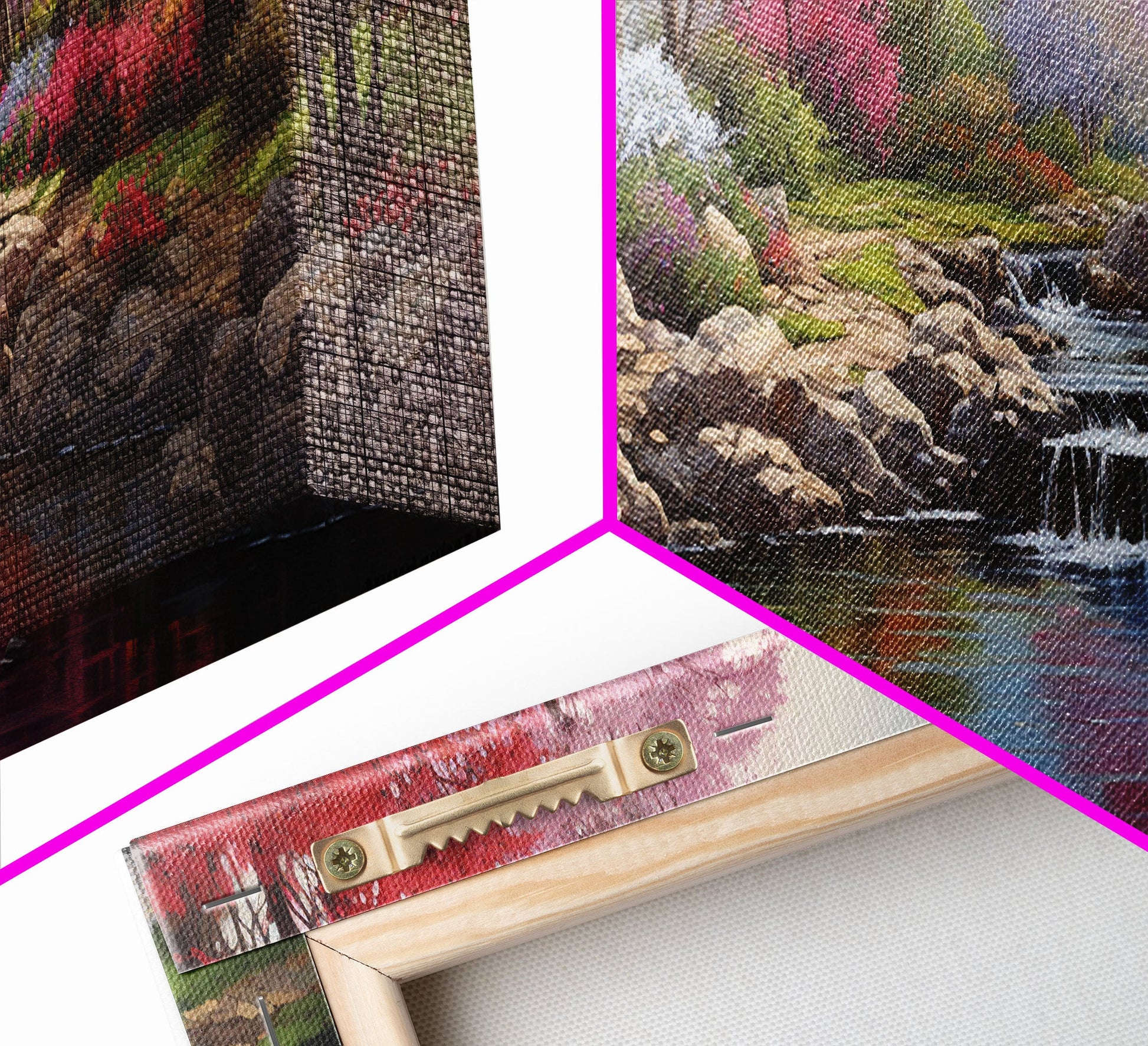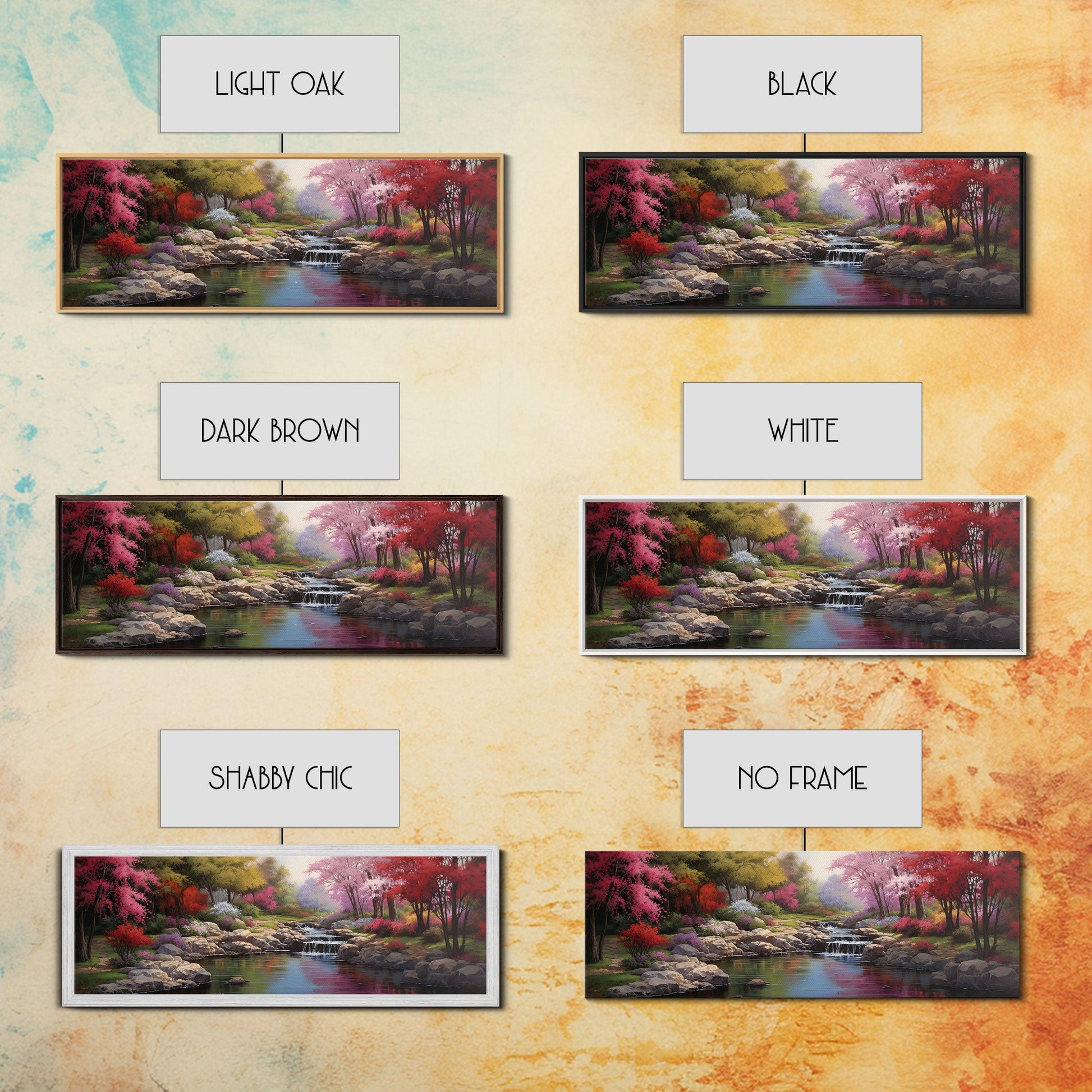 Panoramic Landscape Print Of A Tranquil Spring Stream, Framed Canvas Print, Original Landscape Oil Painting, Guest Room Decor