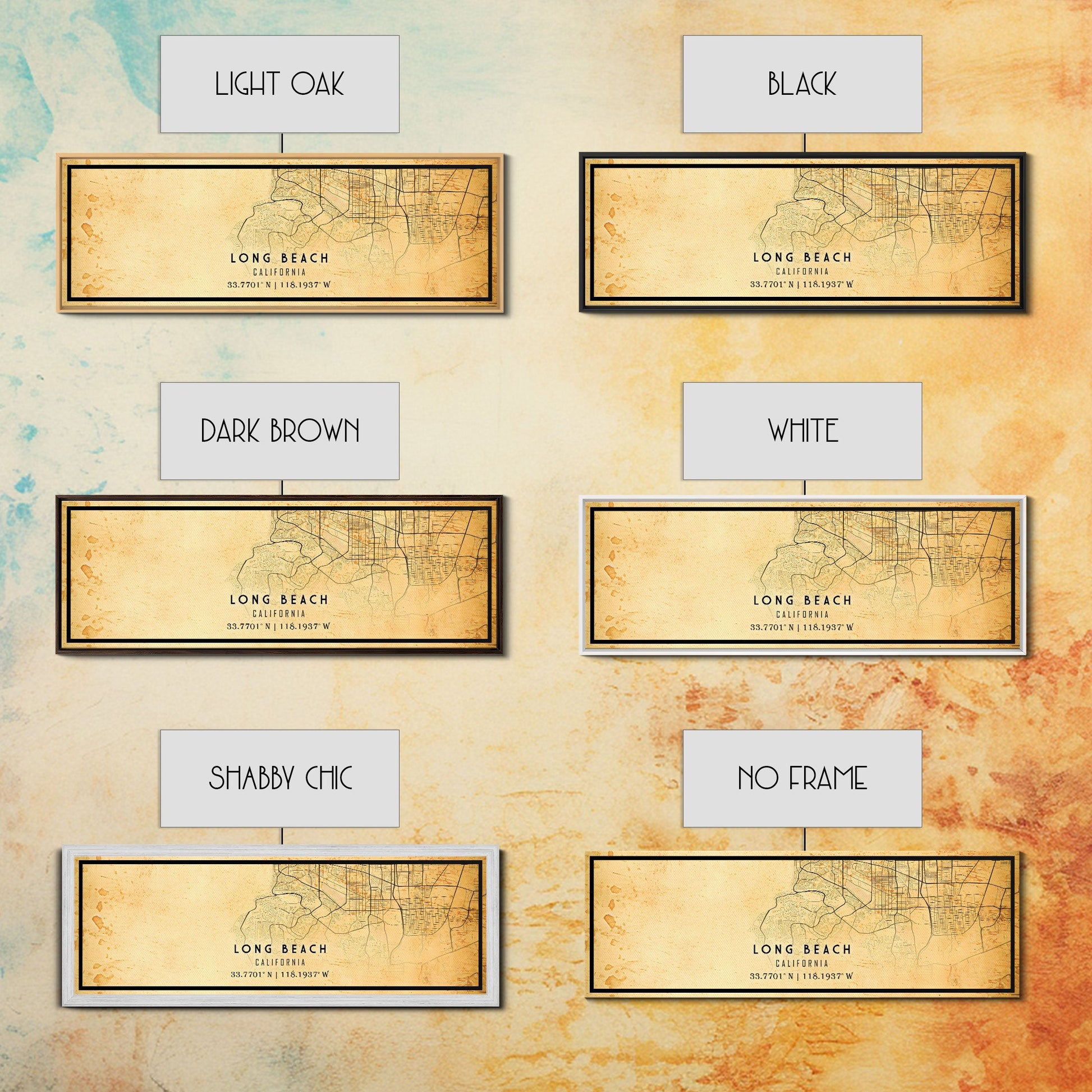 Panoramic Long Beach map print poster or framed canvas | California map print poster canvas | city map print poster canvas, distressed map