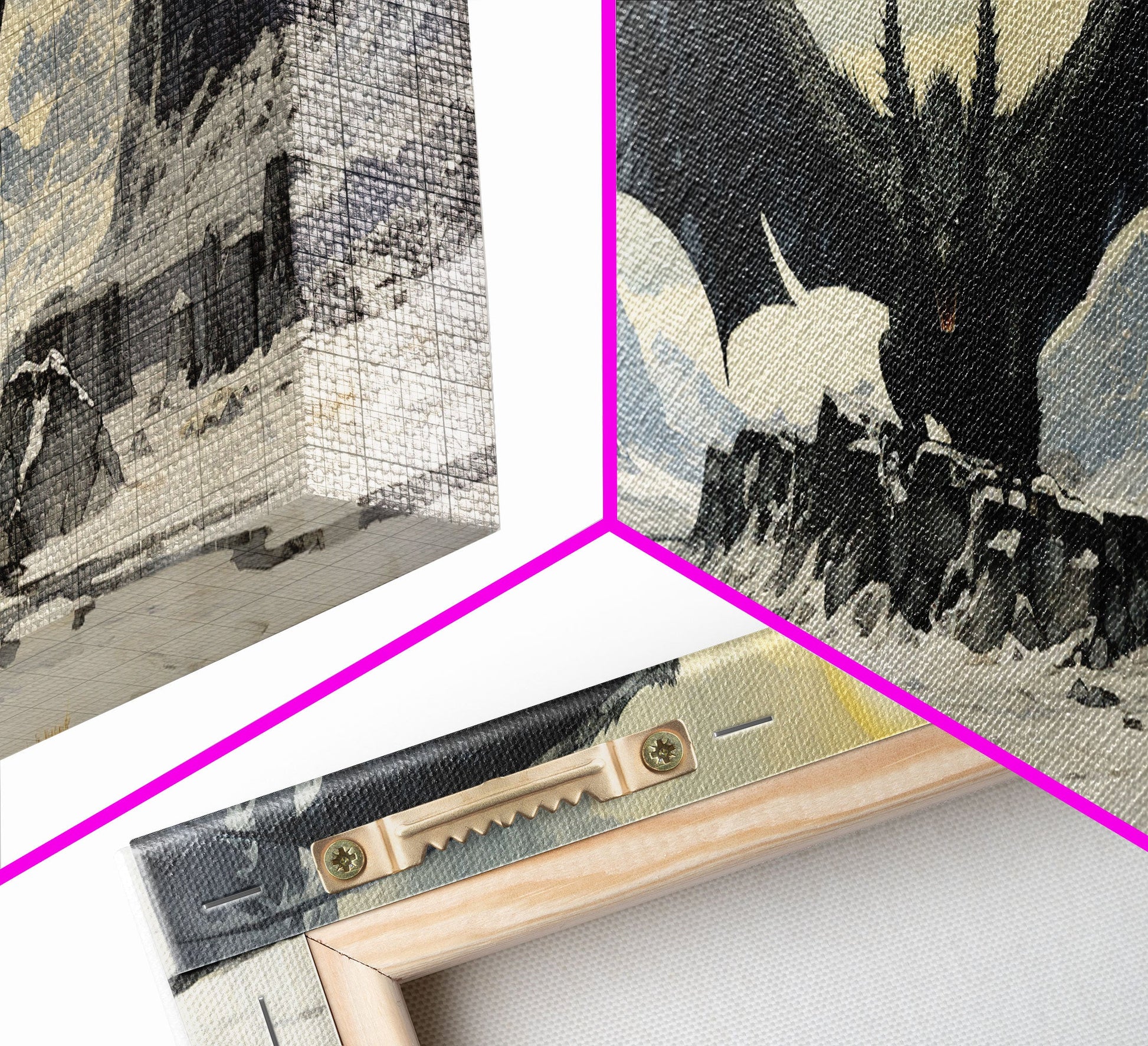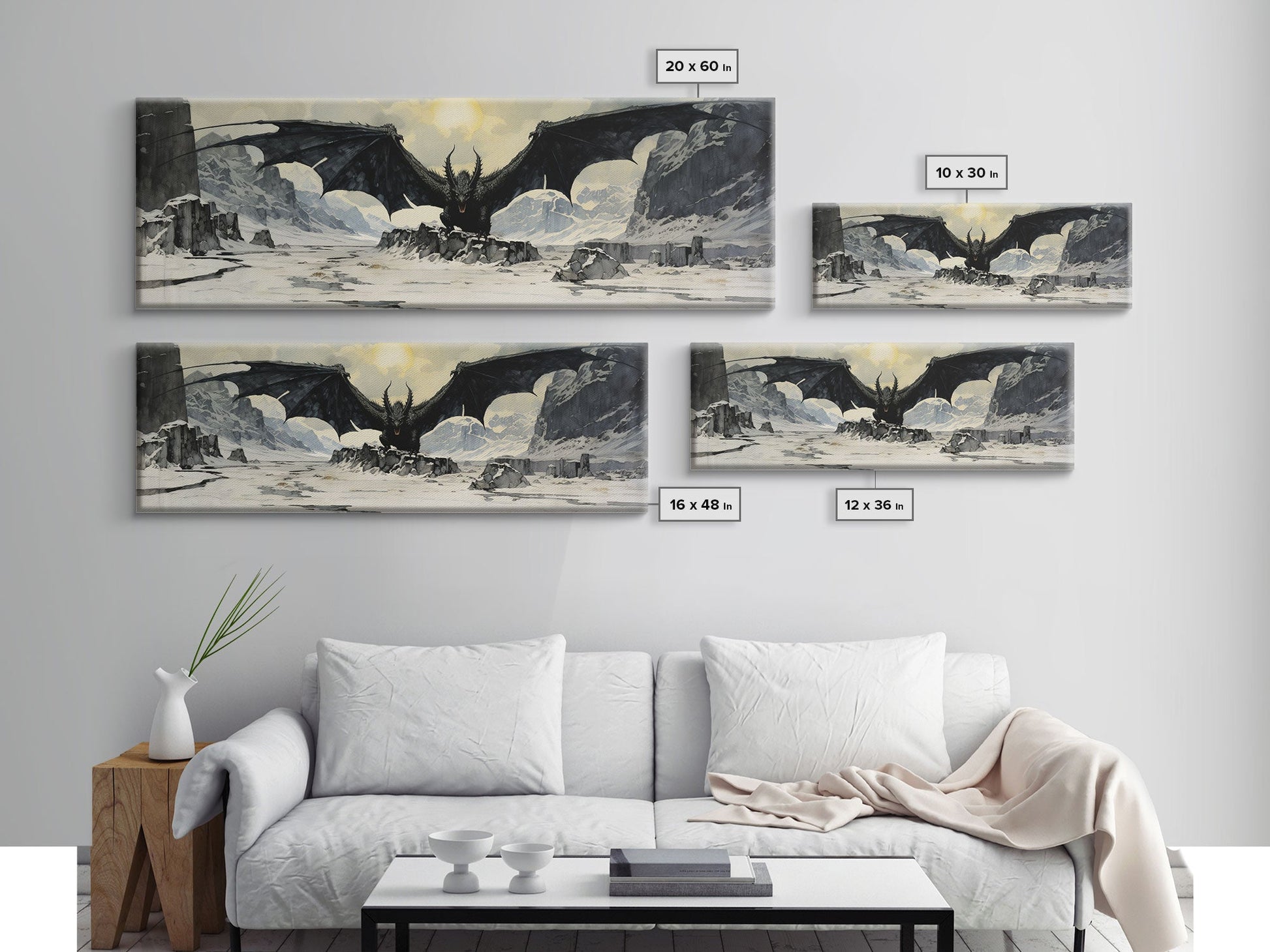 Panoramic Of a Dragon, Framed Canvas Print, Fantasy Decor, Fantasy Dragon Painting