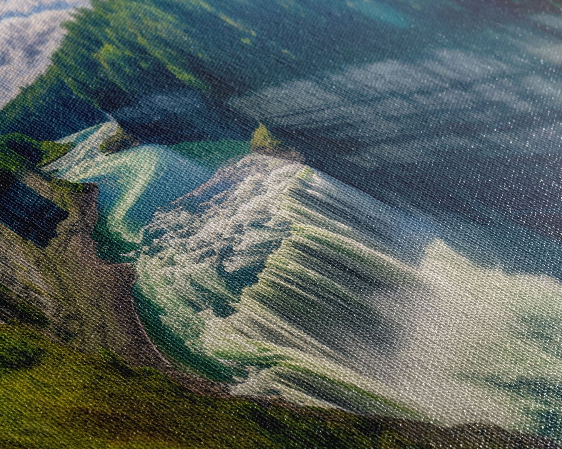 Most of our canvases are made in the USA, with the exception of canvases ordered with the light oak unstained frames, and any large canvases (24x48, 30x60, 16x48 and 20x60) ordered WITH a frame. These are temporarily made in and shipped from Europe, while we try to find a more consistent supplier in the USA.