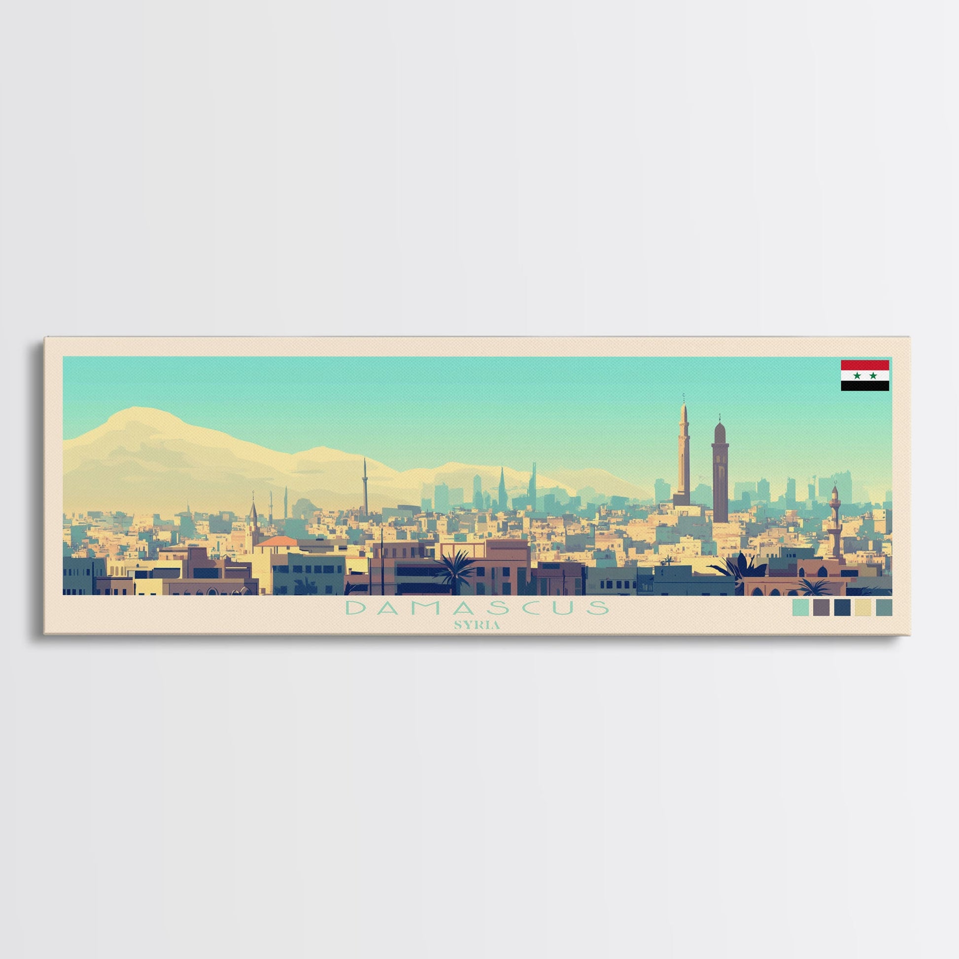 Panoramic Travel Poster Damascus, Syria Canvas Print, Damascus, Syria Painting, Syria Art, Damascus Travel Art, Guest Room Painting