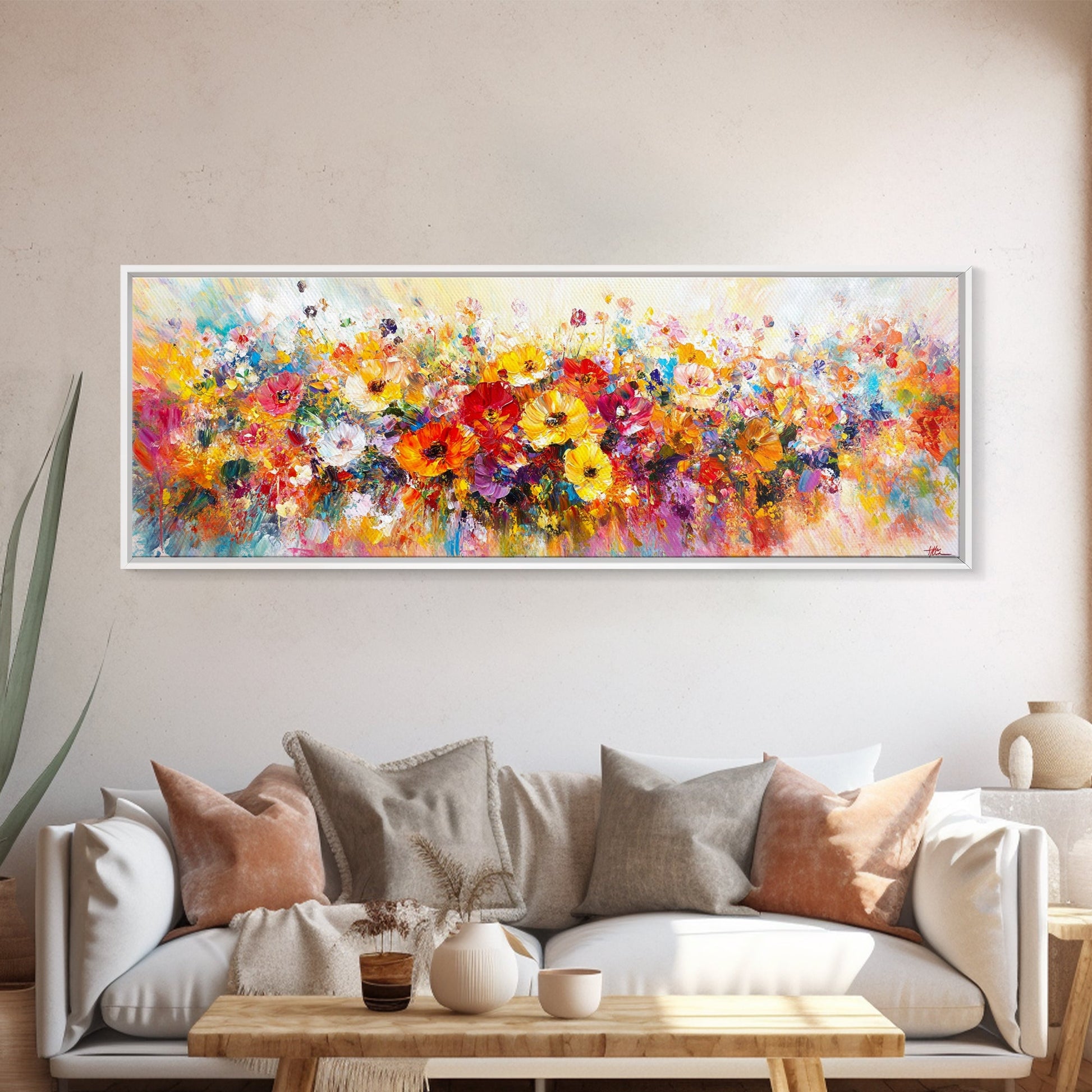 Panoramic Wildflowers Canvas Print, Wood Framed Wall Art, Beautiful Ultra-Wide Wall Art, Original Flower Painting, Floral Art, Botantical Wall Art